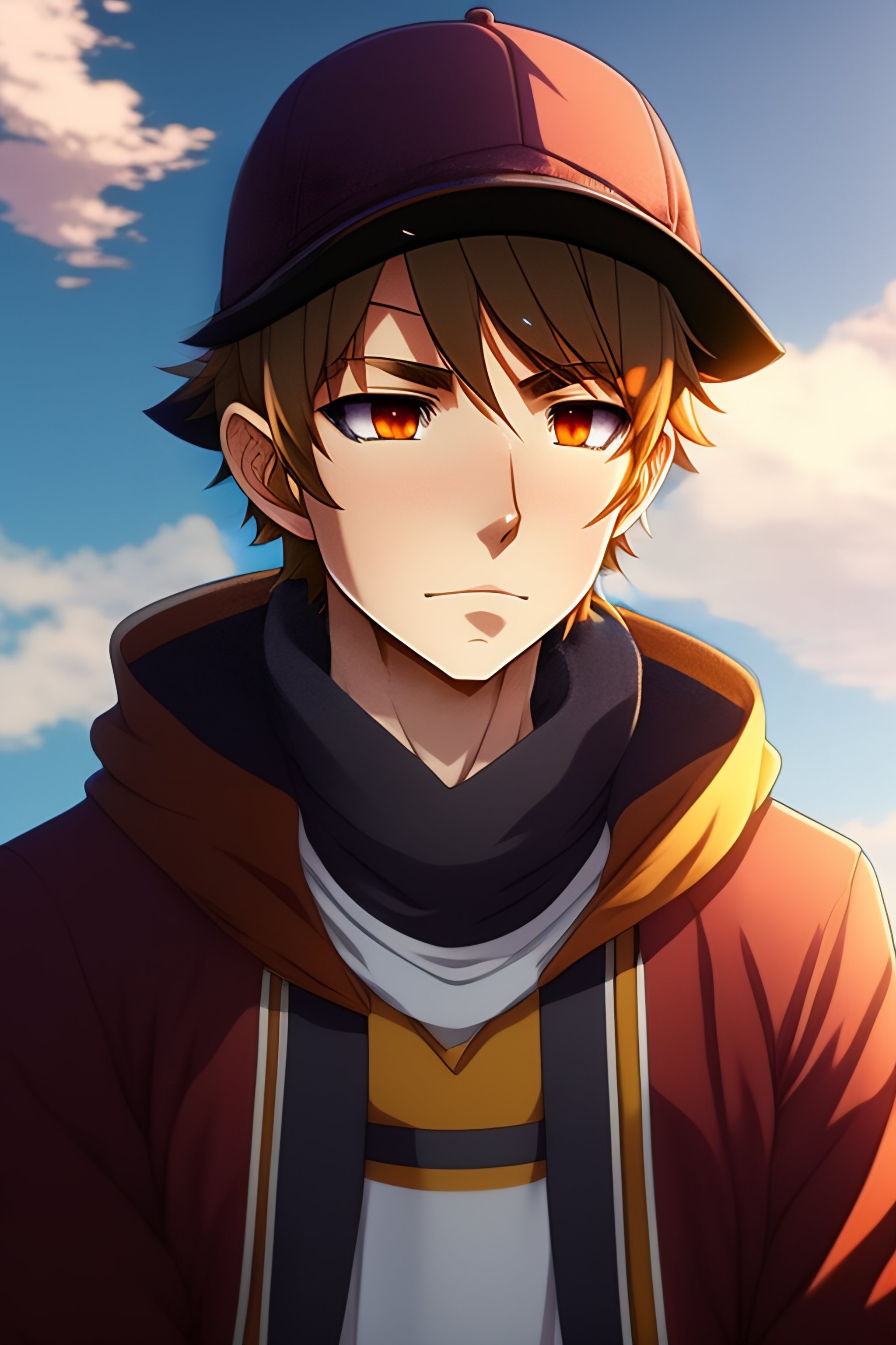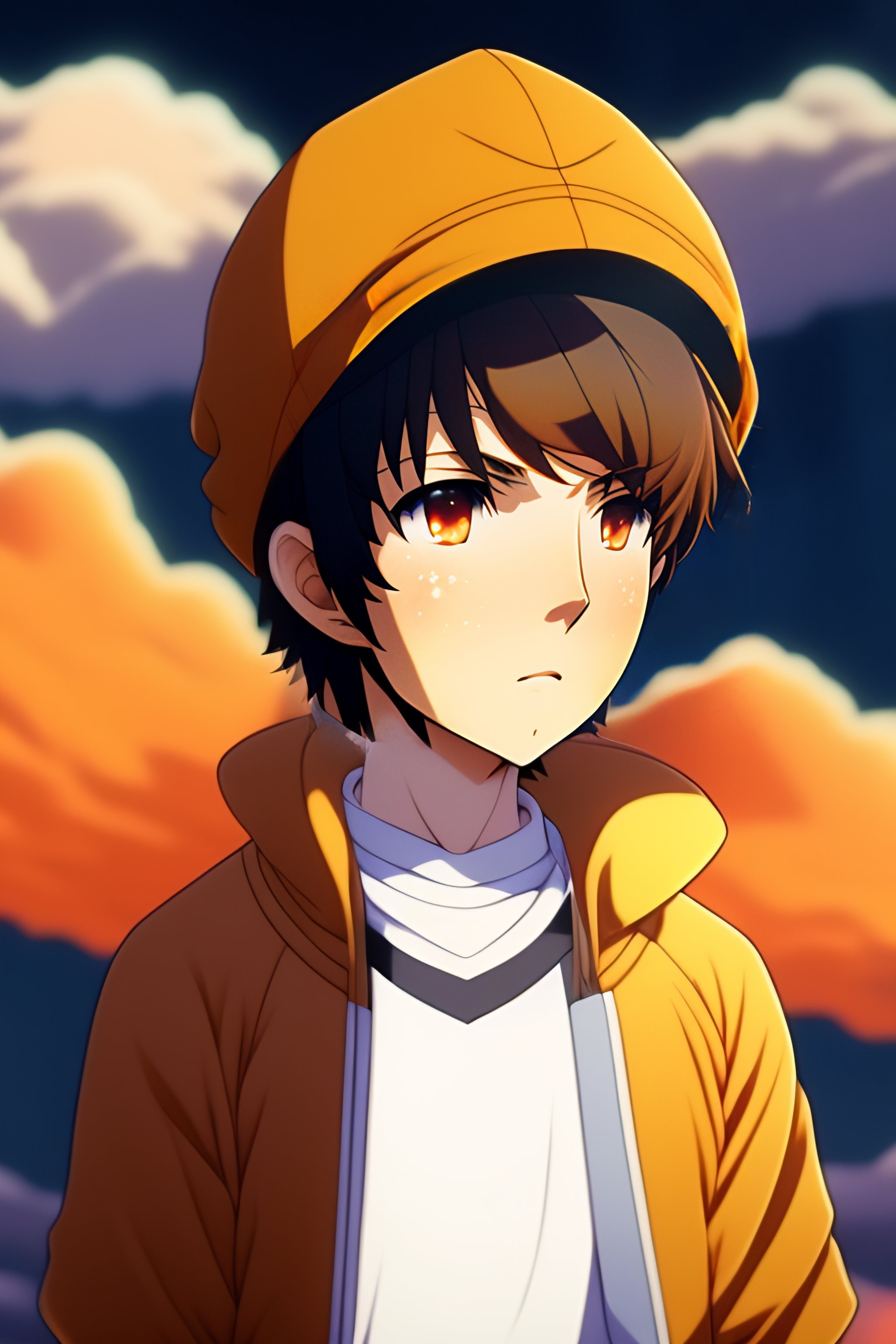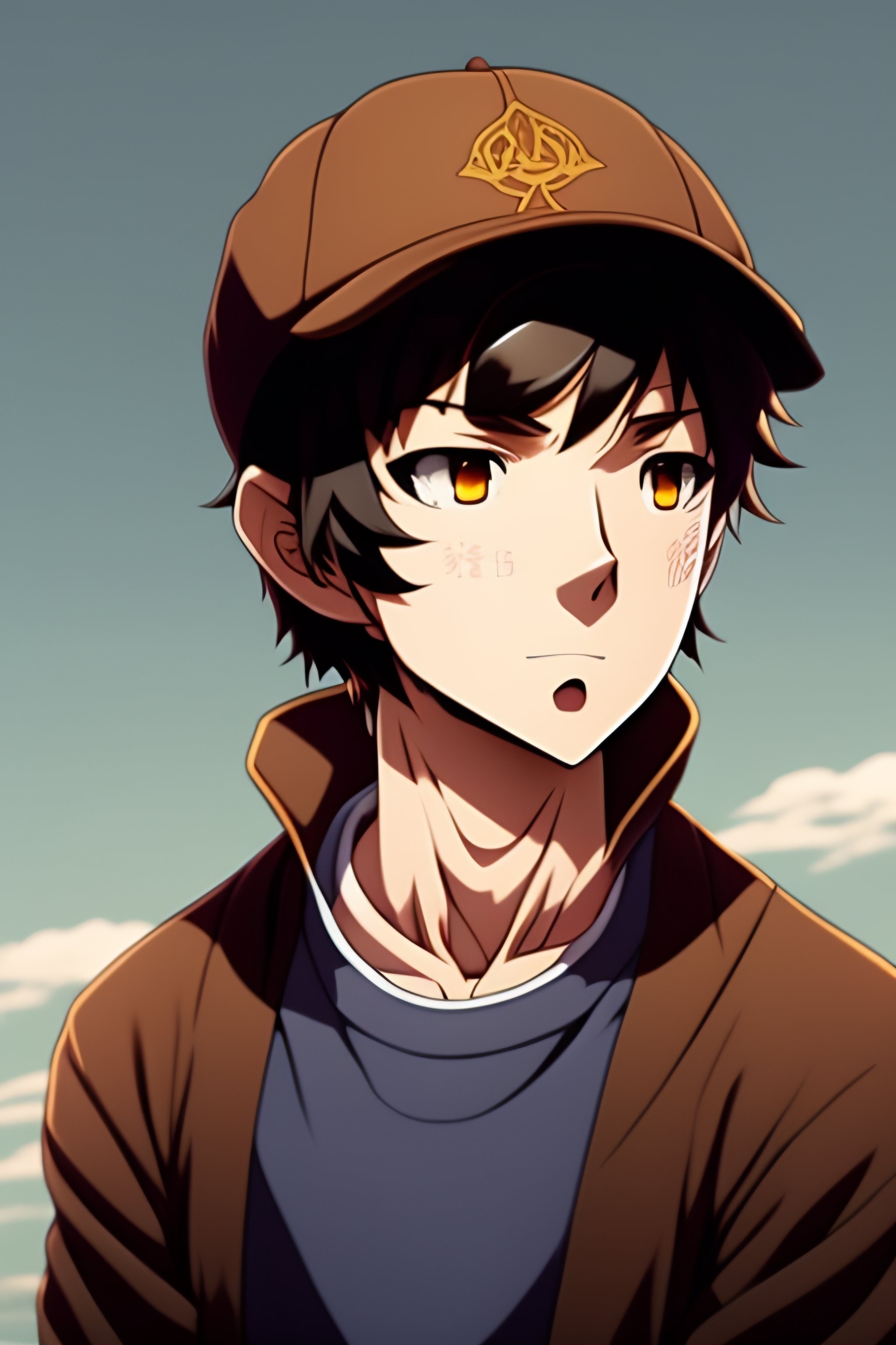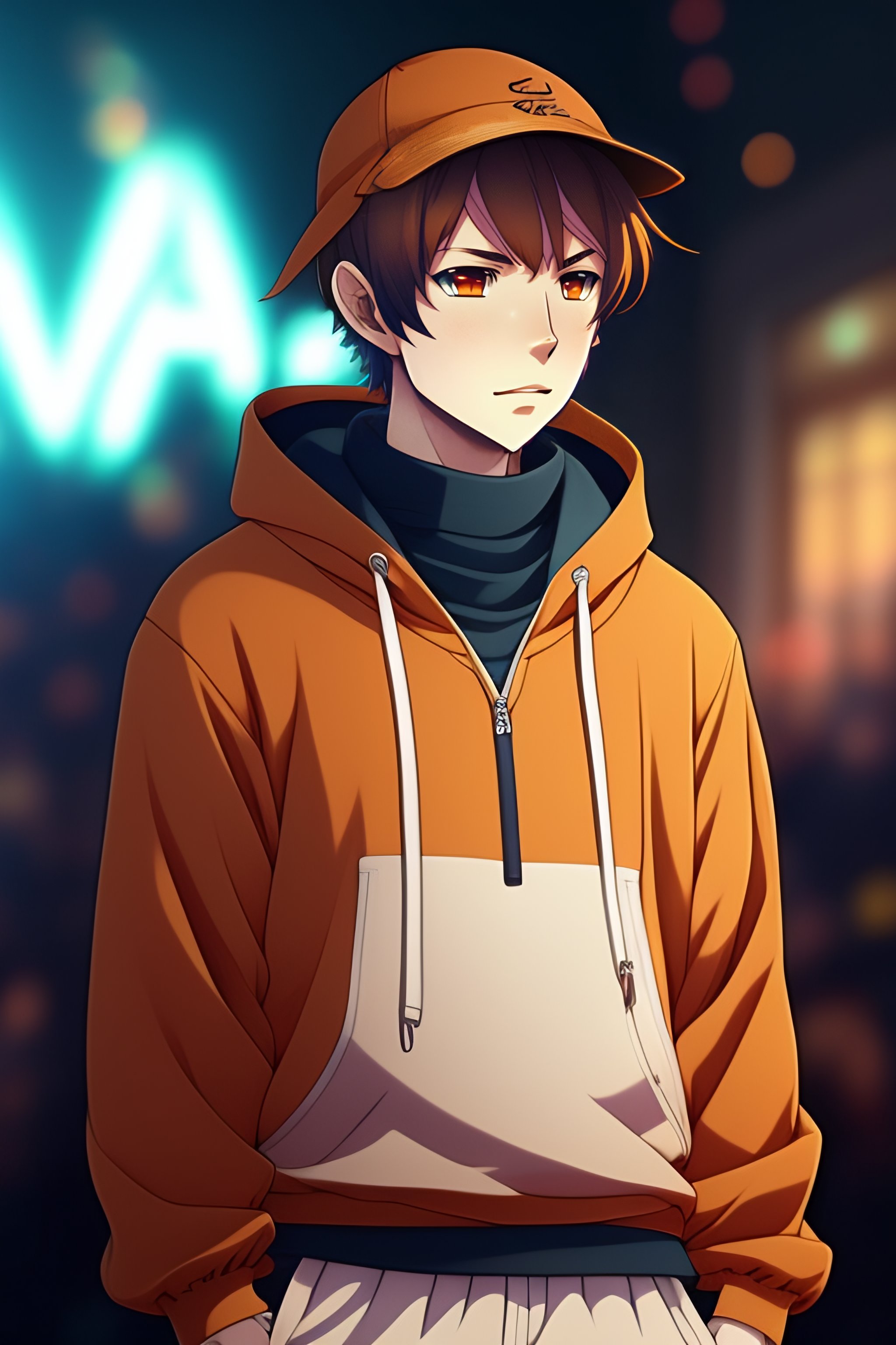 Anime male anime character young male, novice magician, wearing light brown sweatshirt with bear ears on his sweatshirt cap.
