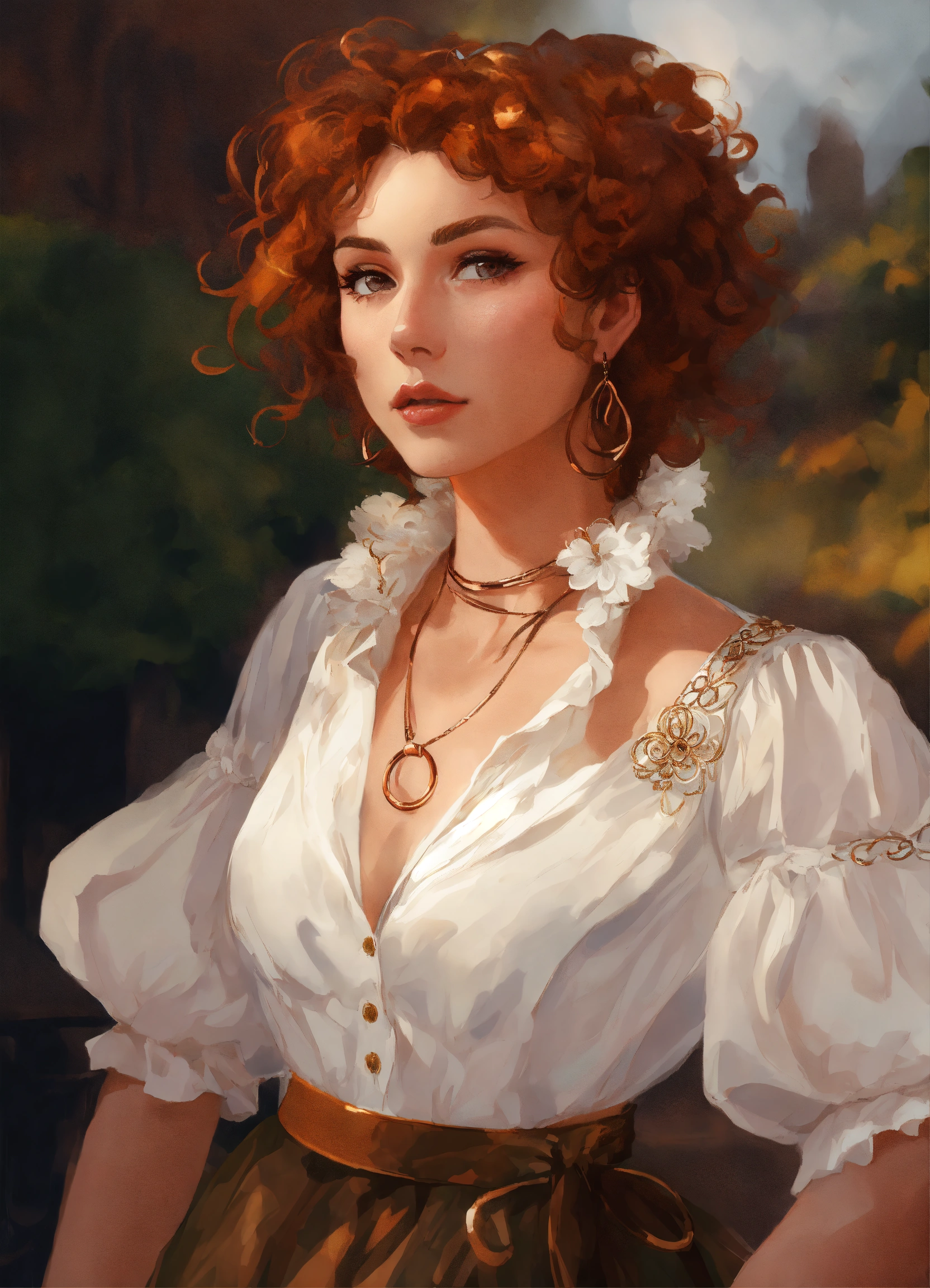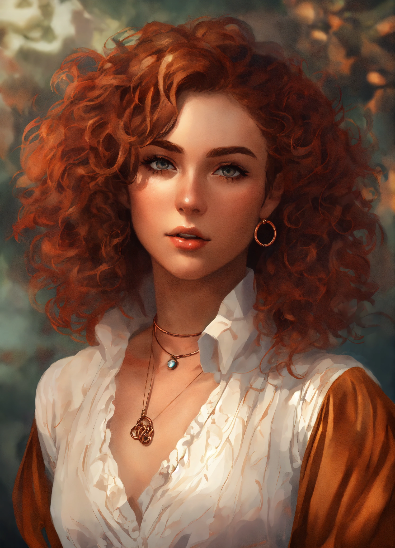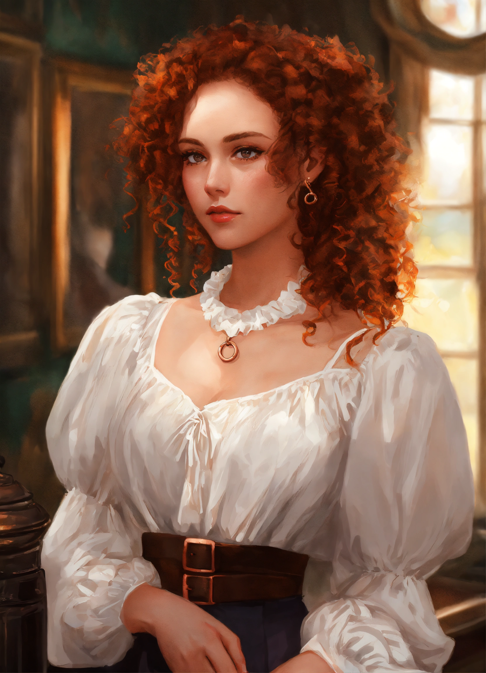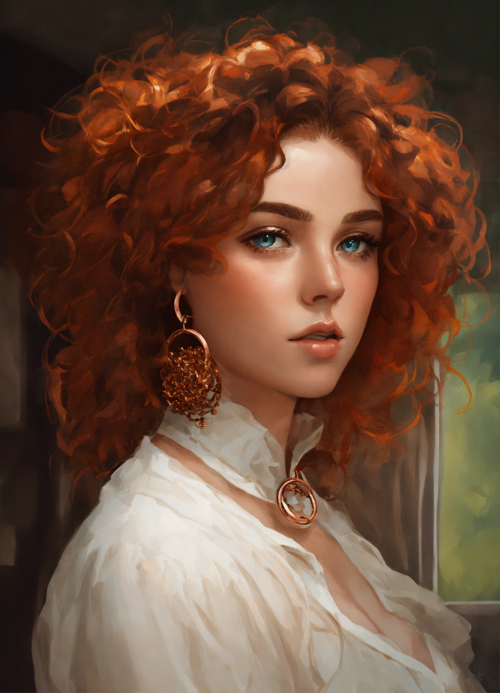 Digital art portrait of a snobby british woman with copper ringlets