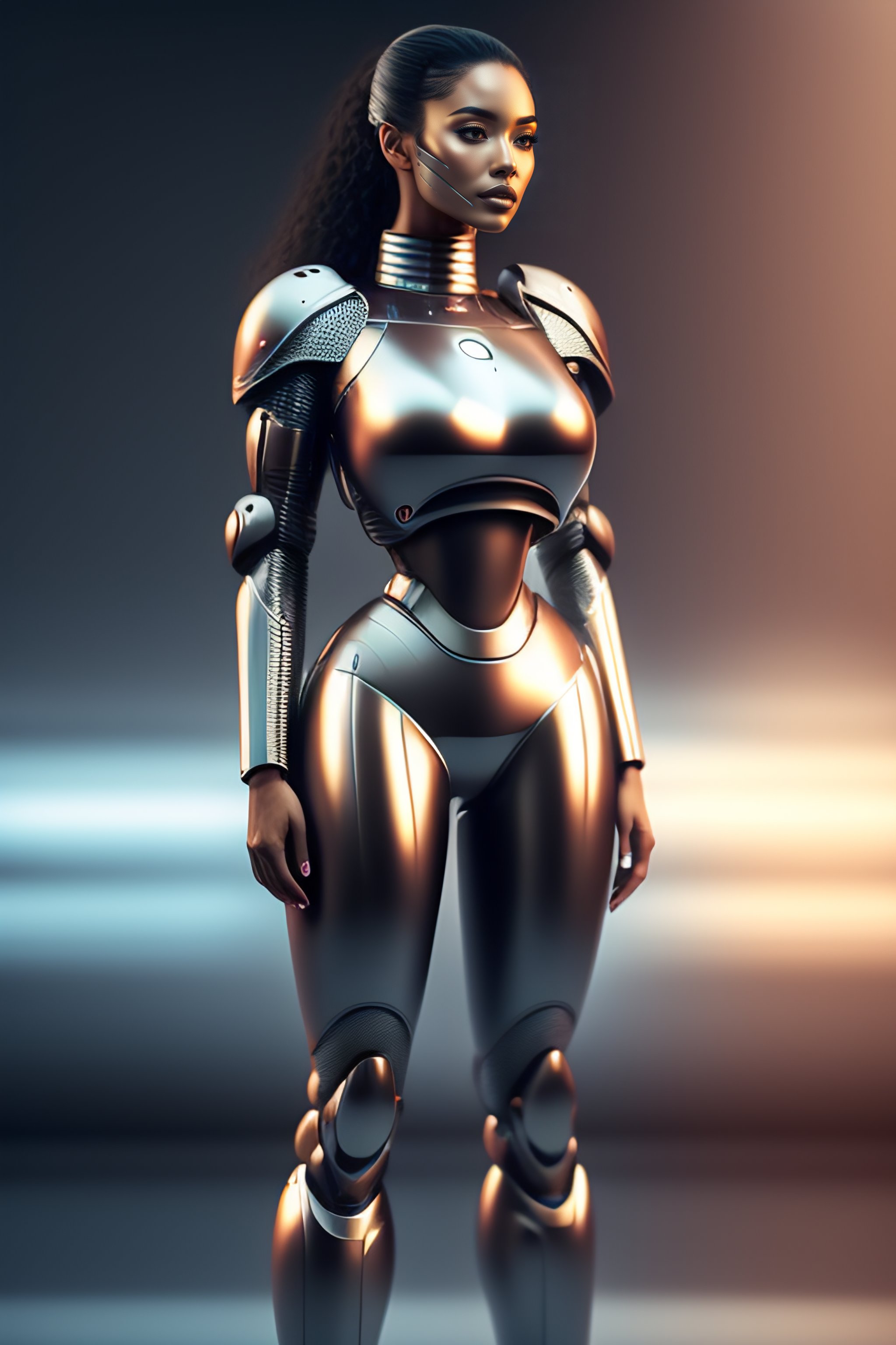 2500 future mom robot, athletic body, fully clothed matte metal body, full body product photography, double round, tiny waist, pretty face big lips, huge wide mechanical hips, concept art