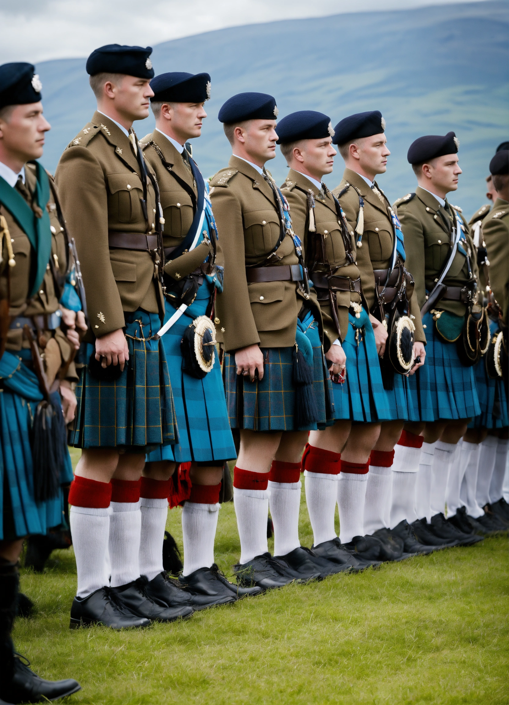 Scottish soldiers wearing kilts