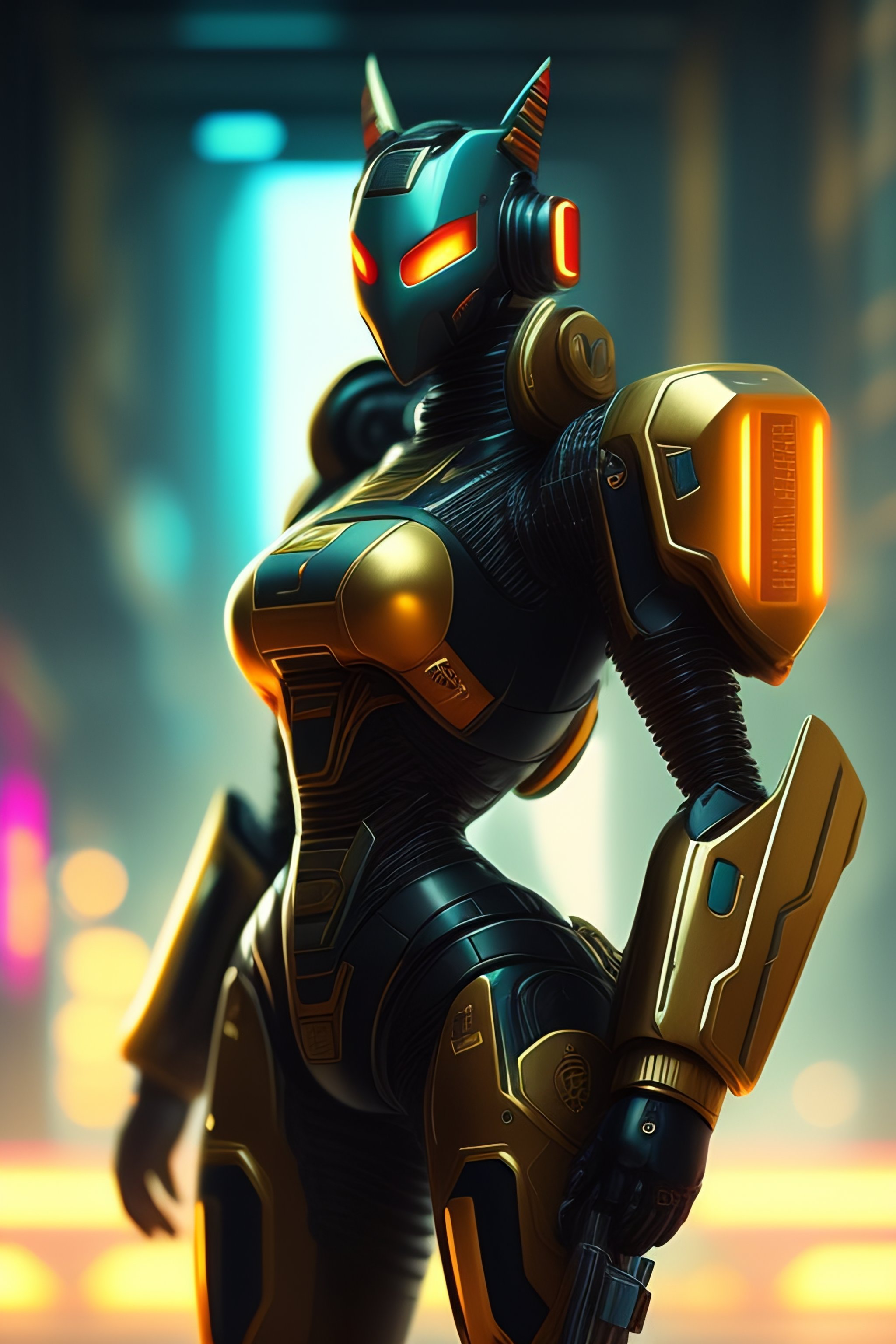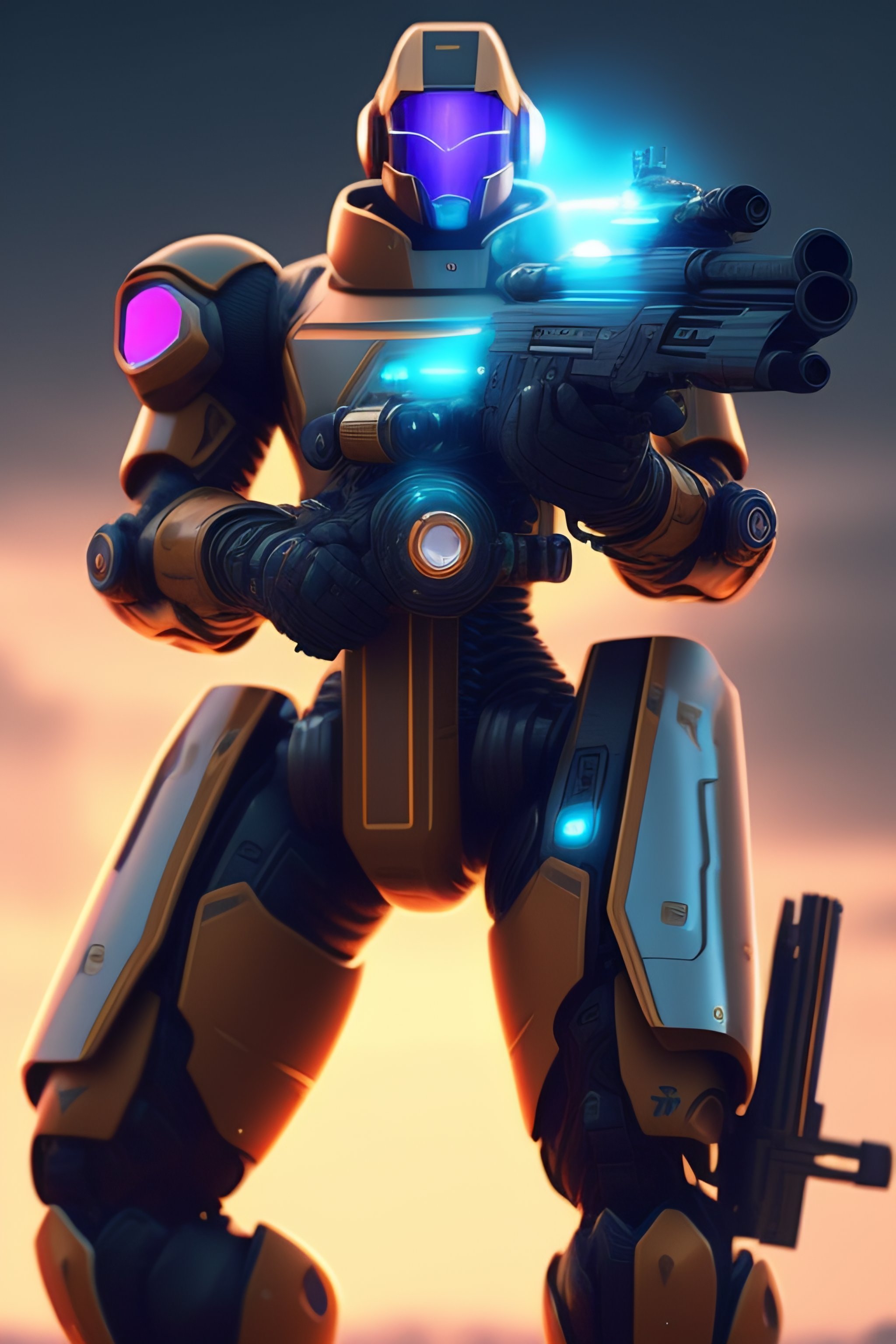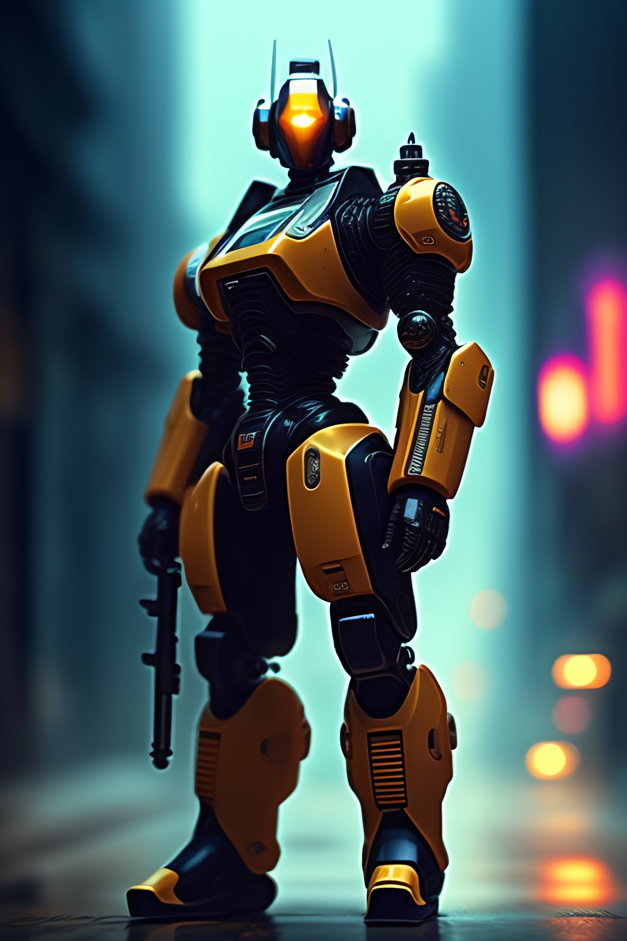 Cyberpunk futeristic robot soldier