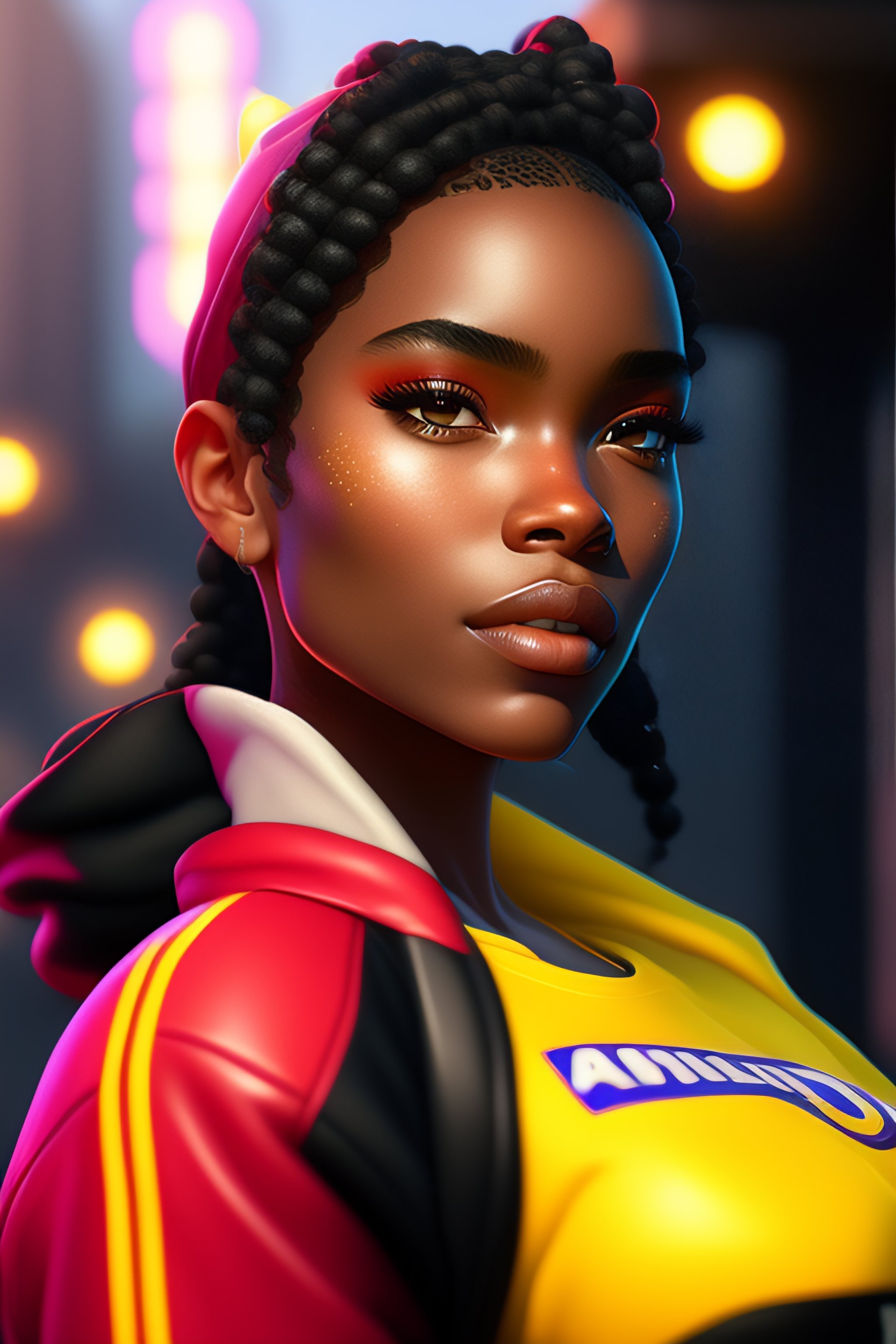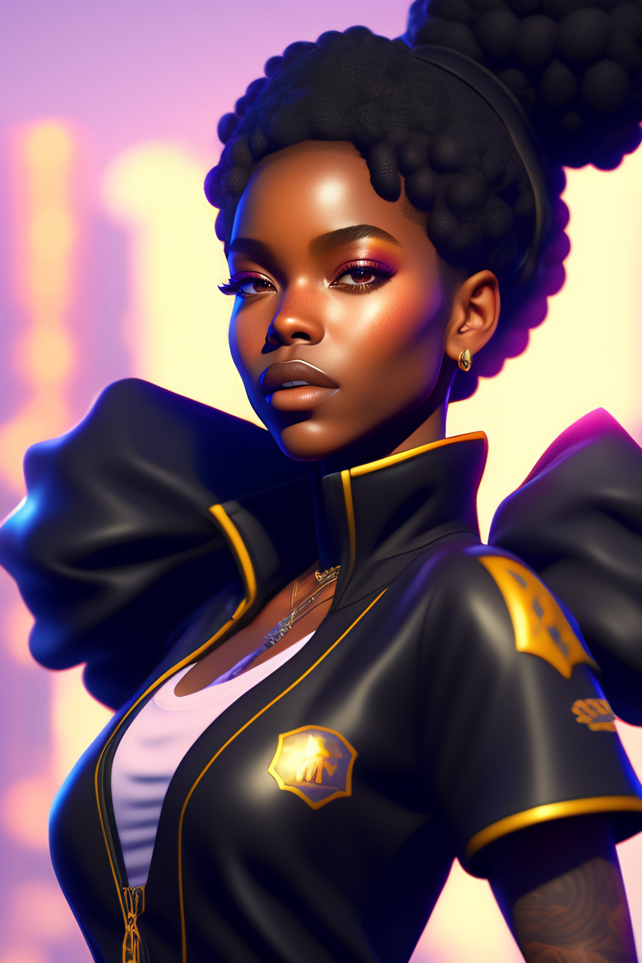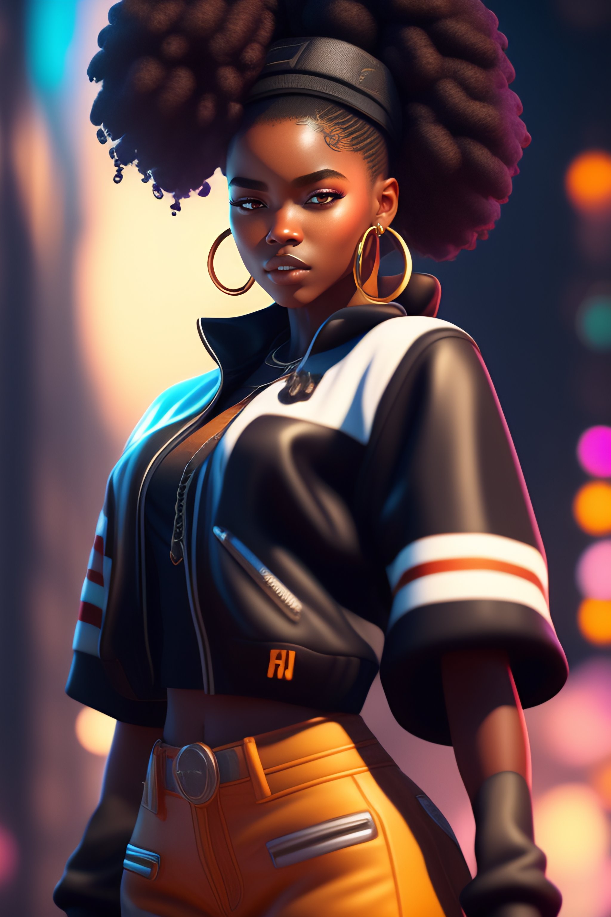 A black girl as fantasy personification of hiphop, character design, 9 0 s inspired clothing, unreal engine, highly detailed, smooth, digital illustration by artgerm, tooth wu, studio ghibli, sharp focus, artstation. musical notes, black power fist. a police car, makoto shinkai, global illumination, blender, maya 8 k
