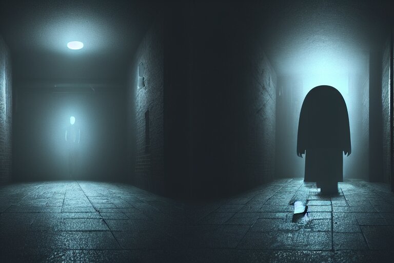 Faceless entity in a dark alley terrifyingly staring at camera screaming, octane render, artistic, cinema 4d, dark horror, horror, cosmic horror, creepy, 8k
