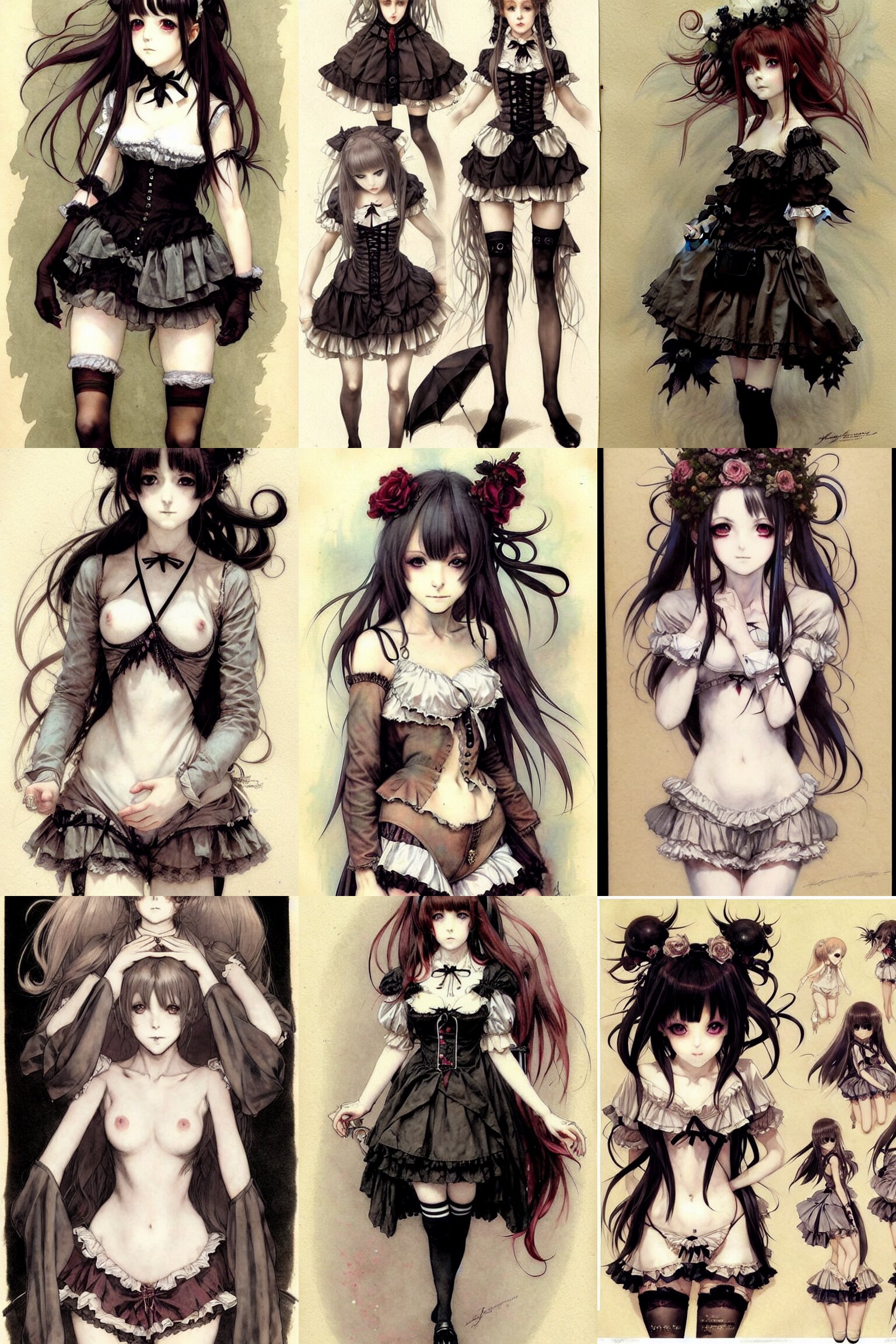 ( ( ( ( ( portrait anime as gothic lolita girl in underwear cover art, fashion reference sheet, ) ) ) ) ) by jean - baptiste monge!!!!!!!!!!!!!!!!!!!!!!!!!!!