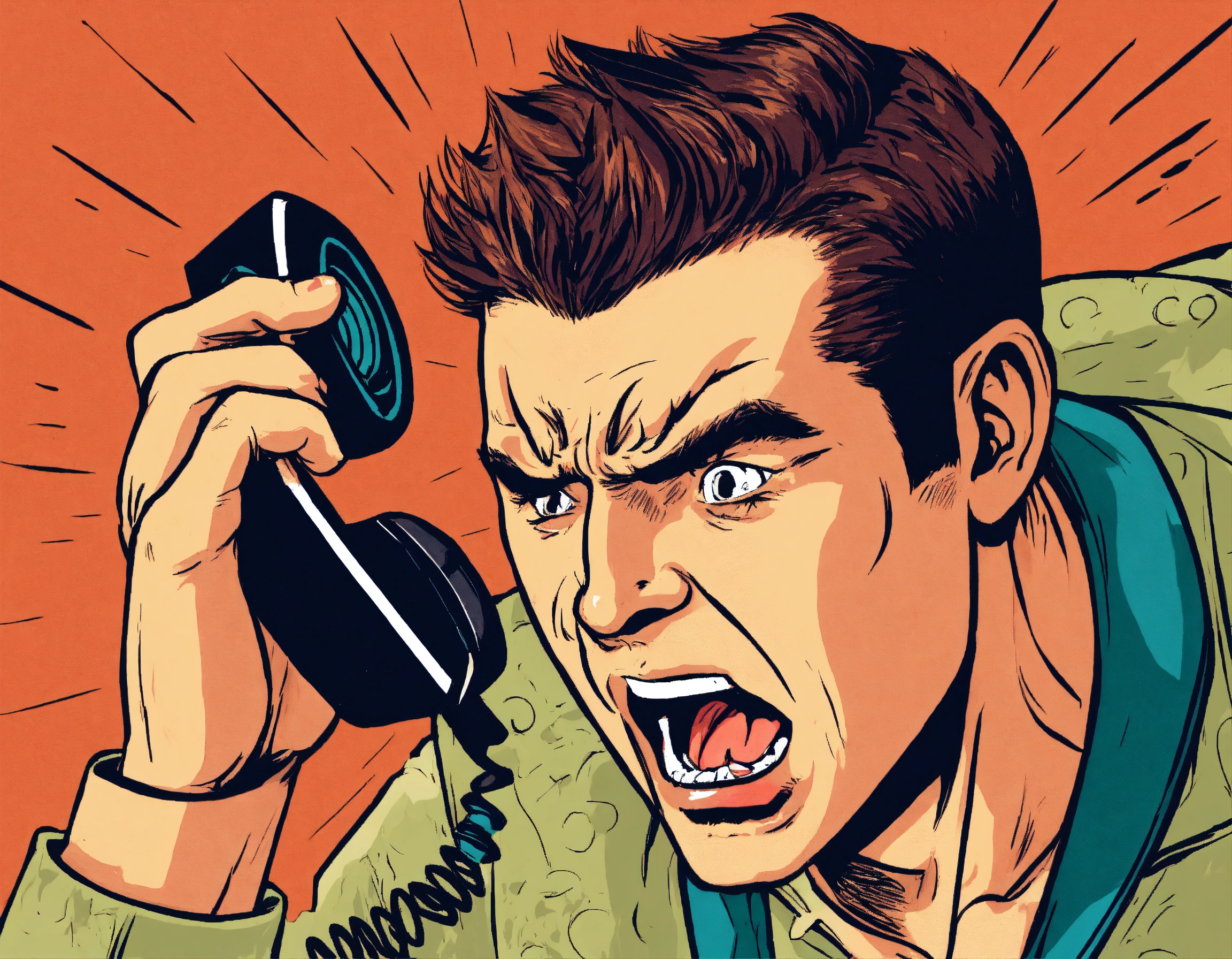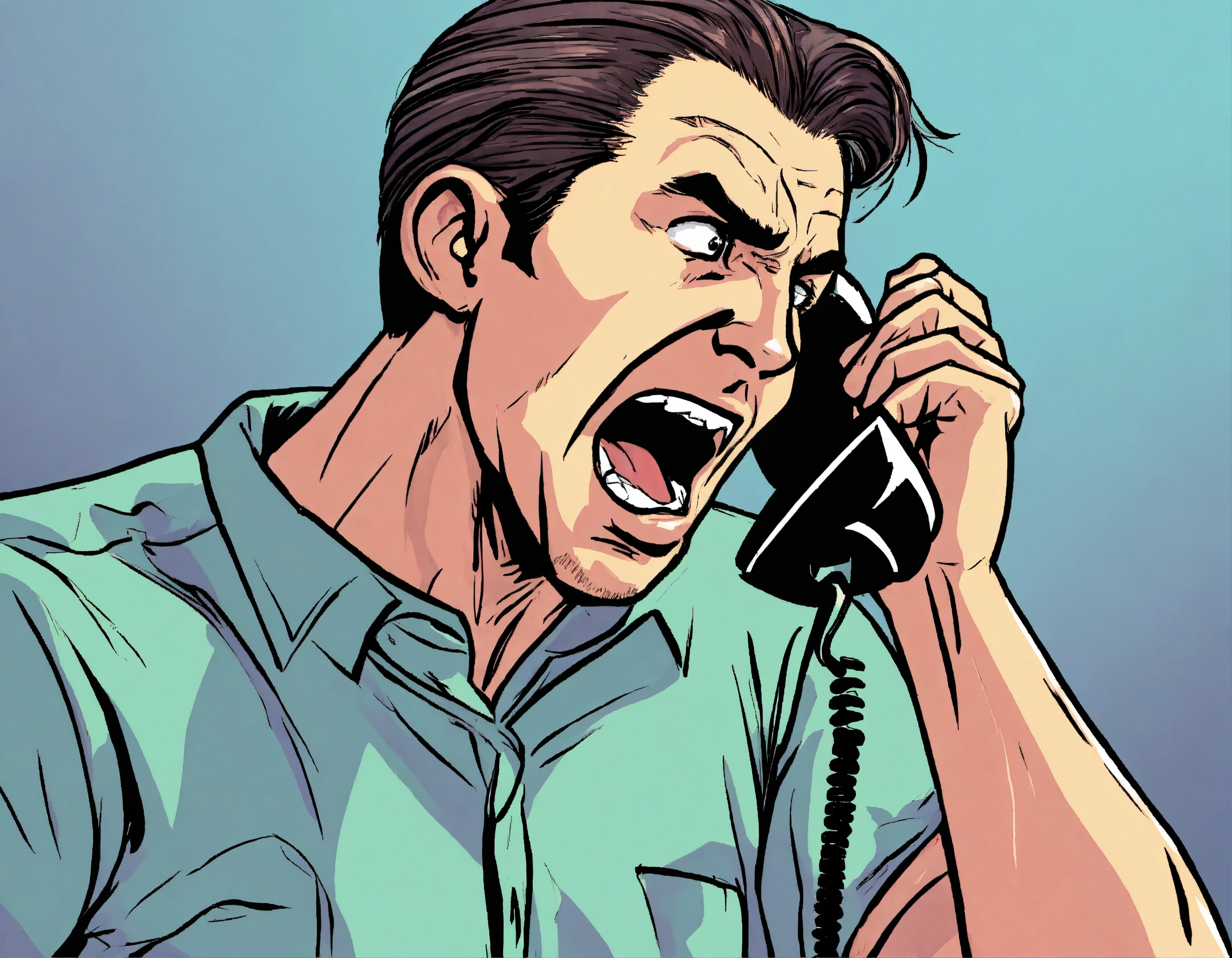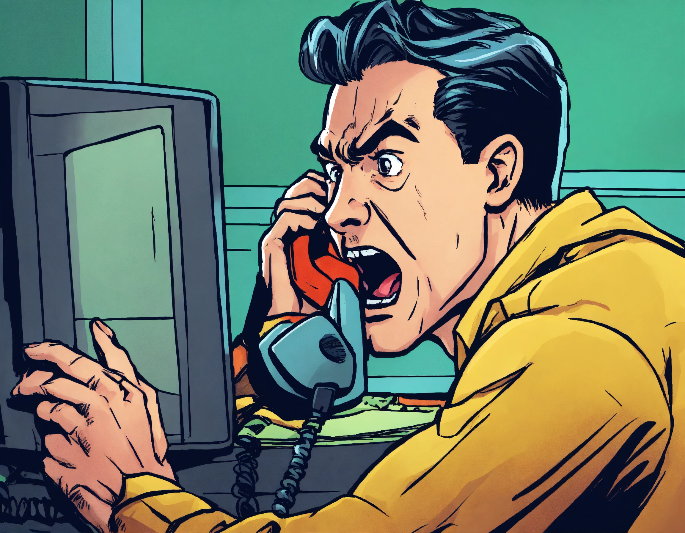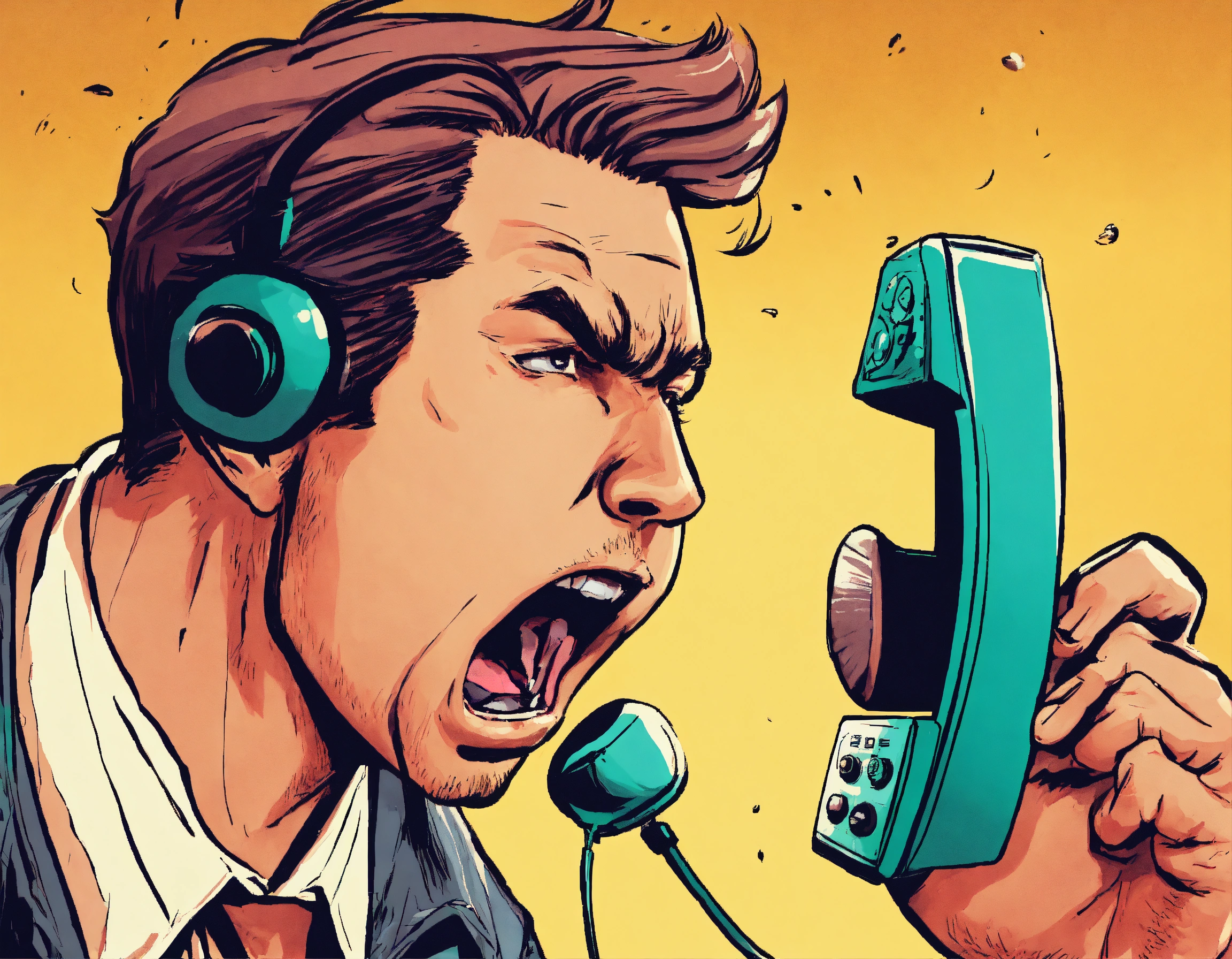 a man is yelling into a telephone