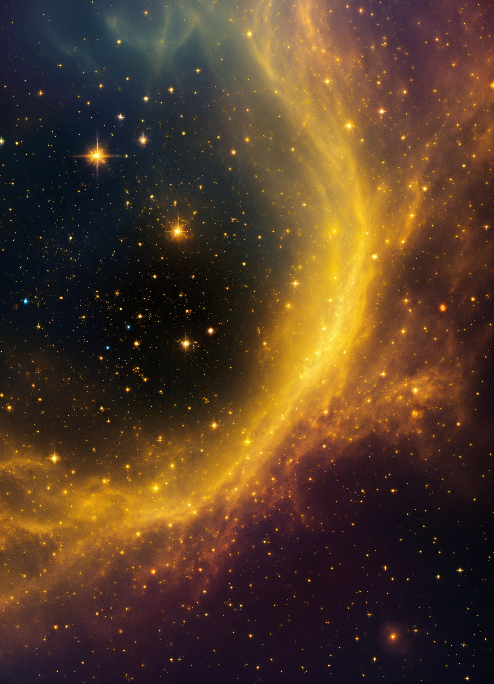 Interstellar space mystery wallpaper of stars, background, creative imagination, neutral palette with yellow hints, ombre, vibrant, cosmic essence, magical, ether