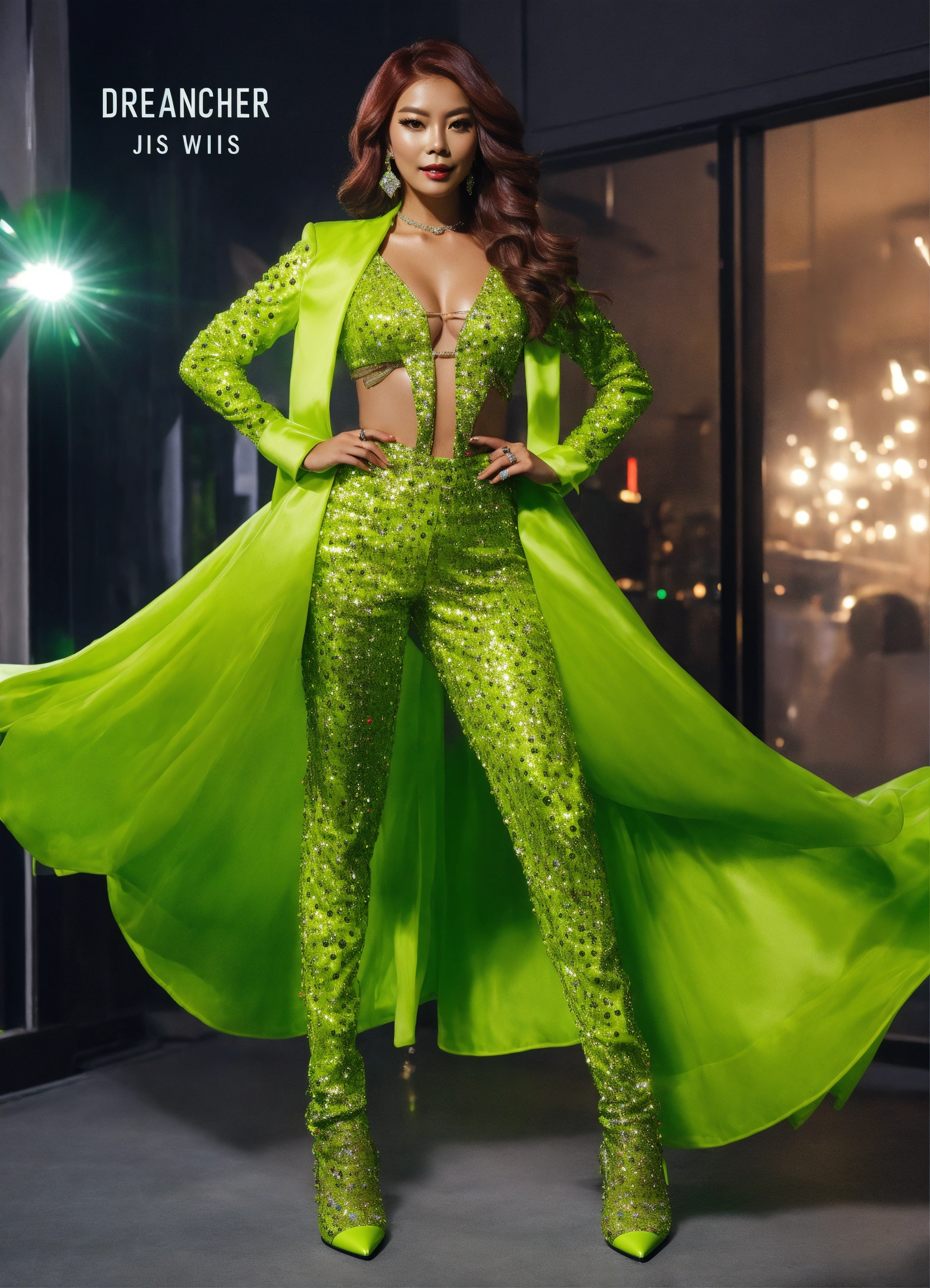 Dreamcatcher jiu glamorous sparkly diamond studded lime green outfit with high heels