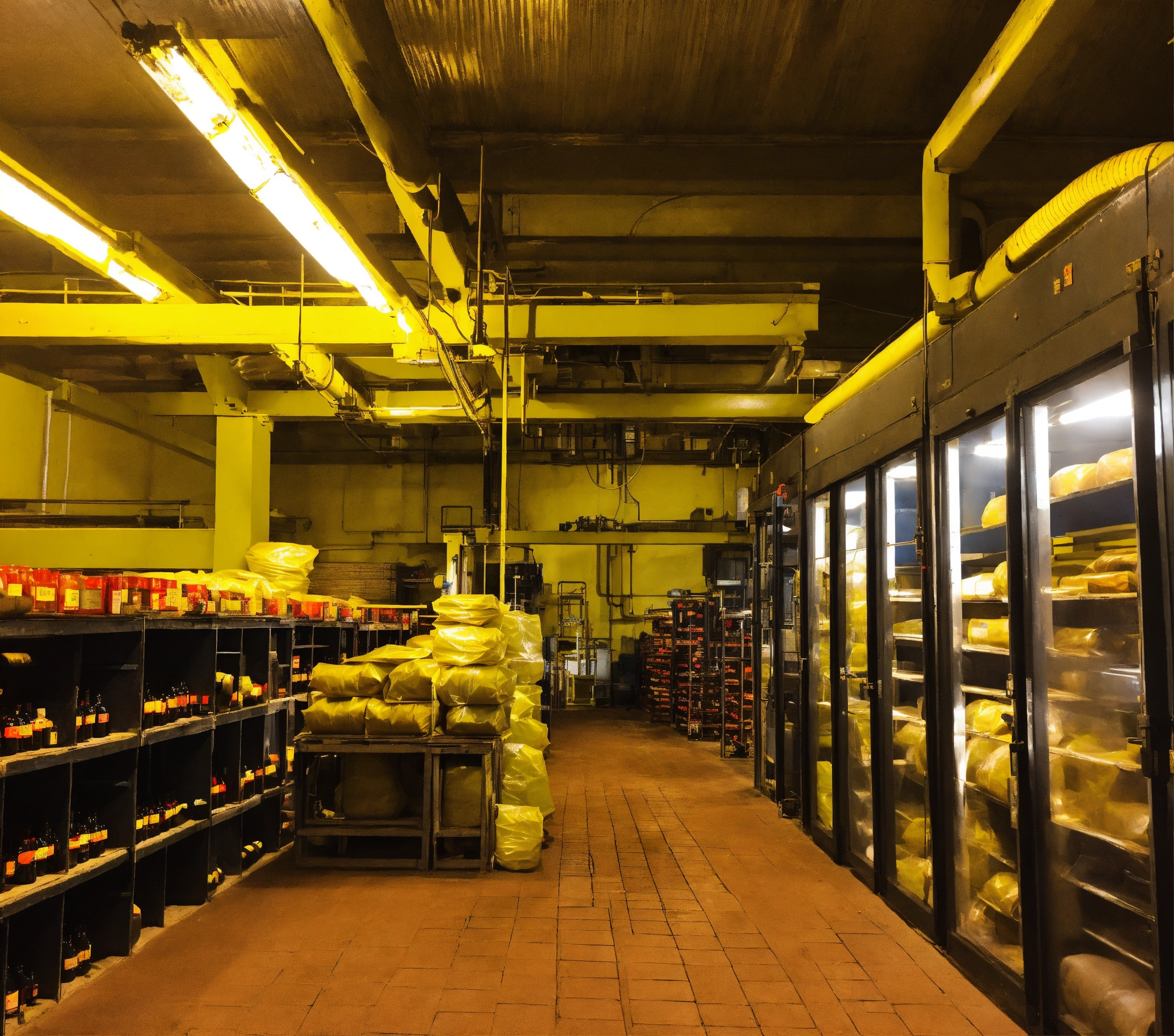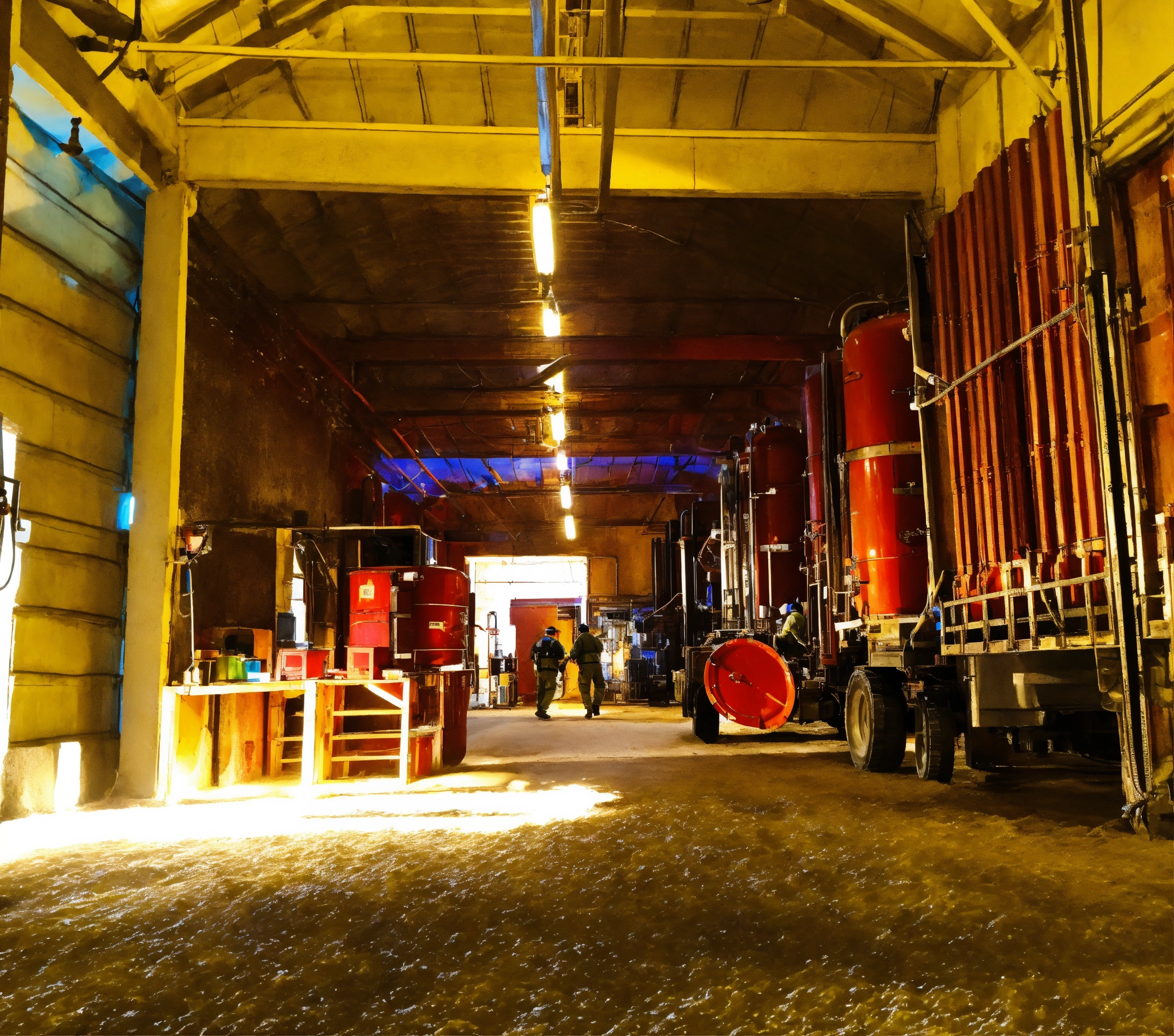 Operarios de fábrica trabajando en bodegas de almacenes