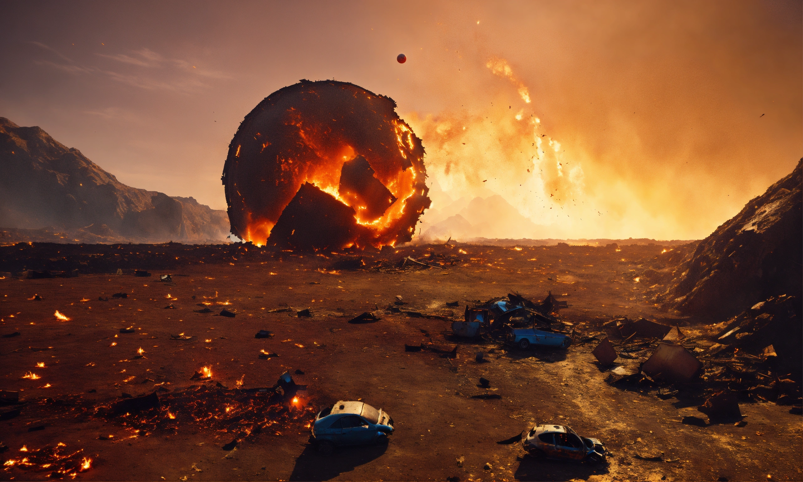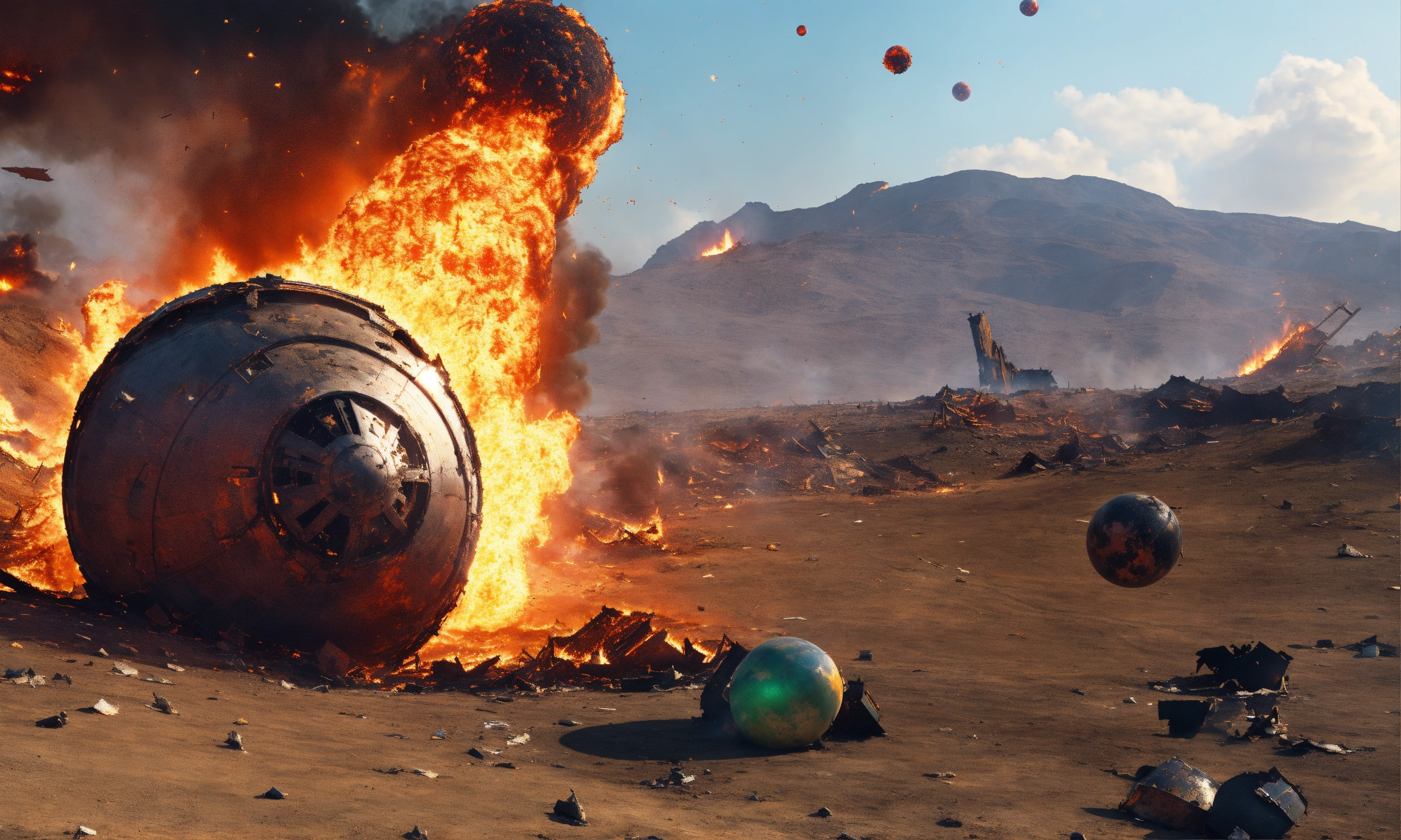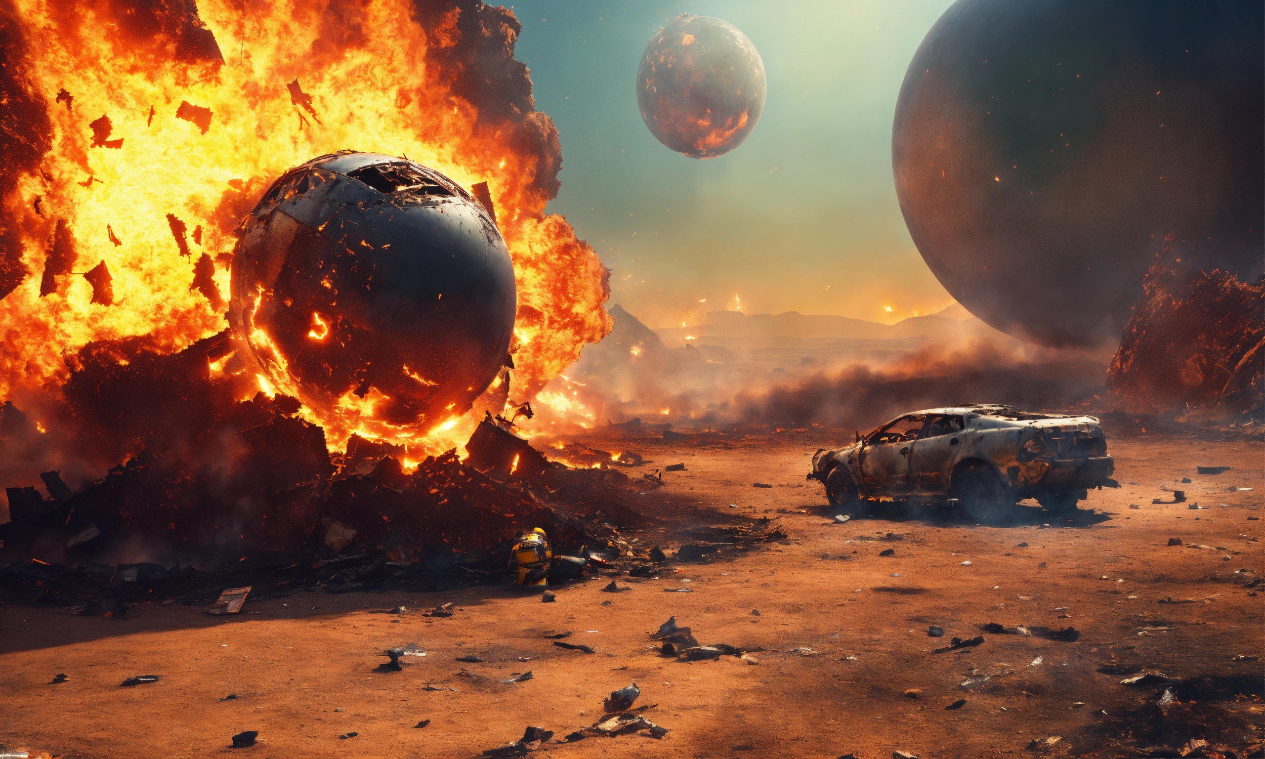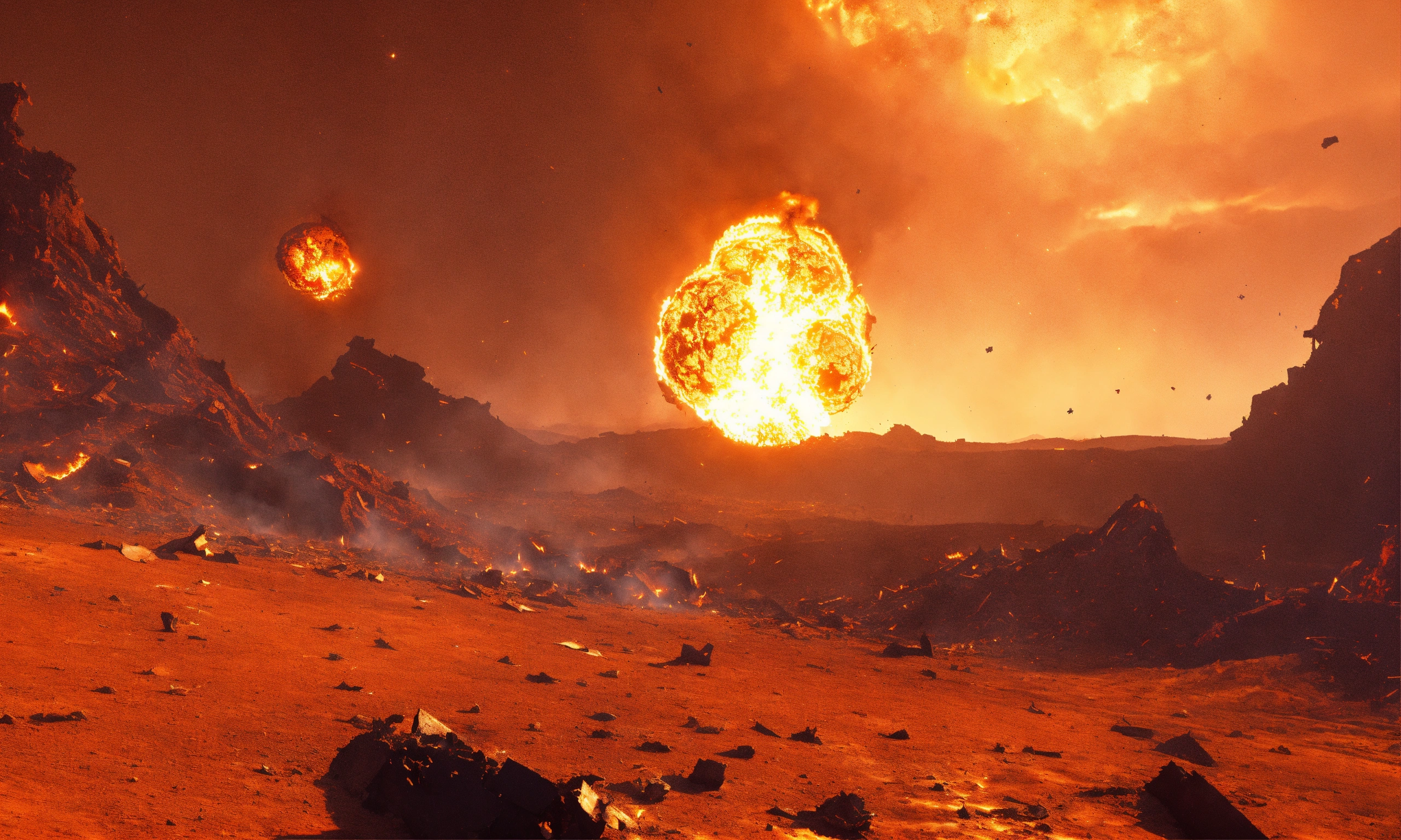 Fire ball crashing into a fireball on alien planet