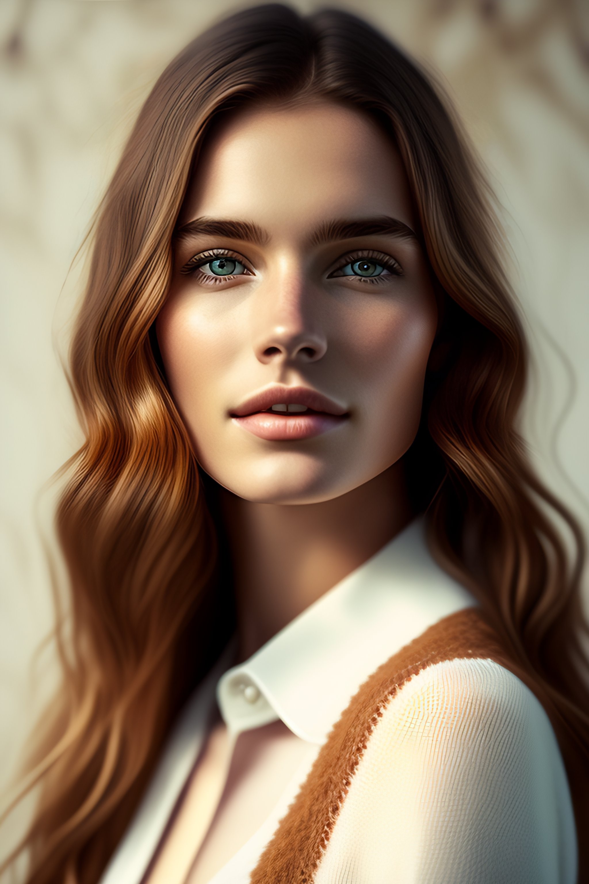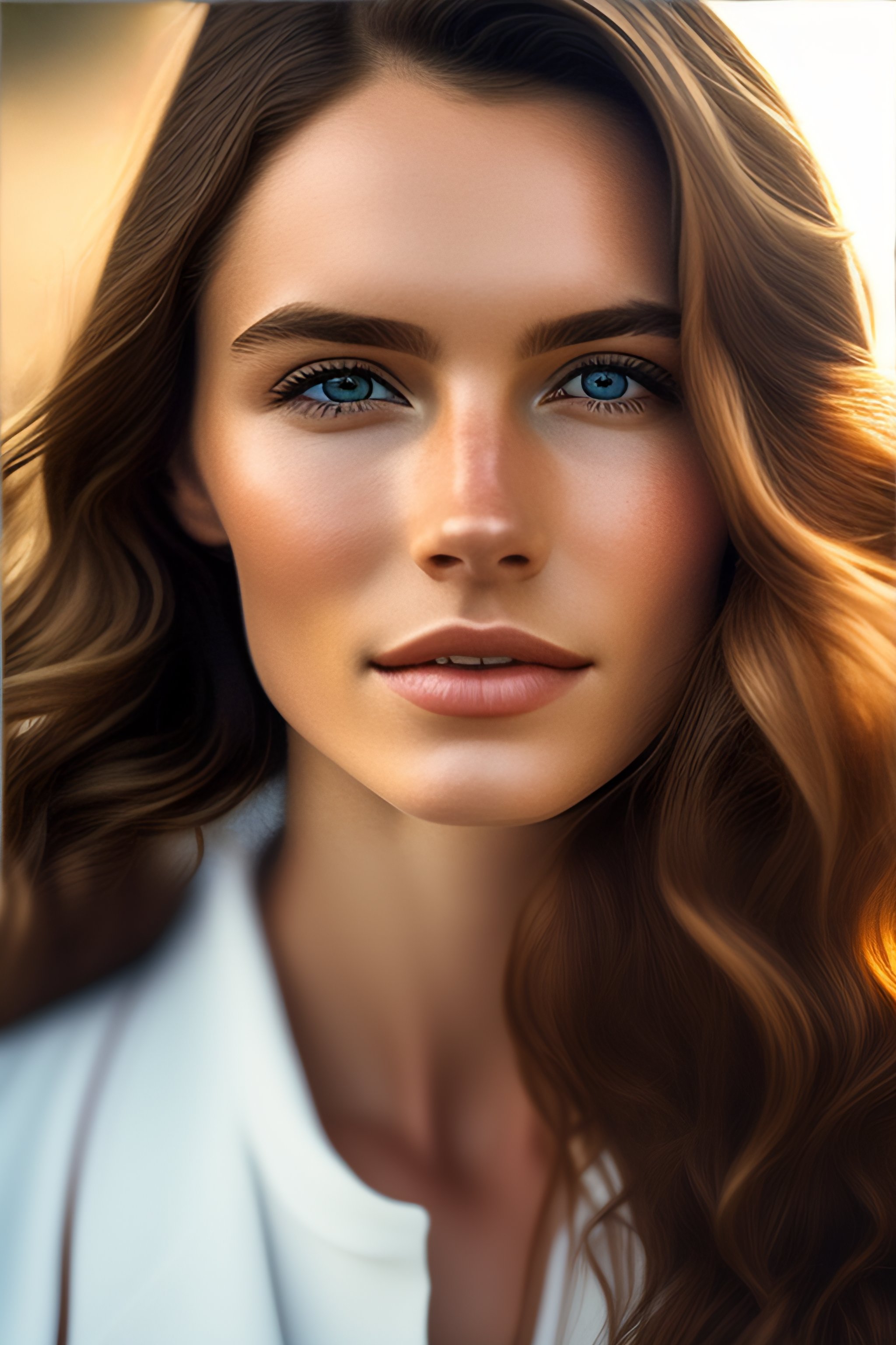 Beautiful natural white skin young woman, brown hair, brown eyes, portrait, analog photo style, photorealistic, 4k, highly detailed, sharp focus, hyper realistic