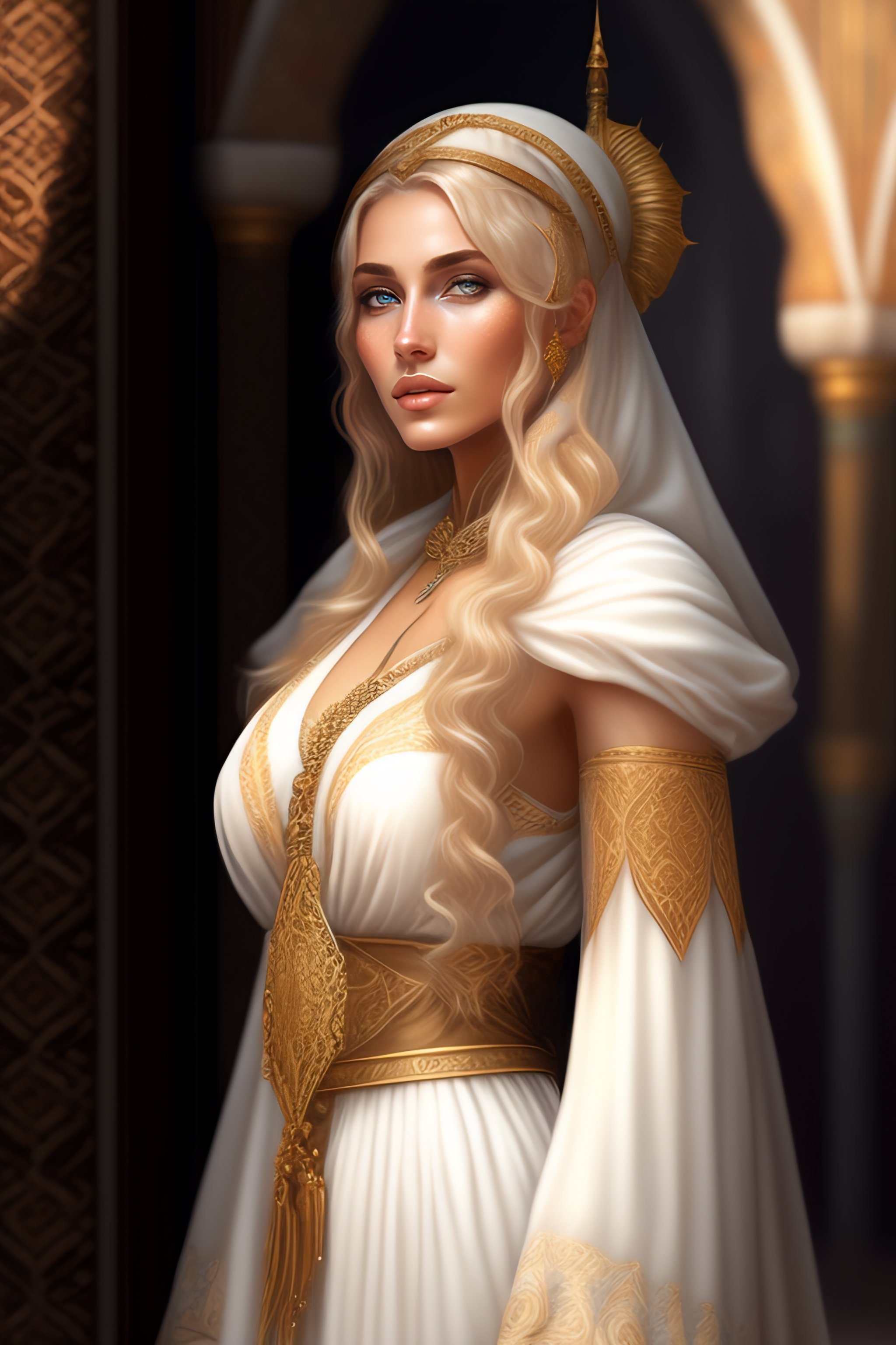 A full body portrait of a cute beautiful medieval female blind pulp fiction white wild leper begging in the sultan's palace, open clothing, intricate, elegant, highly detailed, digital painting, artstation, concept art, smooth, sharp focus, illustration, blonde hair, prepper