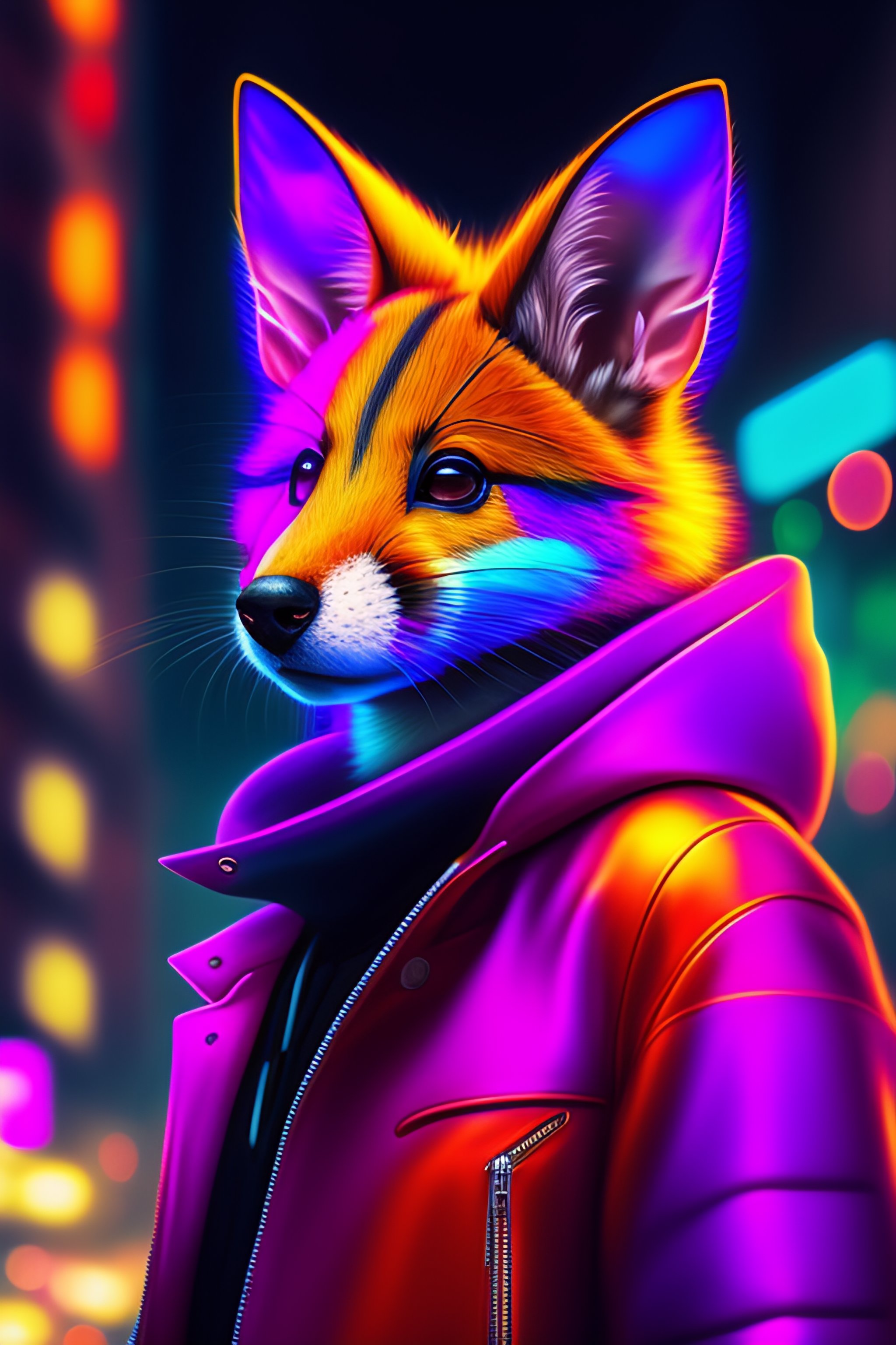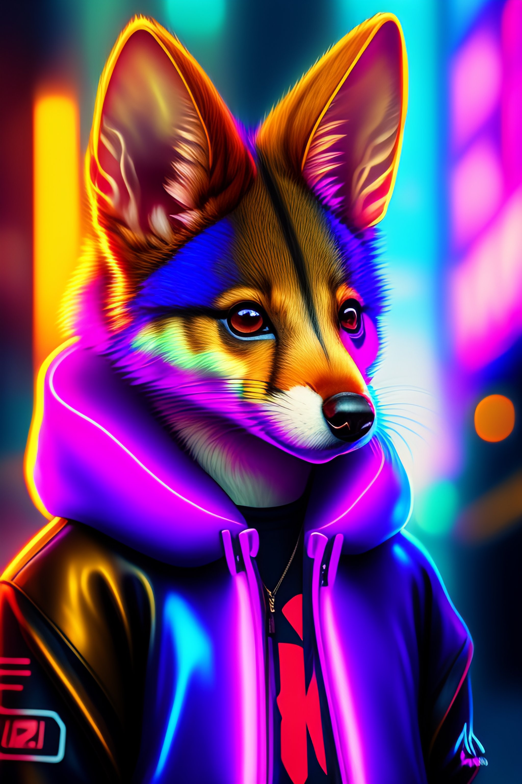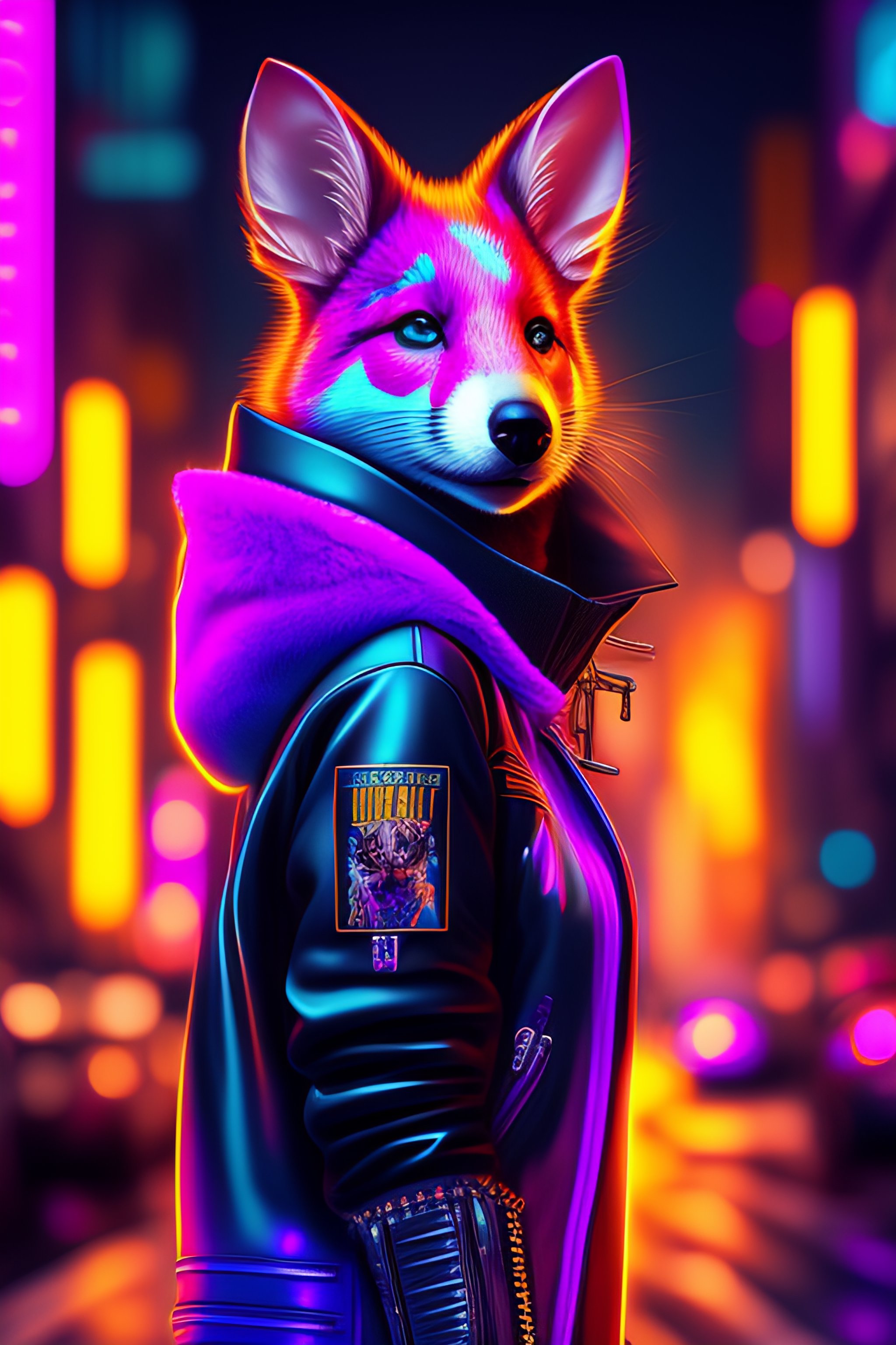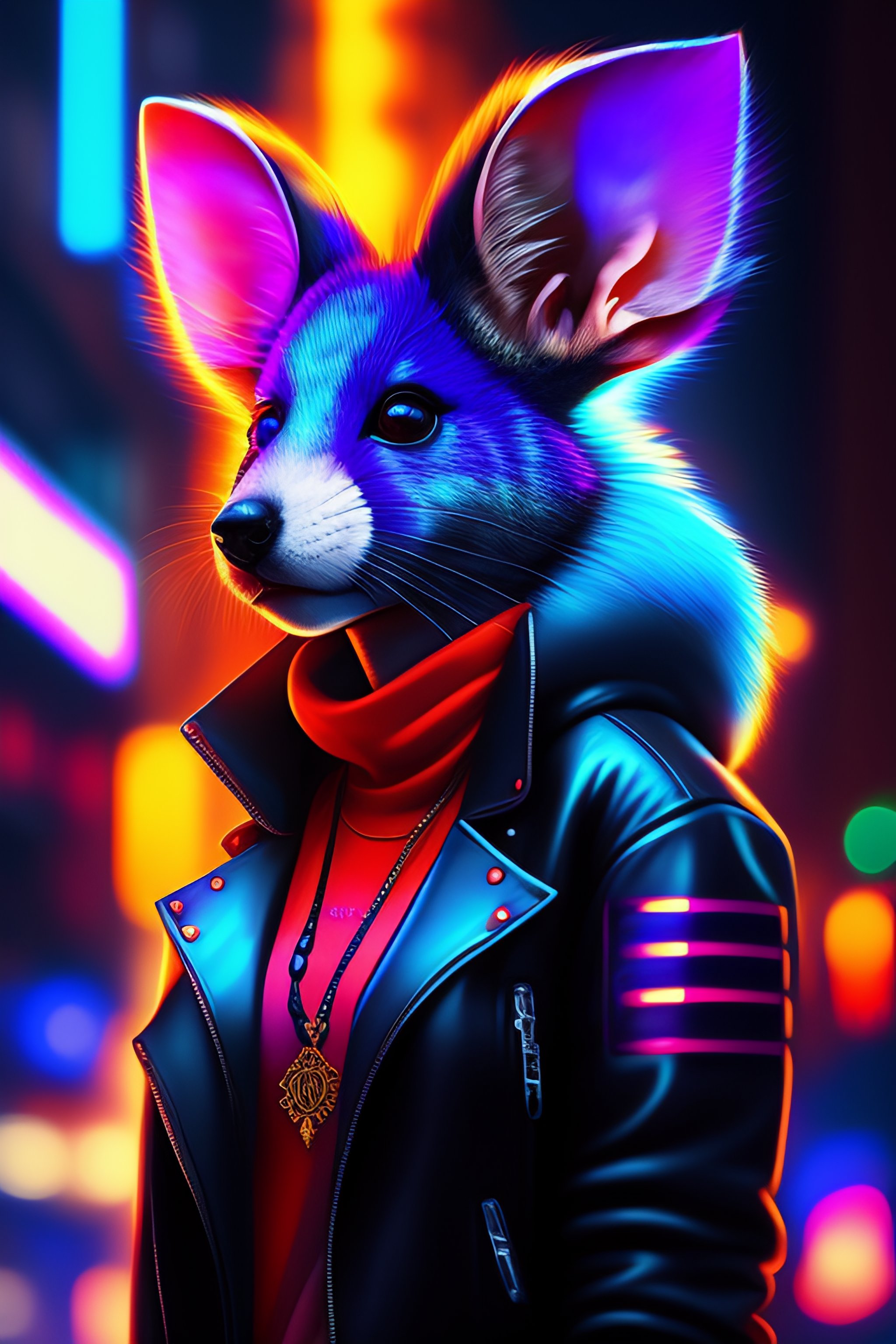 Beautiful furry art portrait digital art, vibrant neon commission of a furry anthro rat fursona wearing punk clothes in a cyberpunk city.