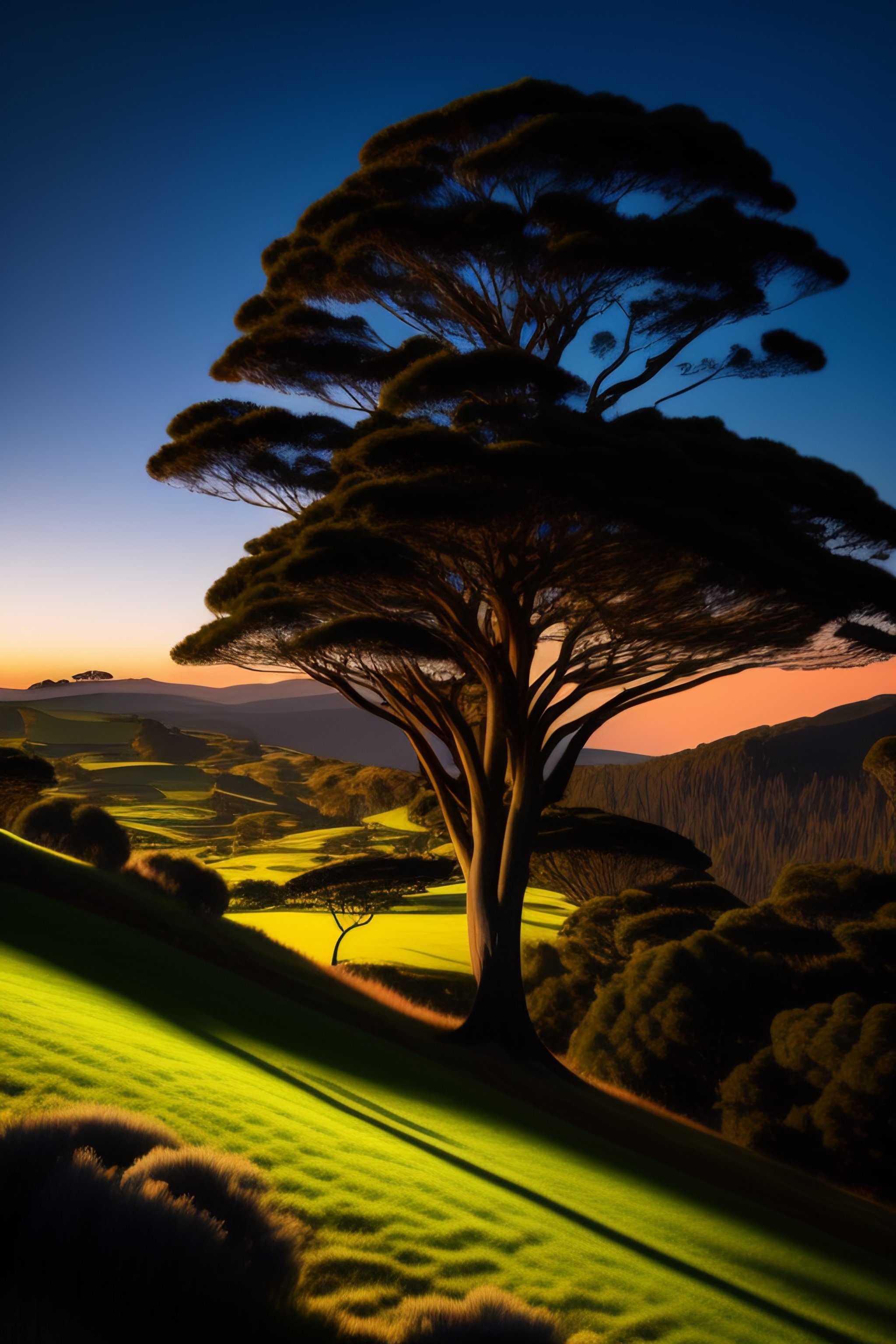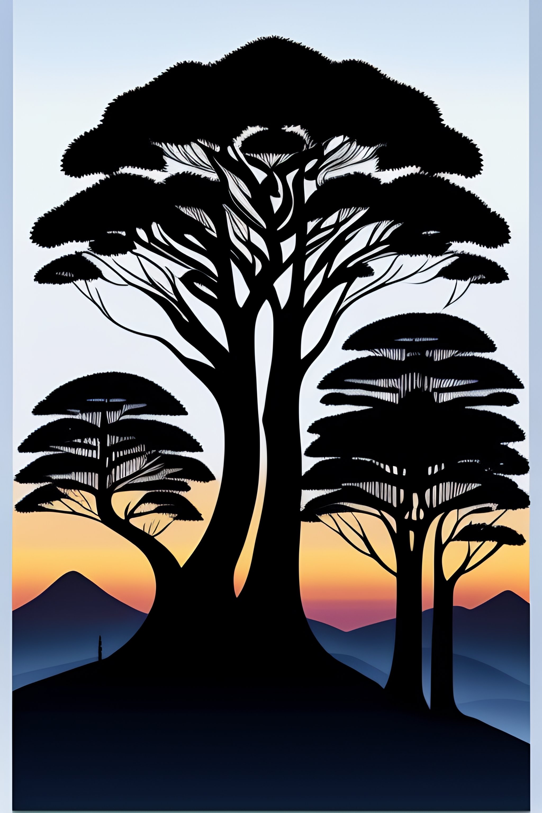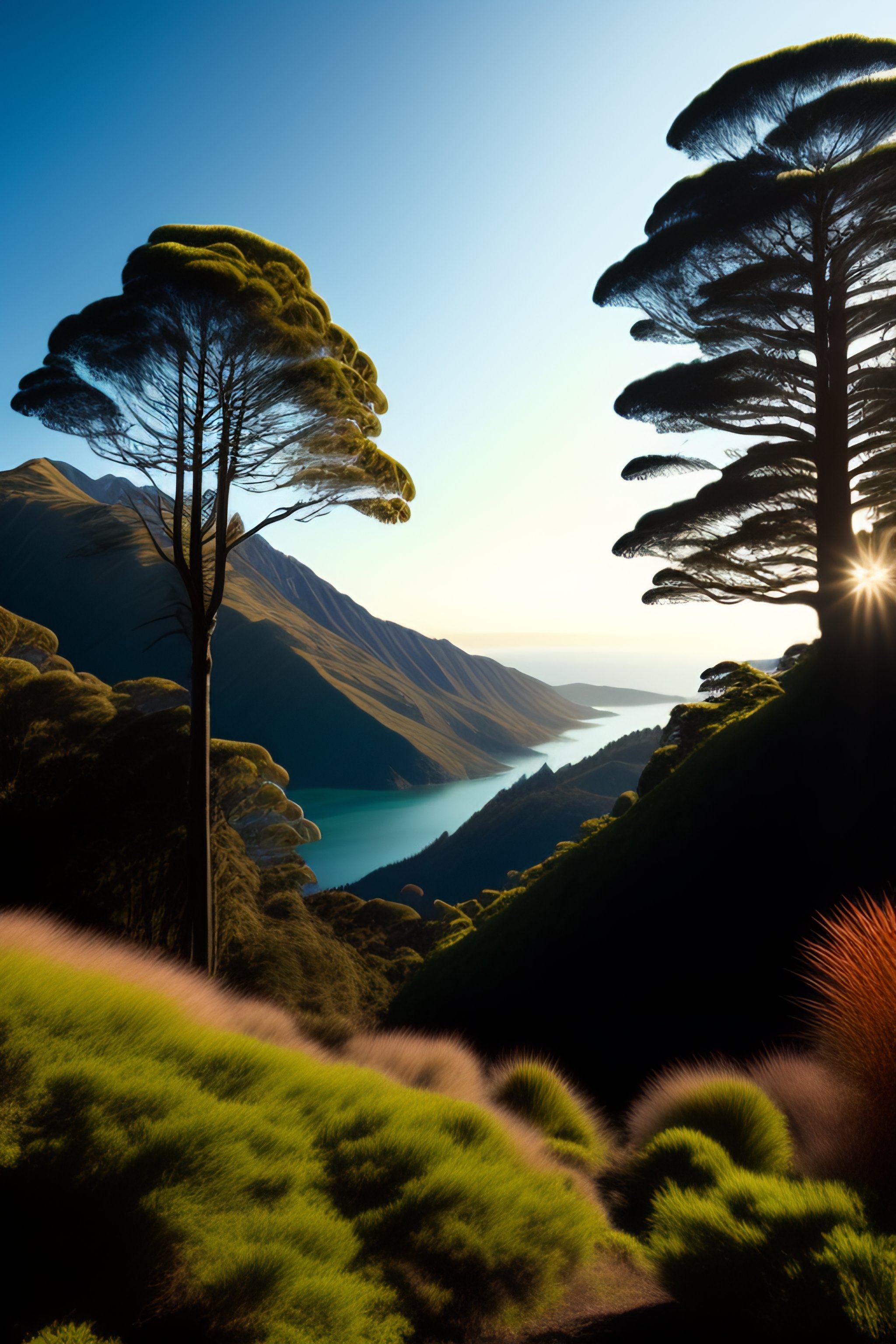 Silluette skyline trees new zealand native bush