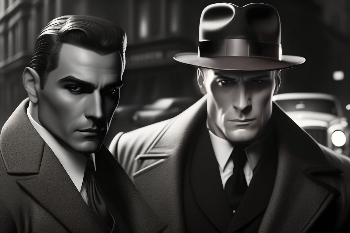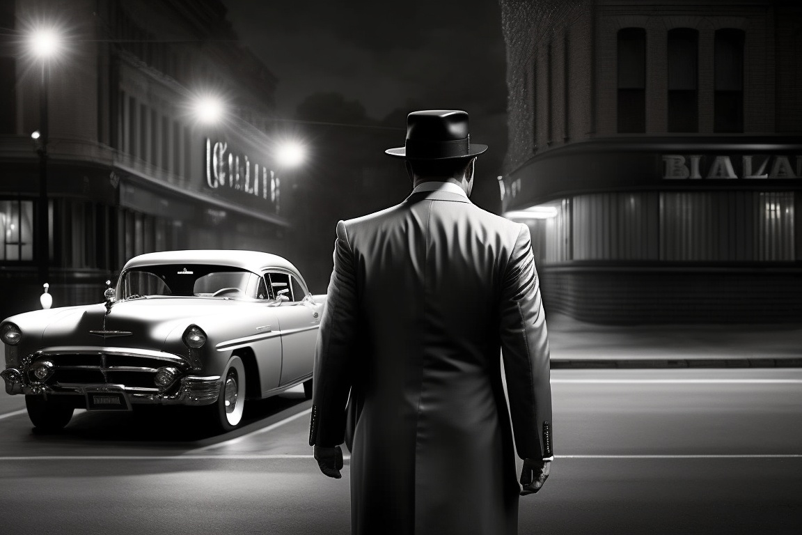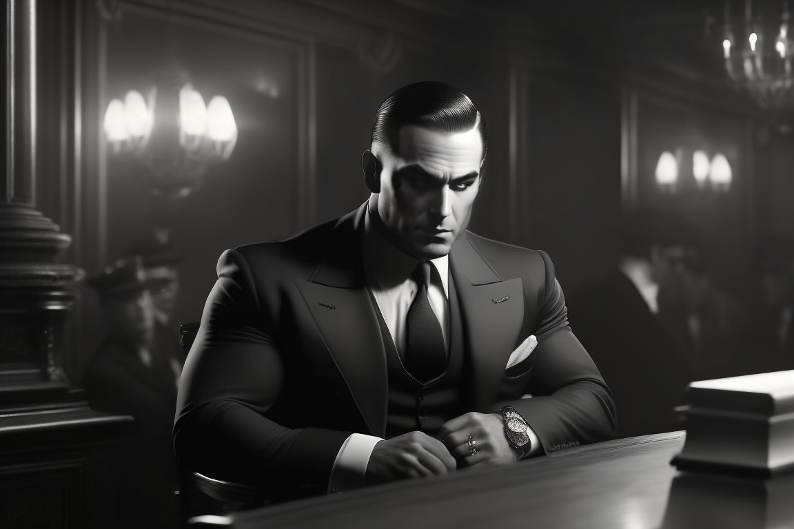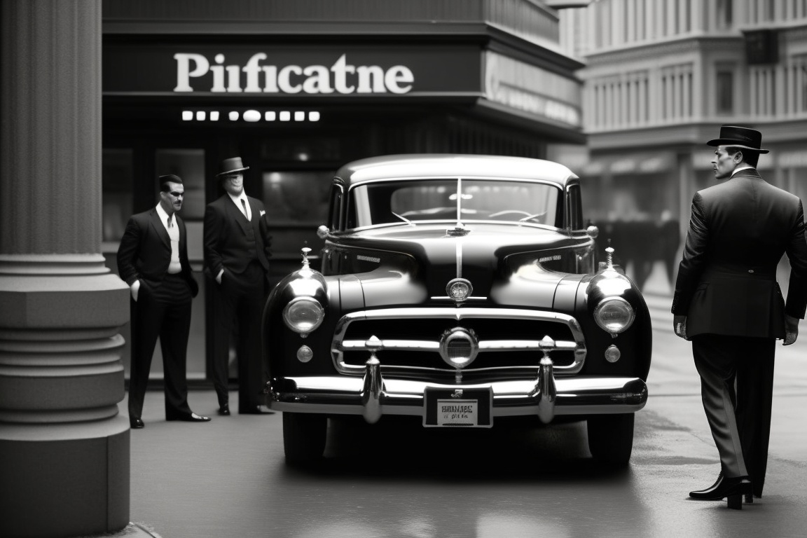 (masterpiece:1.2), (cinematic:1.1), black and white gangster film footage: witness the rise and fall of an infamous crime syndicate through this captivating footage. it showcases the charismatic mobsters, vintage cars, tommy guns, and backroom deals that defined the era. with its carefully composed shots and monochromatic palette, it brings to life the allure and danger of the criminal underworld.