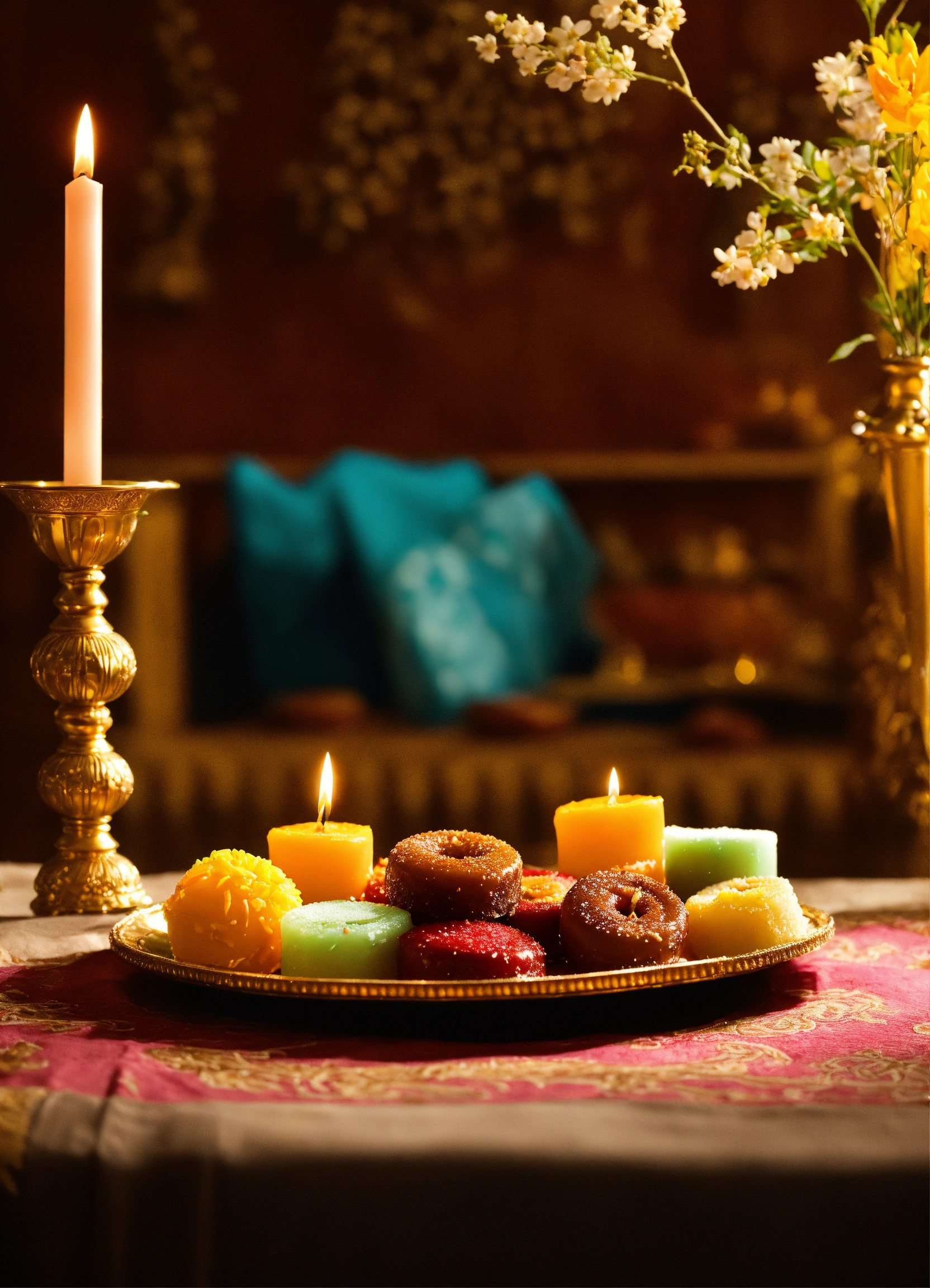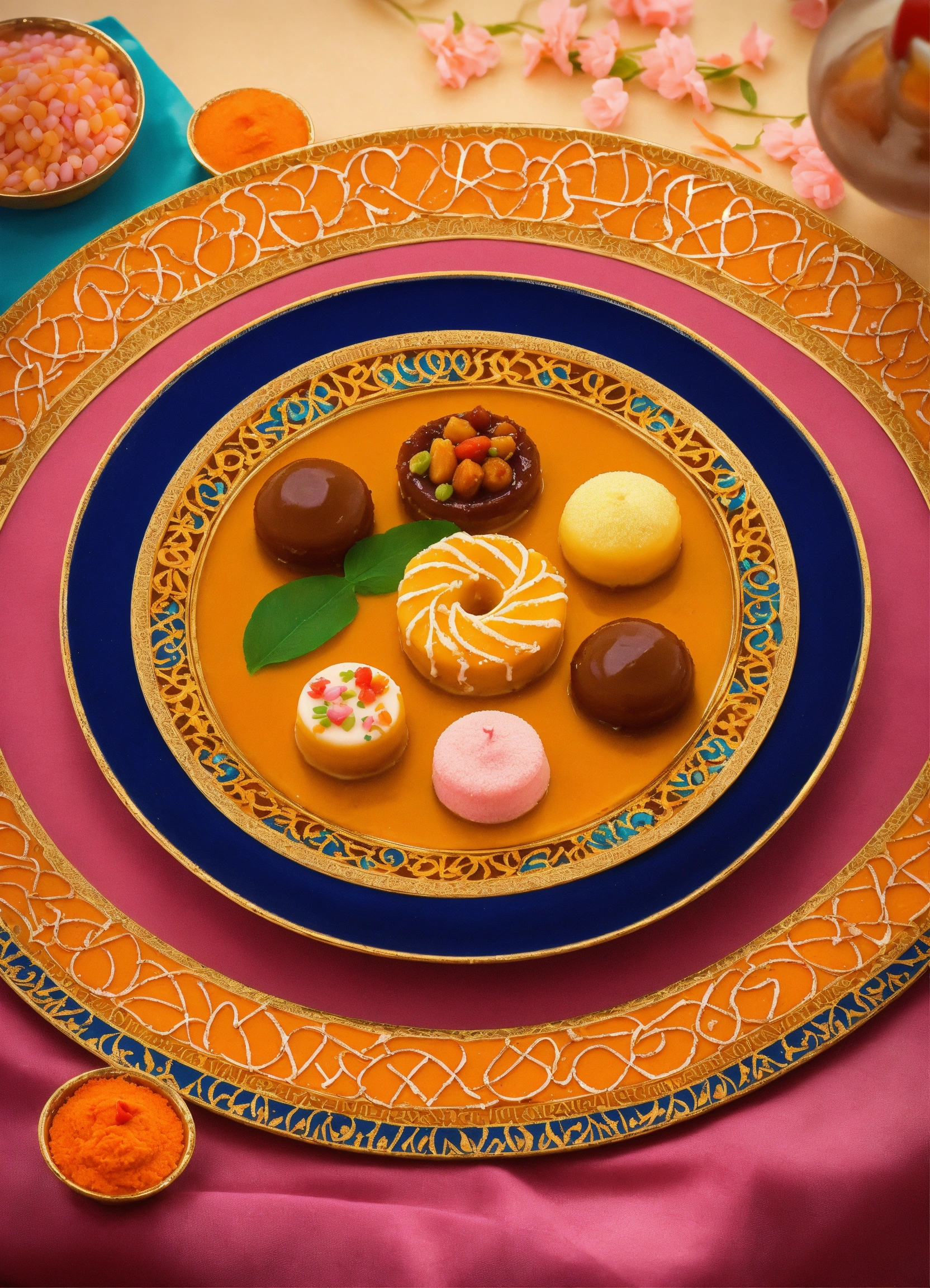 Post idea and presentation create a linkedin post with three images image of a beautifully arranged plate of assorted traditional sweets from gokul, with a focus on the gulab jamun and jalebi. ensure that the sweets are visually appealing and well-lit. a picture of a serene corner of gokul, perhaps with a candle or a lamp to represent the spiritual significance of milad-un-nabi. add a touch of islamic art or calligraphy in the background. a heartwarming image of people enjoying the sweets together, showcasing the communal aspect of this special occasion. capture smiles and shared moments.