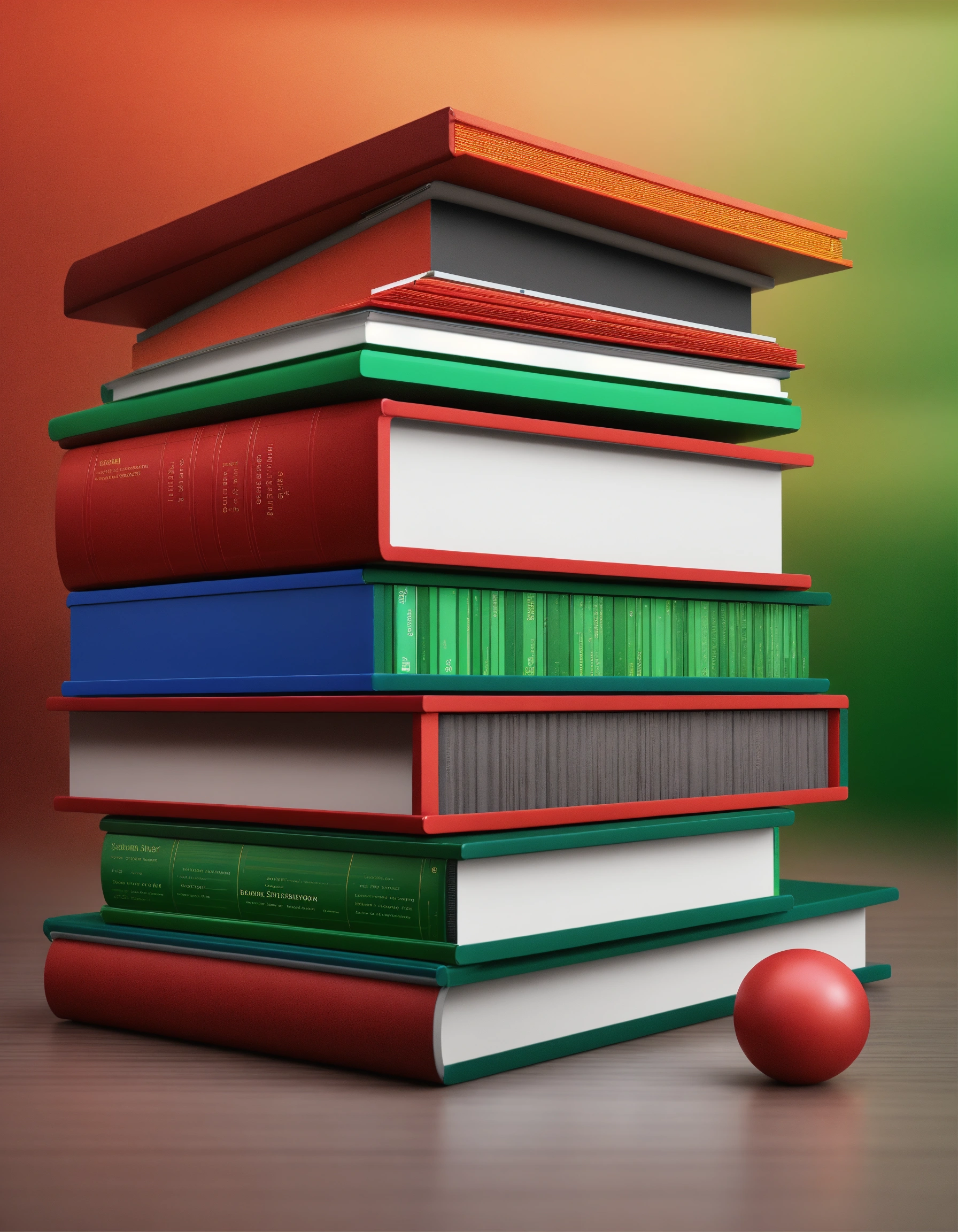 Books with a color palette that denotes seriousness and professionalism, with red, green and white tones and that is organized in a balanced and harmonious way with a subtle shading effect in the background to give it depth and dimension. modern and professional design attractive for adults interested in learning graphics. color palette that denotes seriousness and professionalism, such as blue, gray and white tones, accents in more vibrant colors to highlight graphics software on a computer screen. organized in a balanced and harmonious way. subtle shading effect to the background to give it depth and dimension.