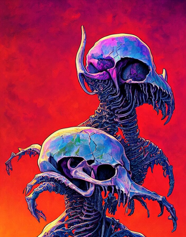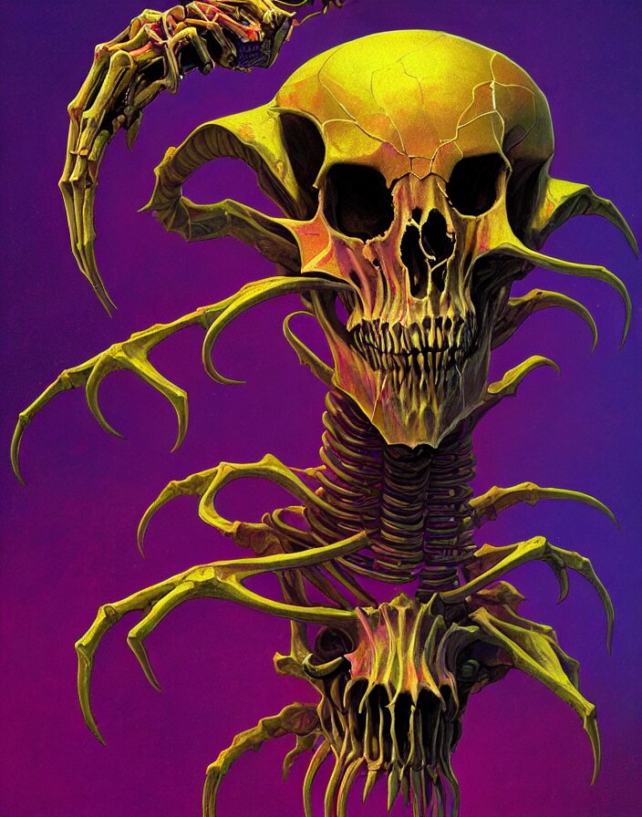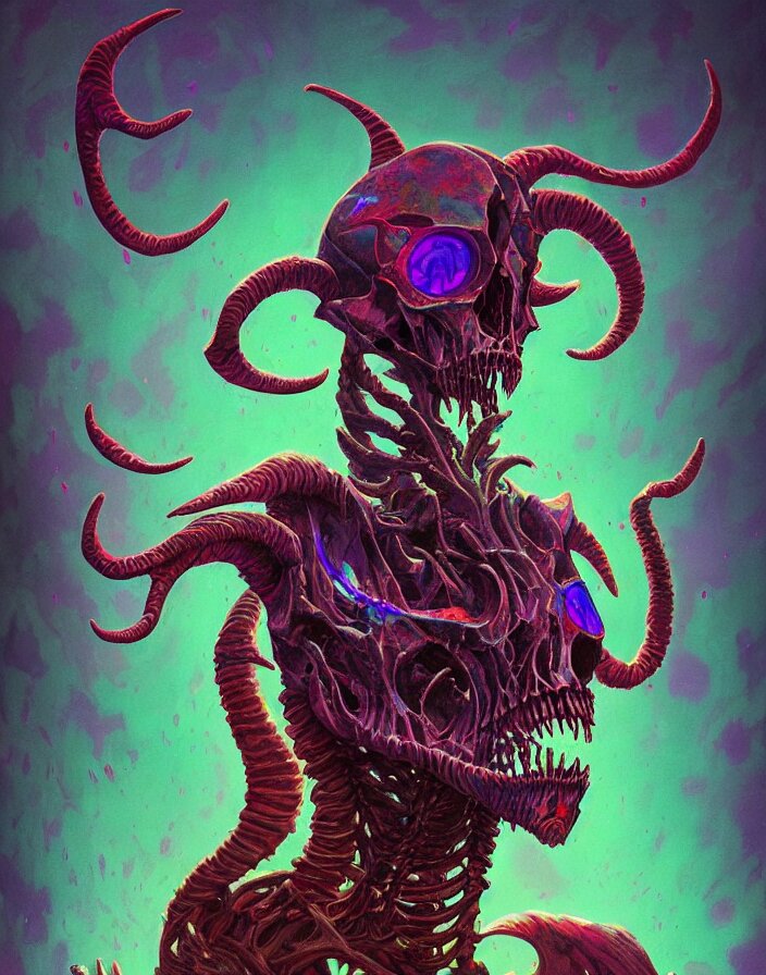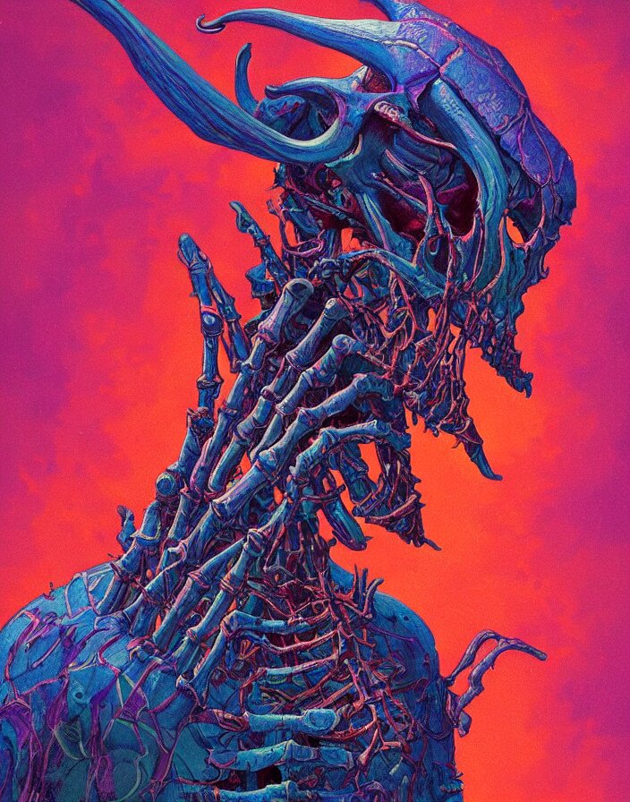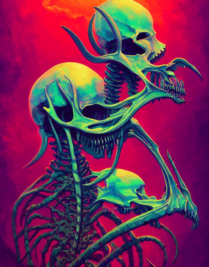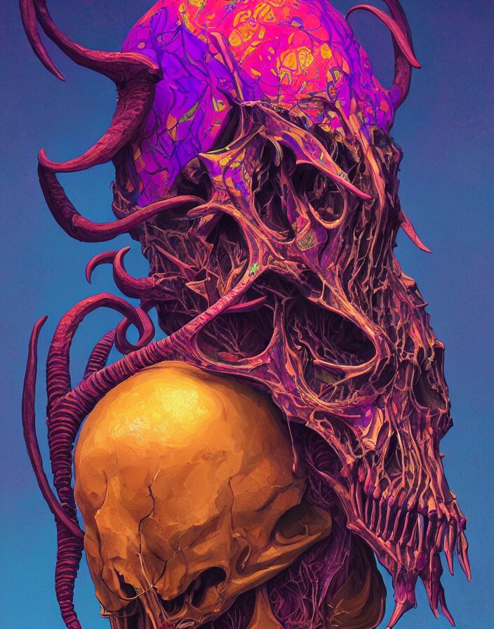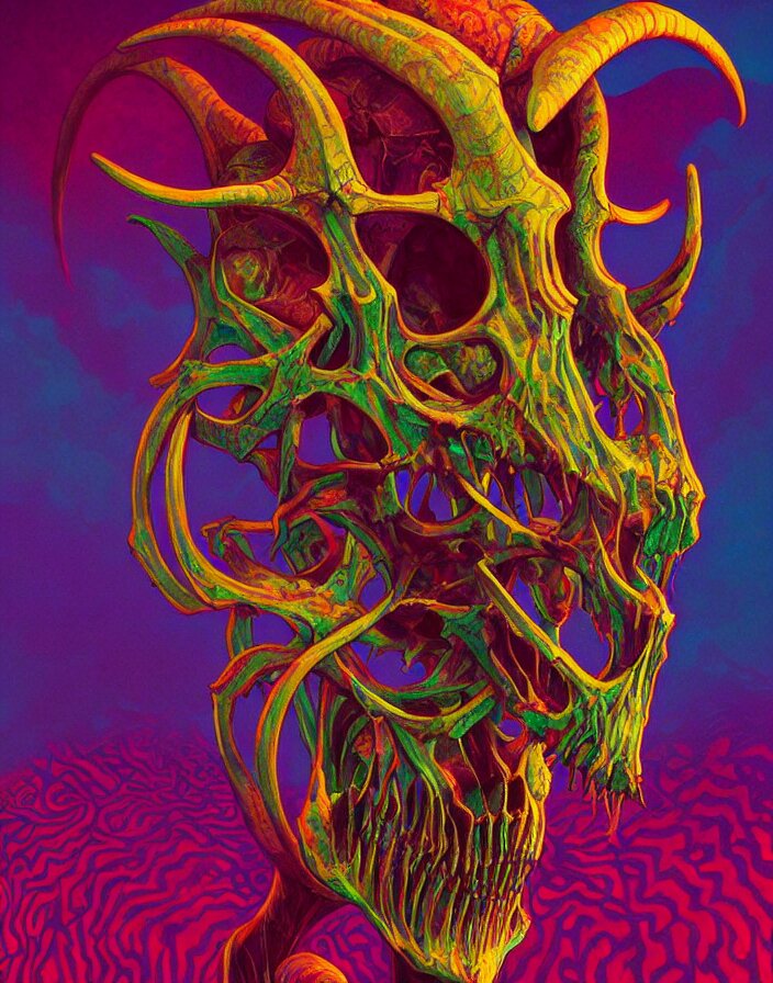 A psychedelic portrait of omin dran skeletal mind flayer psion goat skull politician, vibrant color scheme, highly detailed, in the style of romanticism, cinematic, artstation, moebius, greg rutkowski