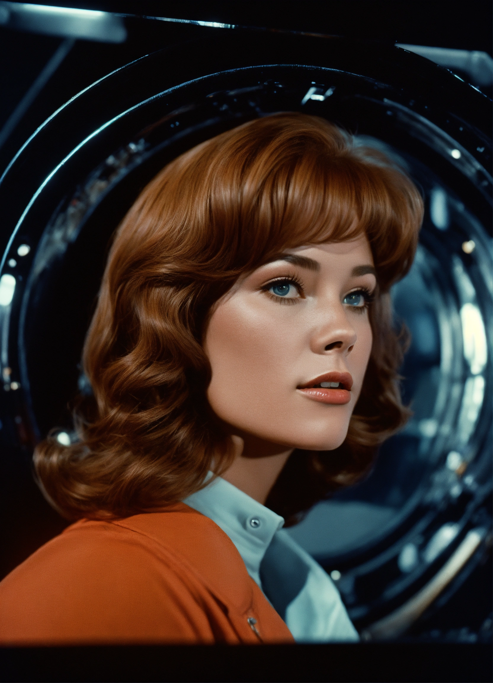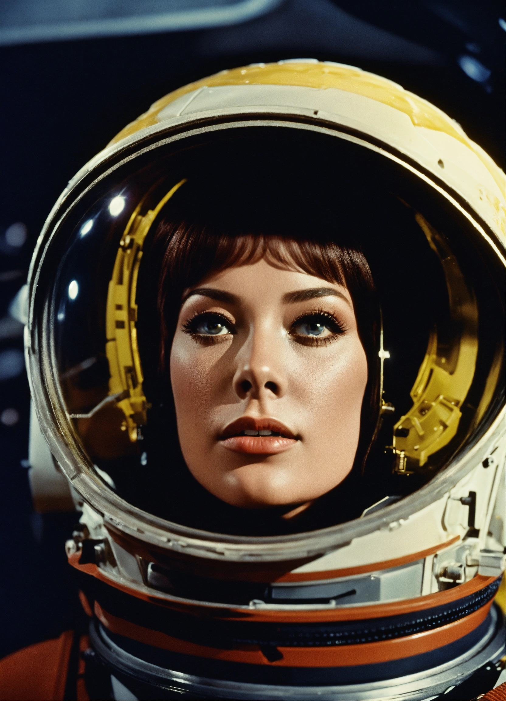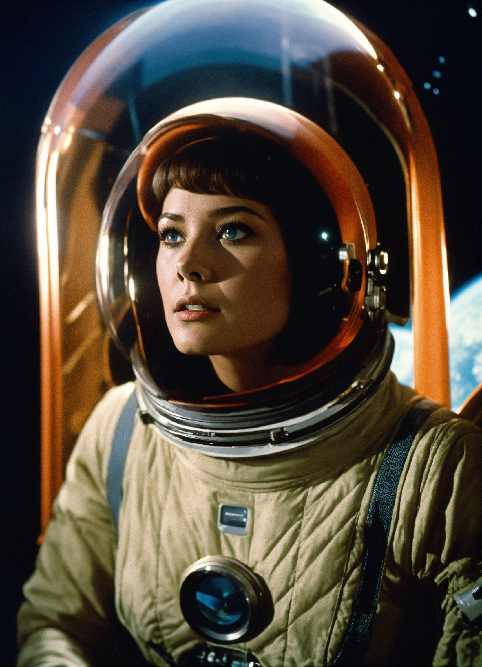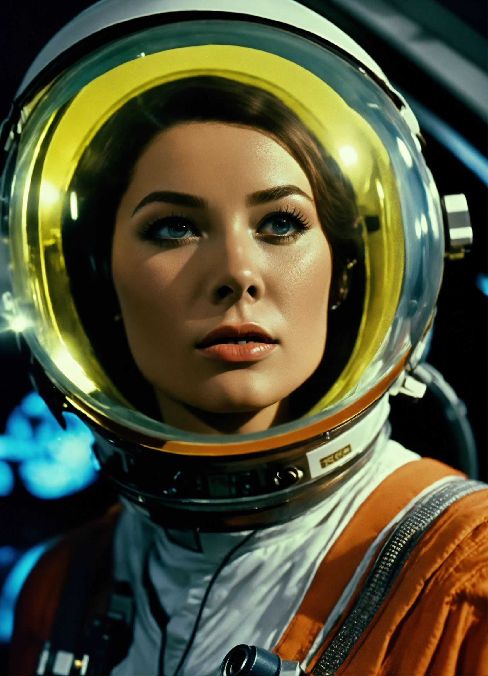 Woman 1963 sci fi movie in space shuttle, stunning cinematography, hyper detailed, anamorphic lenses, kodak color film, directed by fred m. wilcox