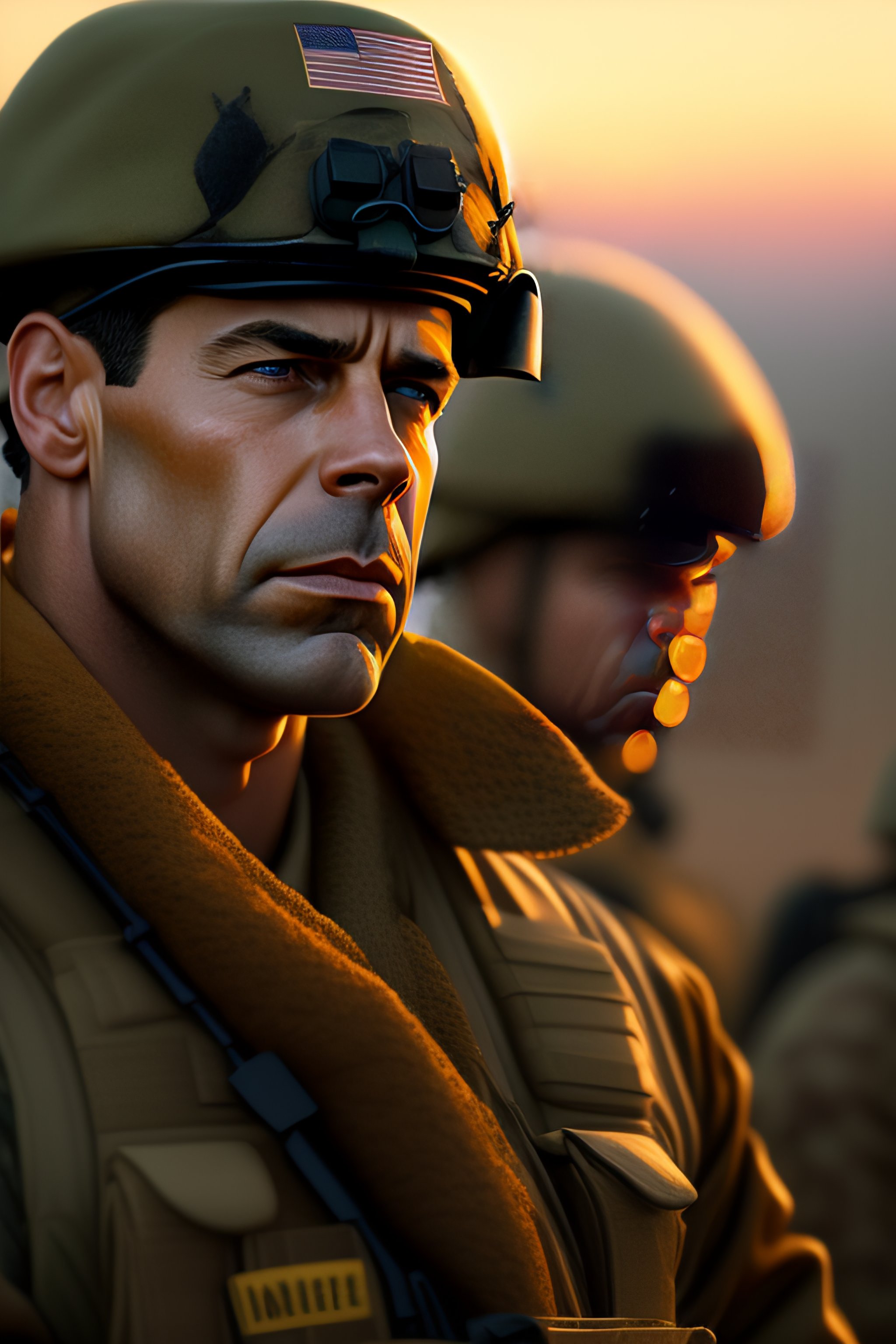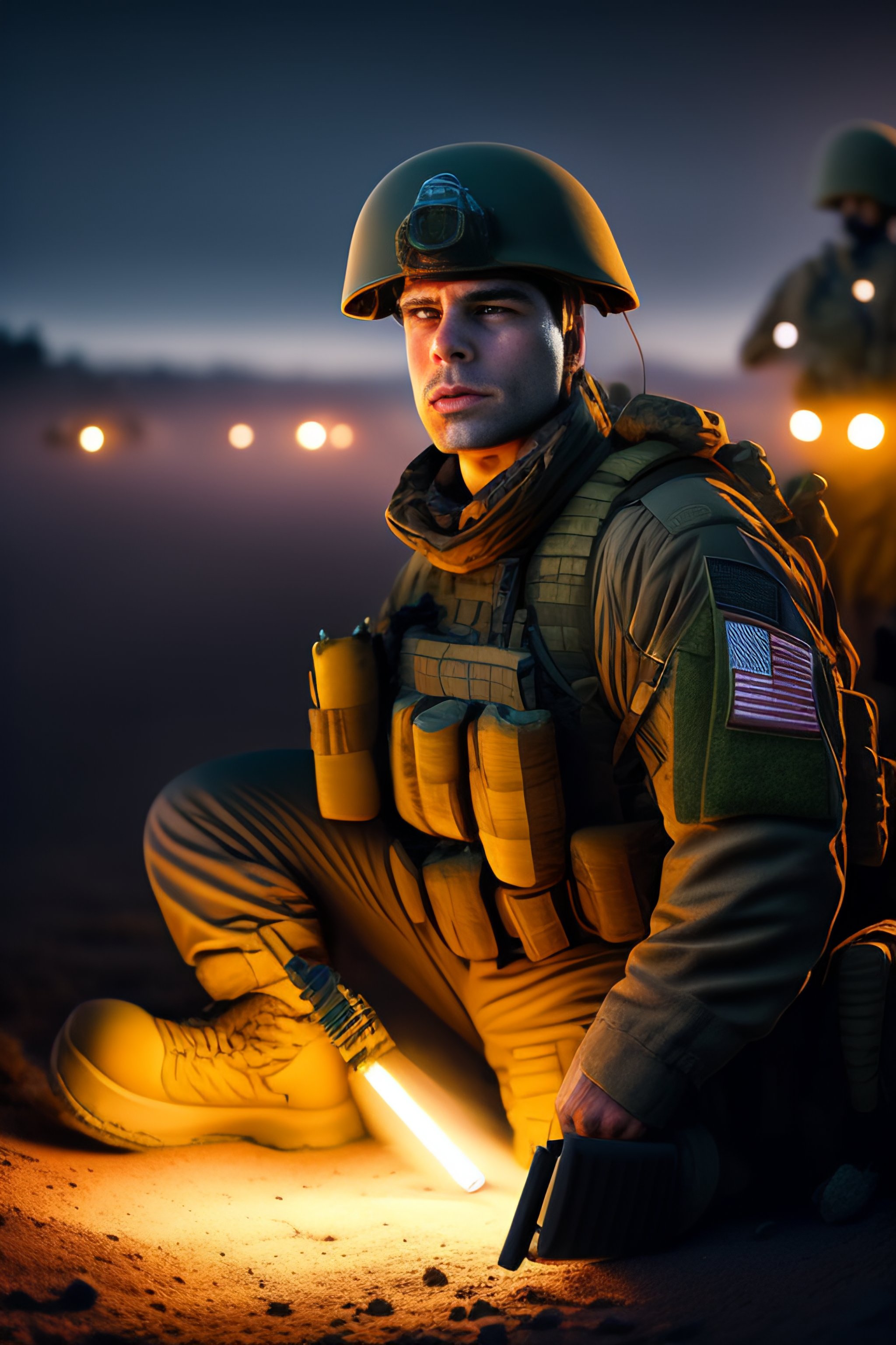 An exhausted homer simpson at the frontlines in the army at night with his platoon fighting, key lighting, soft lights, foggy, by steve hanks, by lisa yuskavage, by serov valentin, by tarkovsky, 8 k render, detailed, cute cartoon style, very cute adorable face
