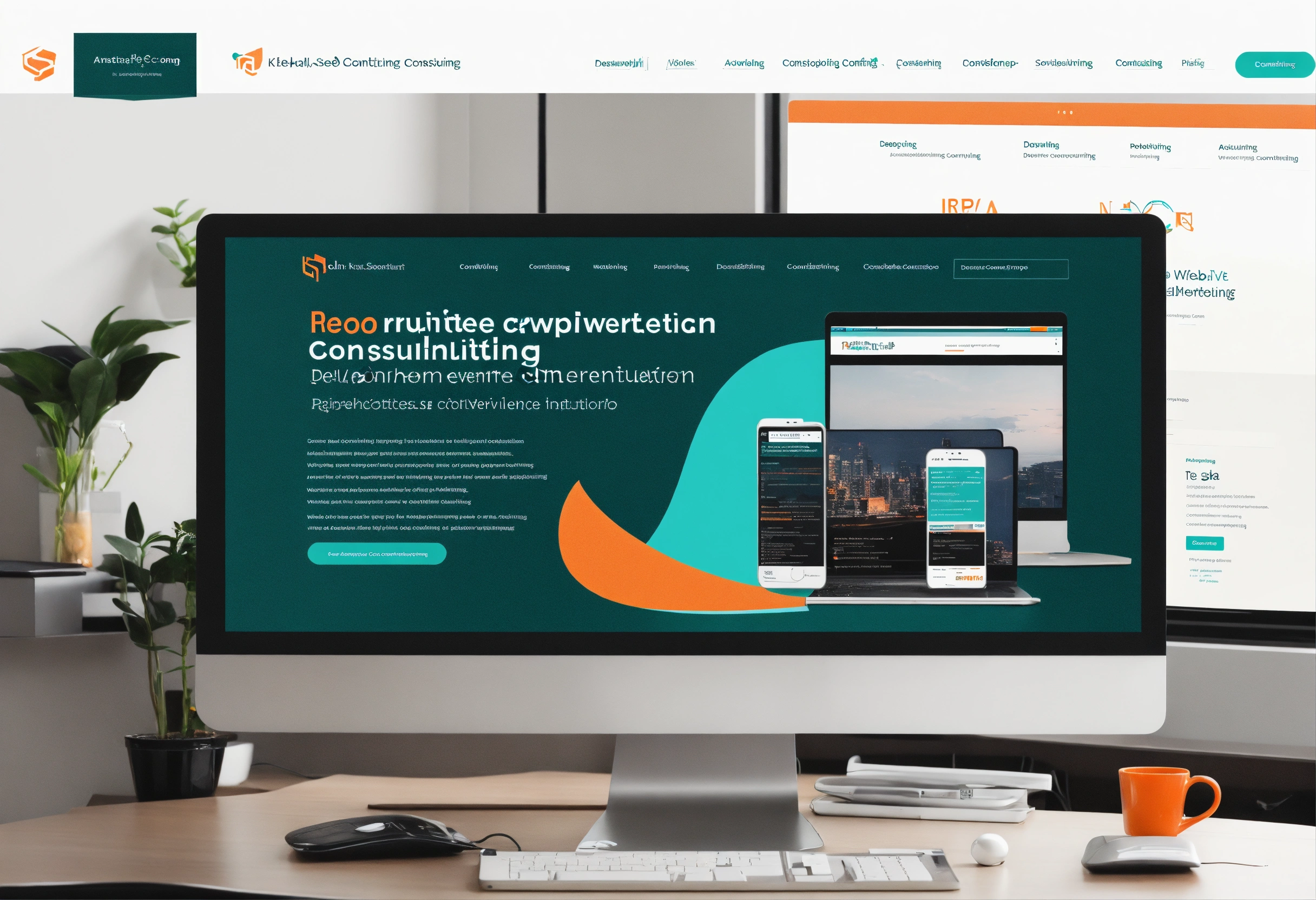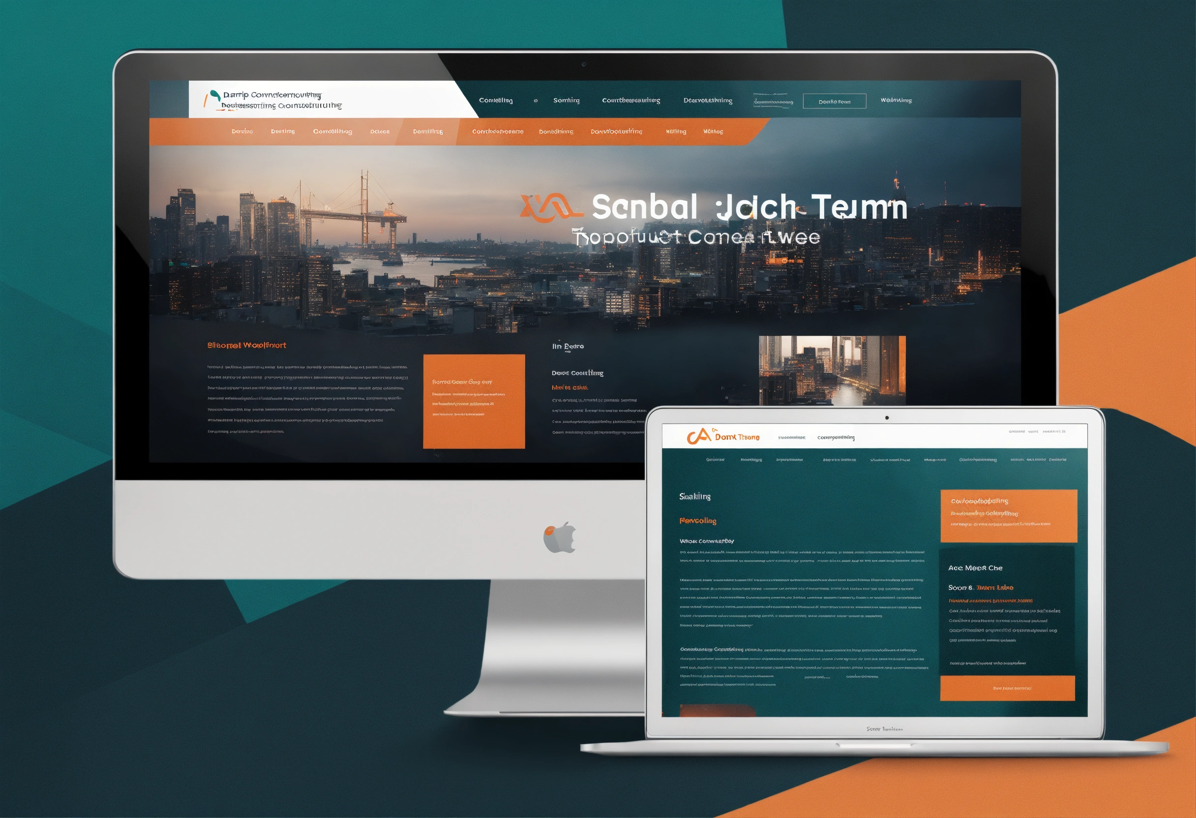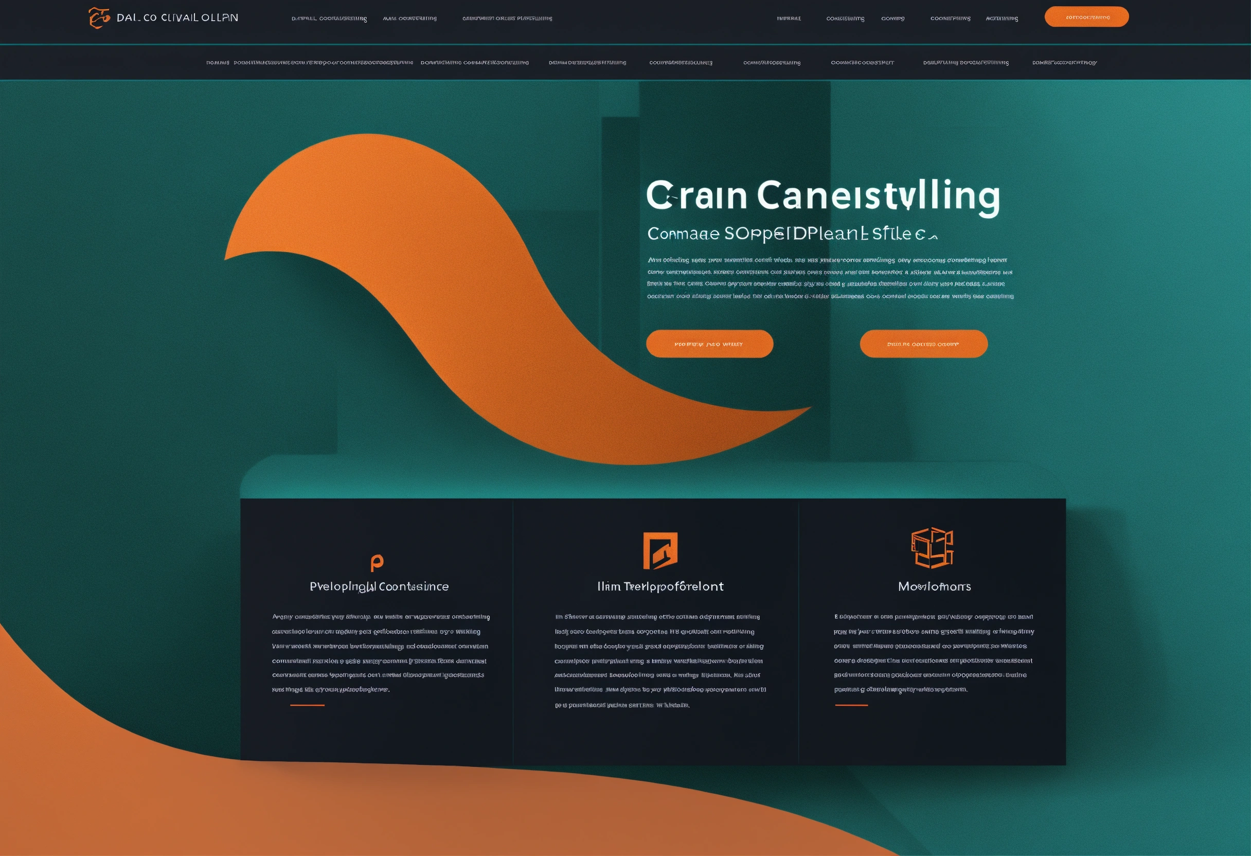 Simple, clean, modern software development consulting company website - in dark teal with orange accent