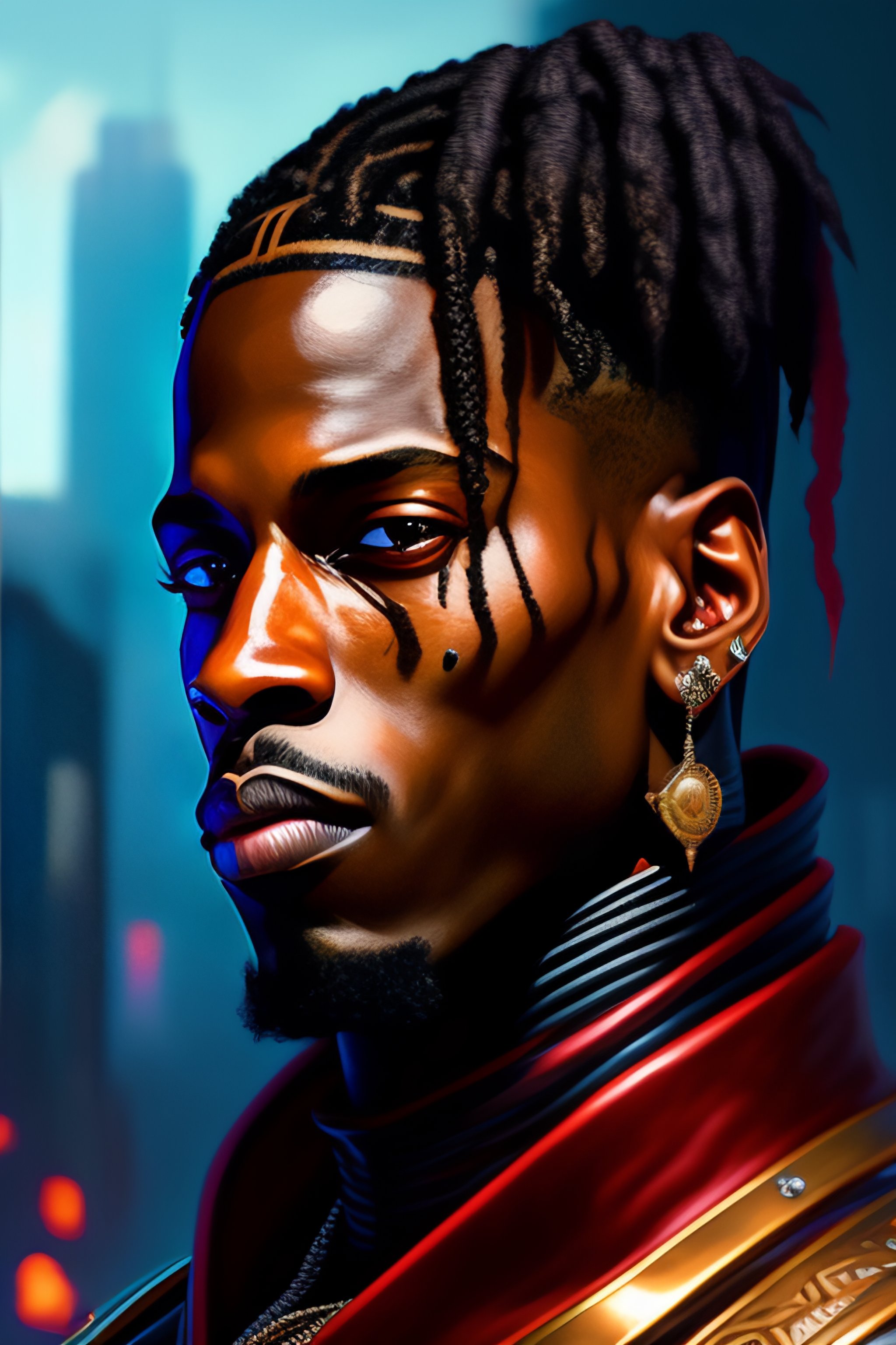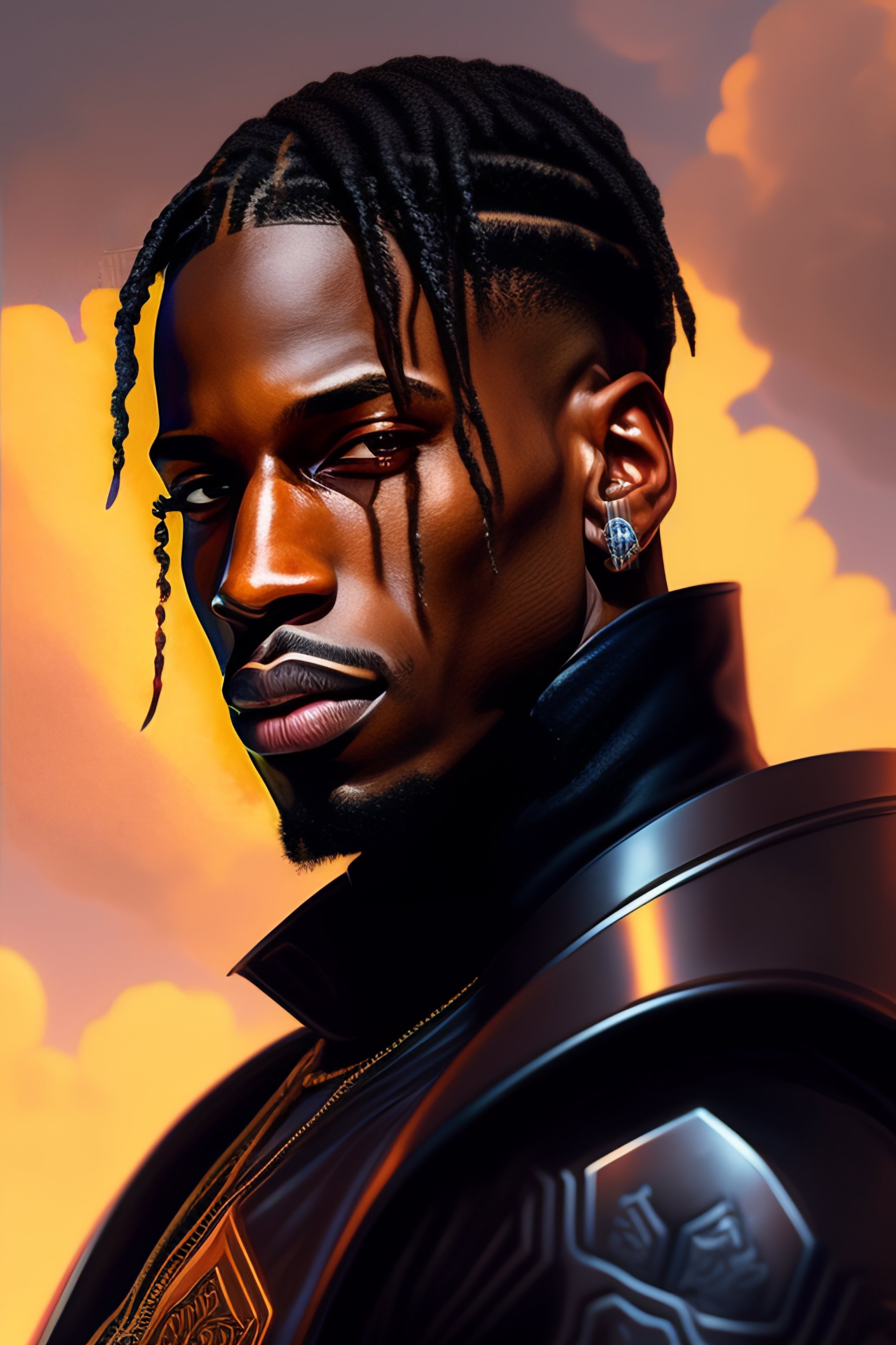 Pixel art of travis scott, looking angry, rusty armor, portrait, digital painting, artstation, concept art, beautiful face, symmetric face, cinematic, videogame cover art, by artgerm and greg rutkowski and alphonse mucha