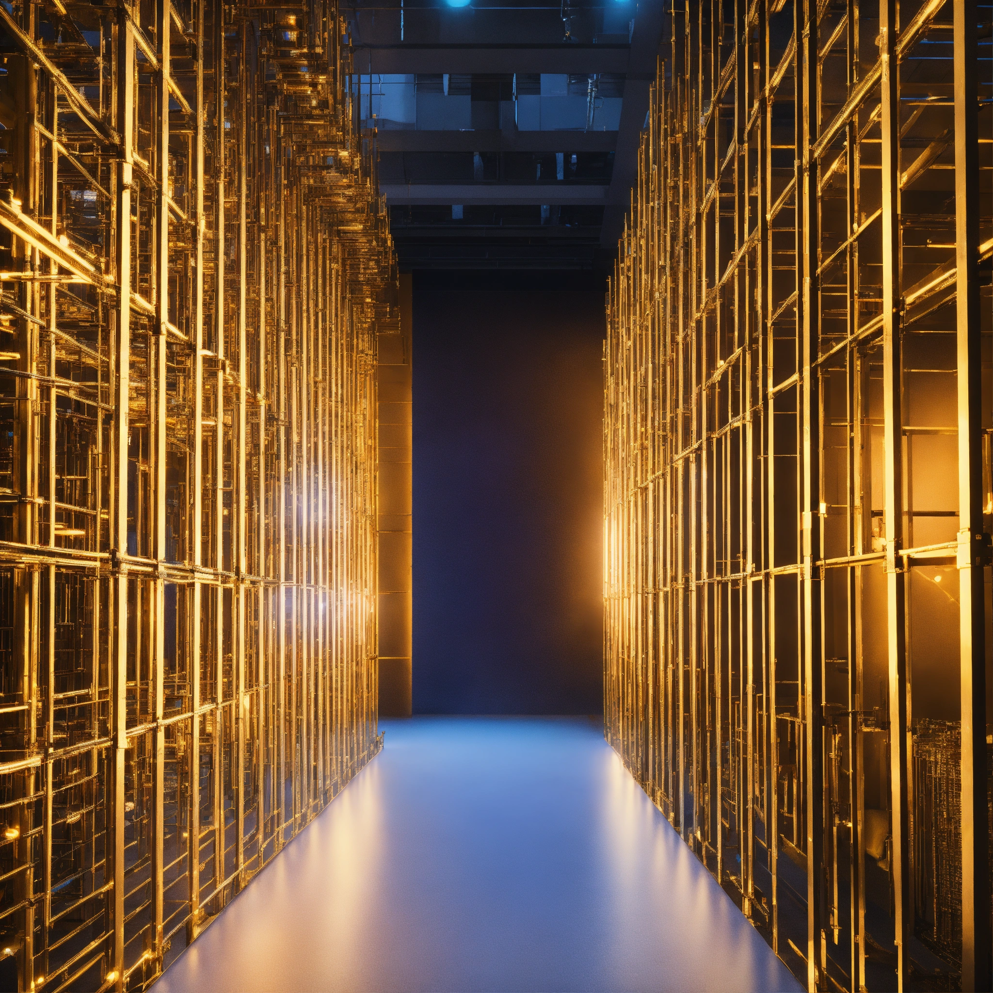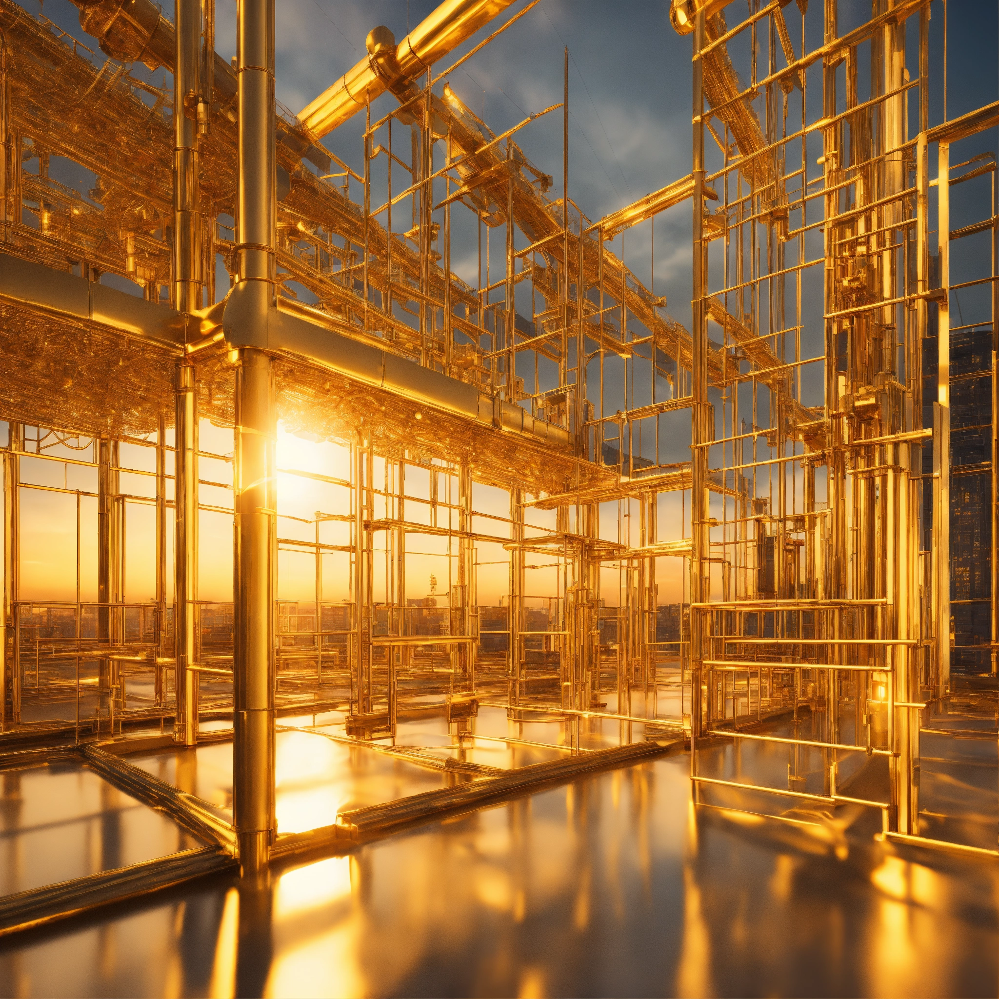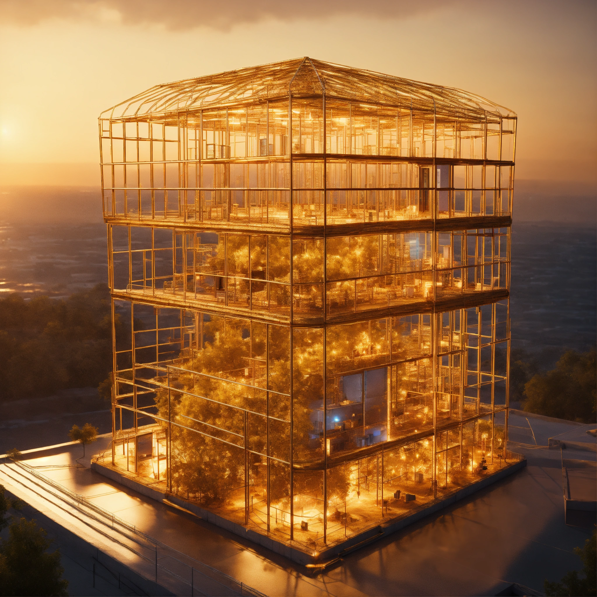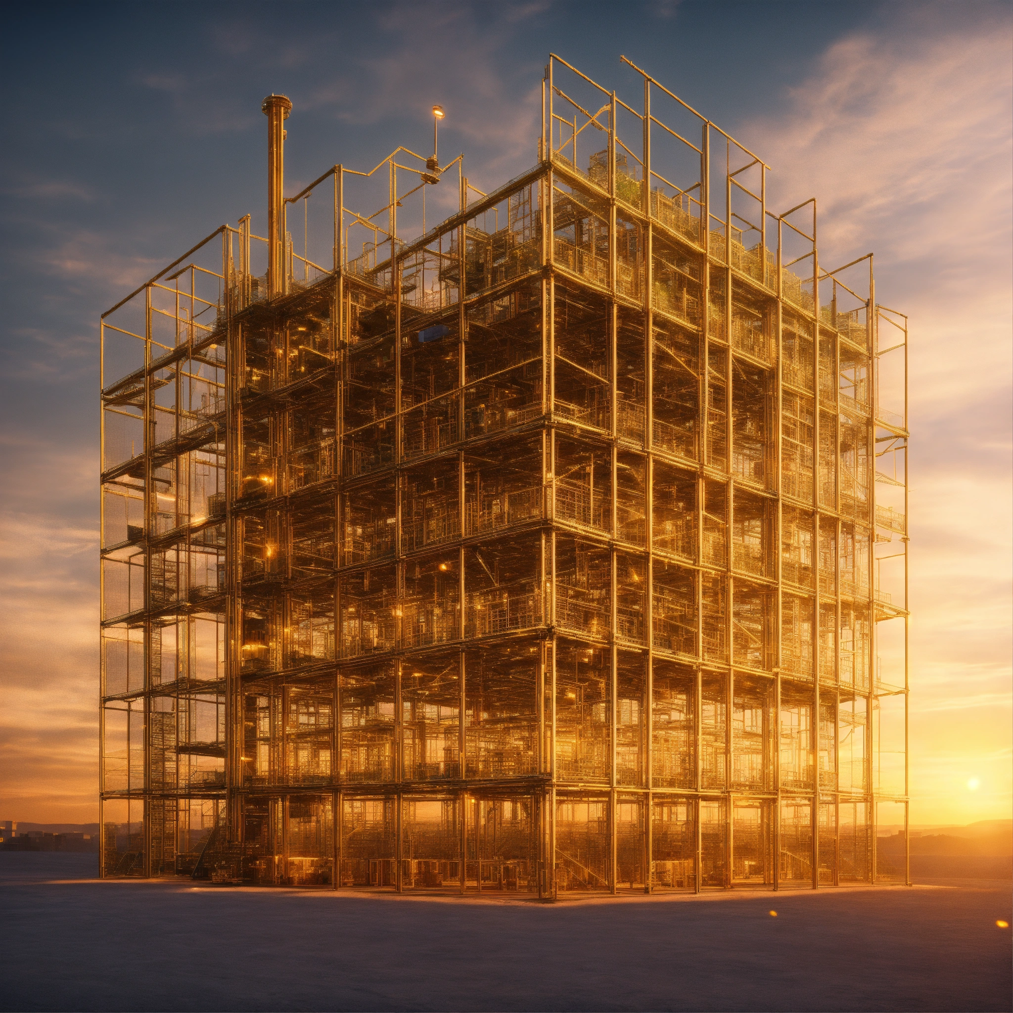 Ultra realistic в взphoto of a very high tech 3d software structure lit with golden hour light