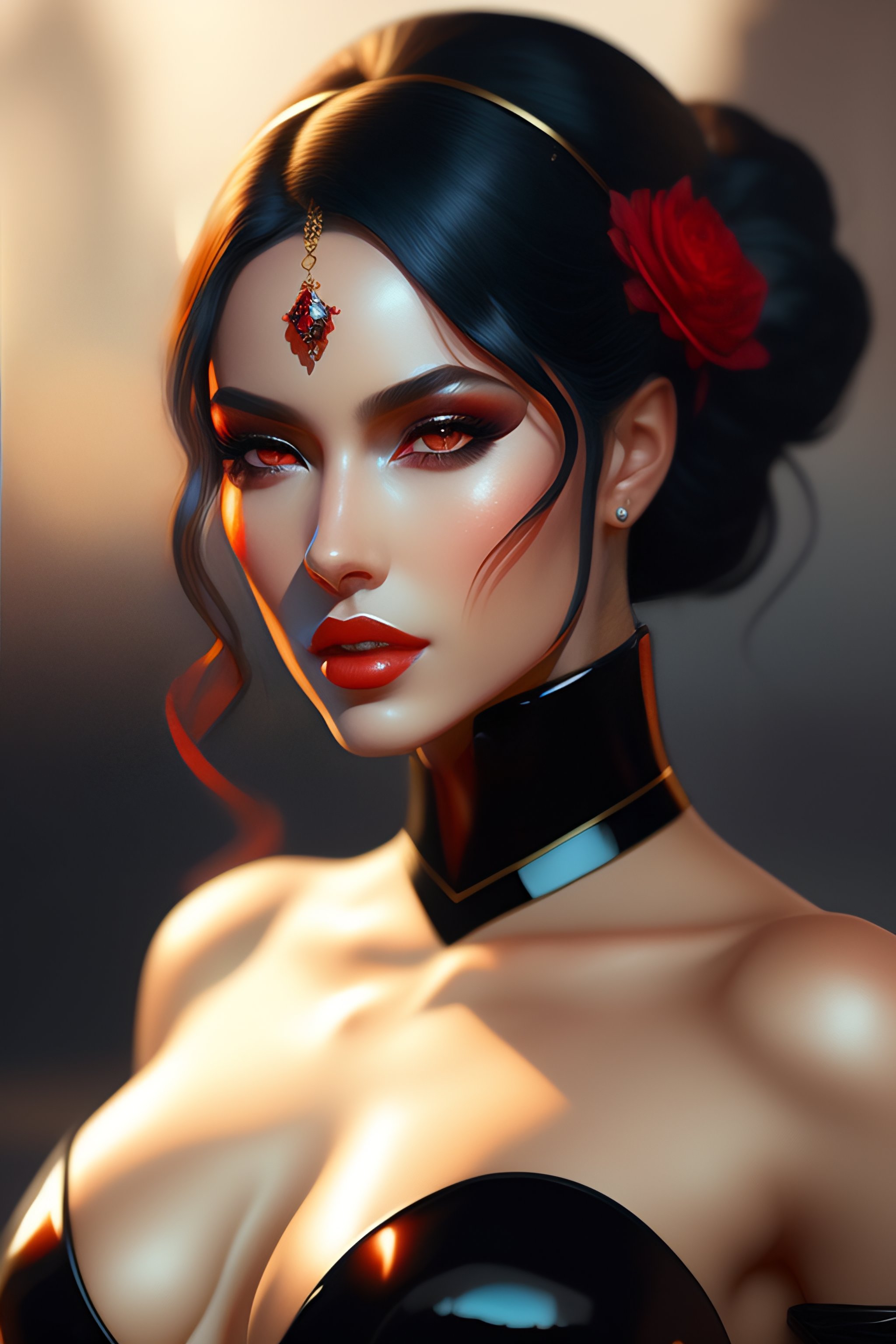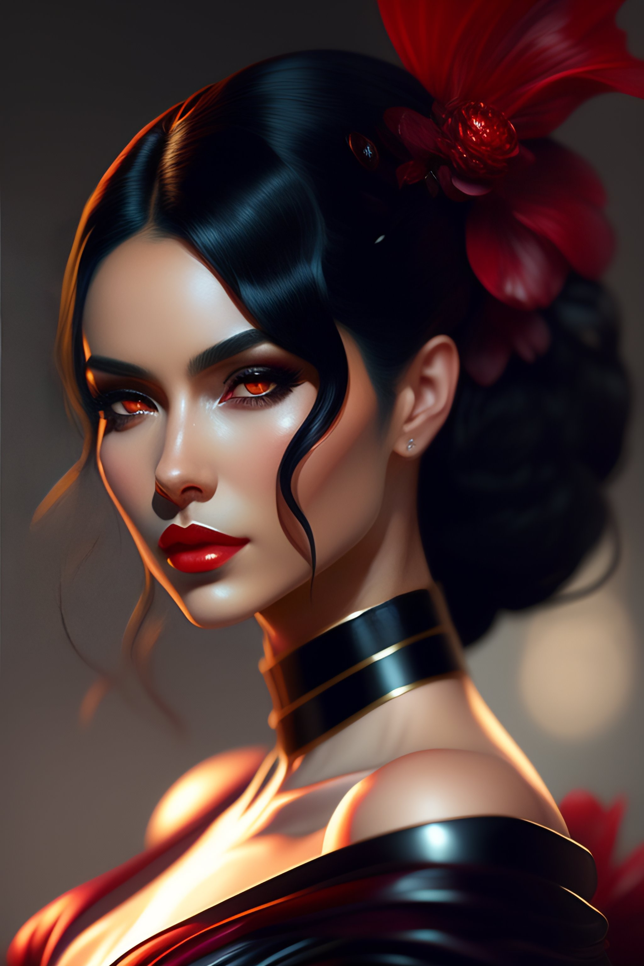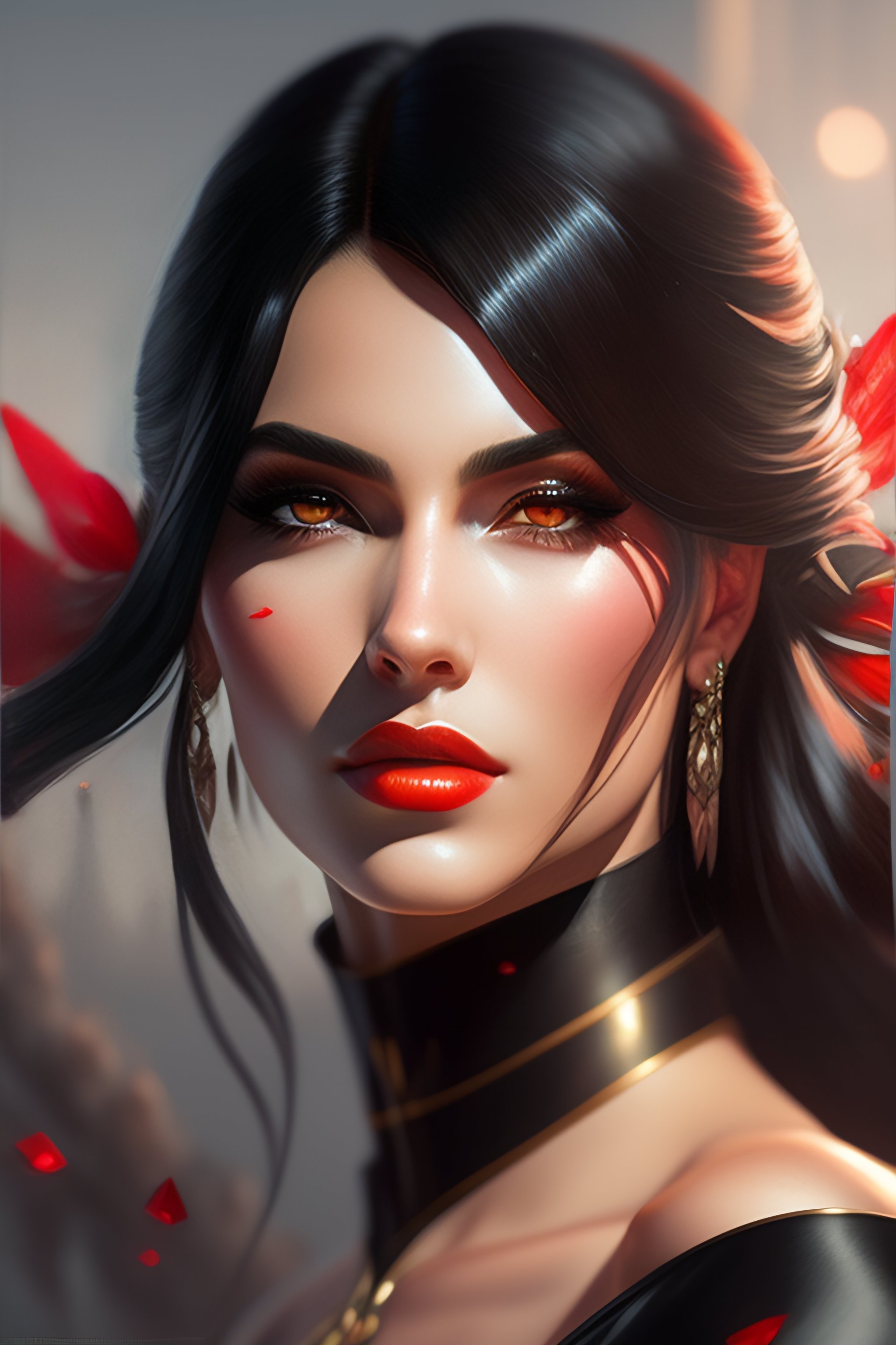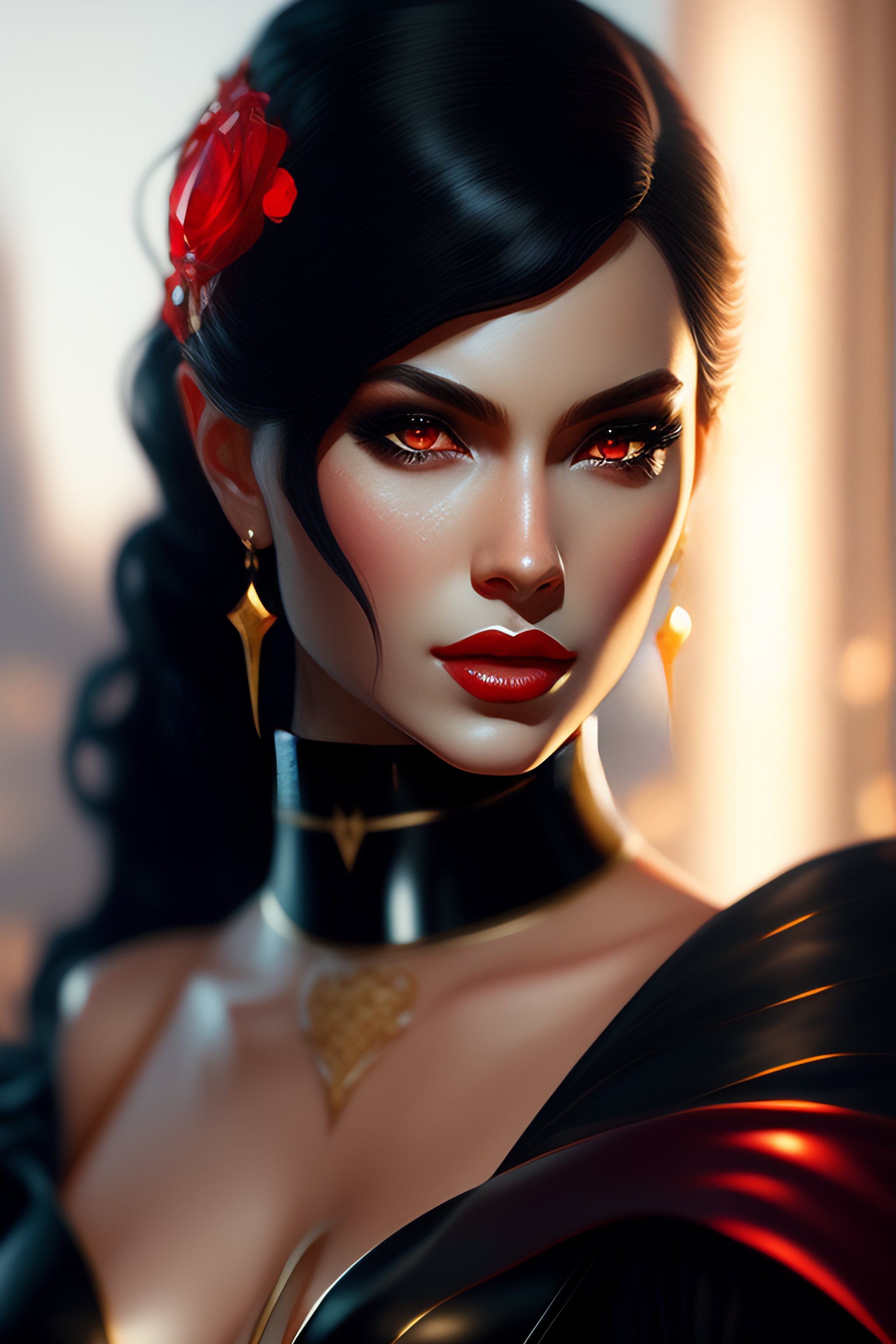 A photorealistic dramatic hyperrealistic, crystal red eyes vampire woman with black hair, black veil, elegant, striking, by wlop, artgerm, greg rutkowski, alphonse mucha, beautiful dynamic, shadows, artstation, concept design art, octane render, 8k, painting, watercolor