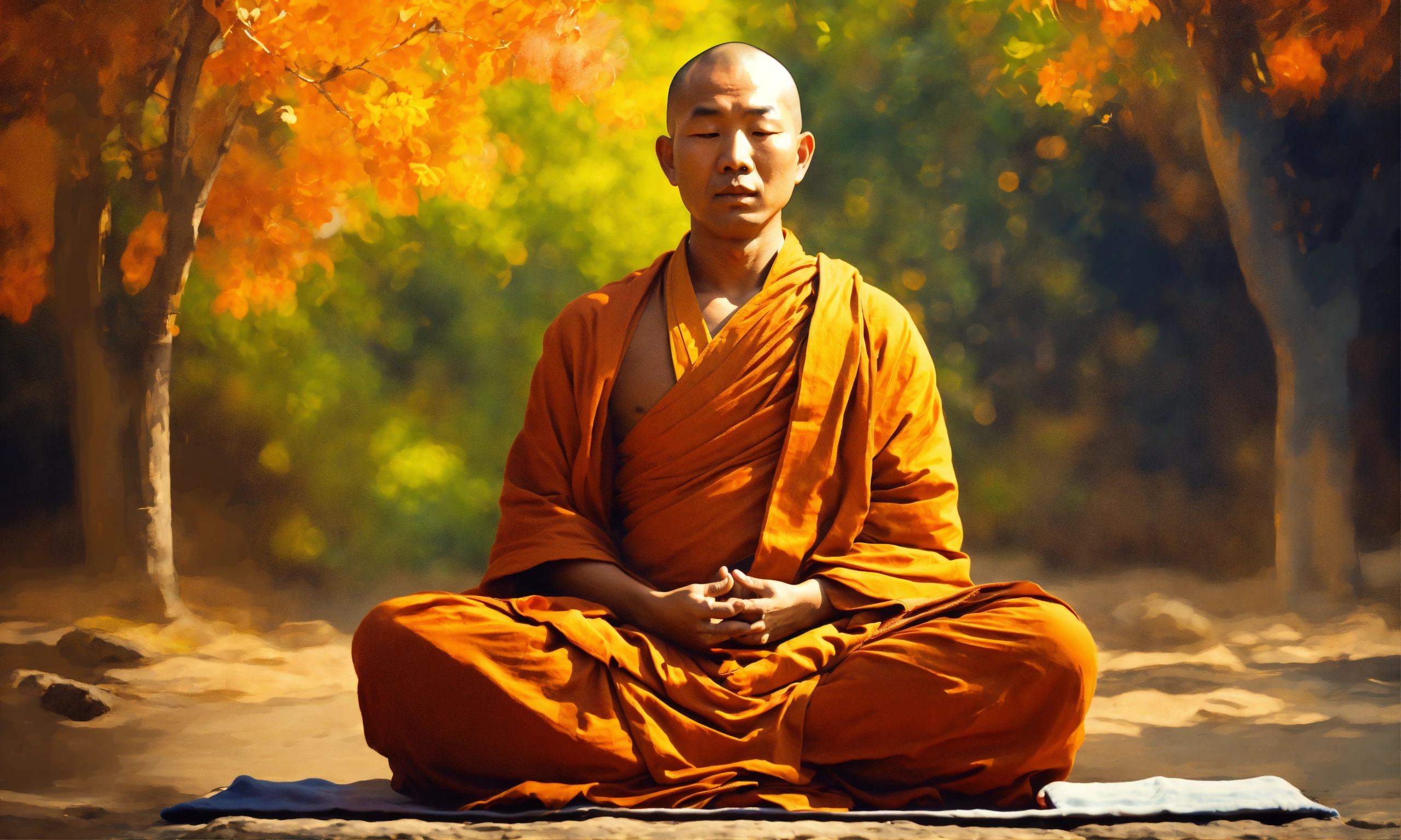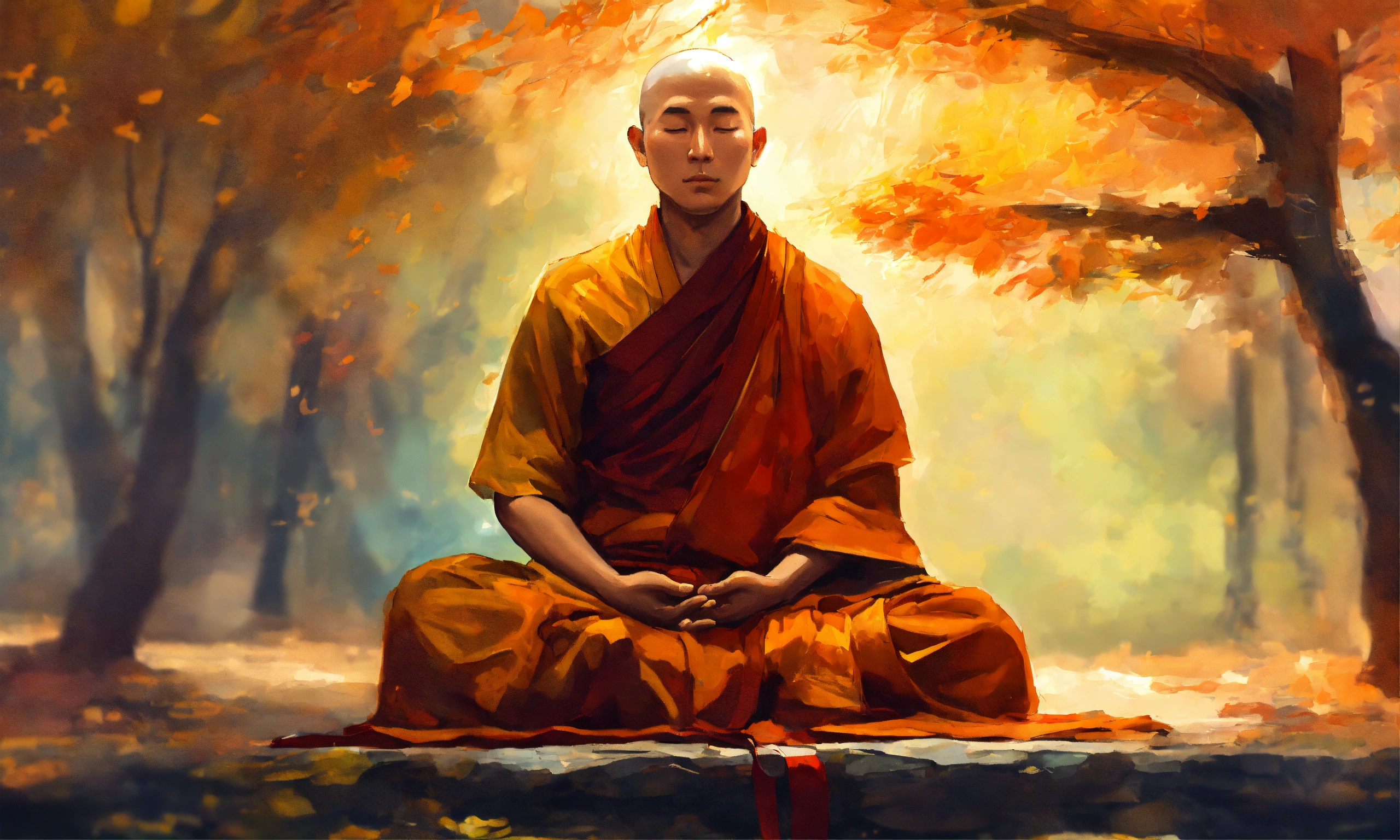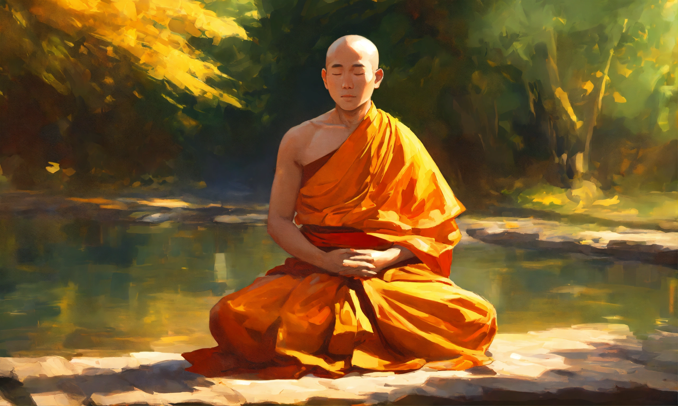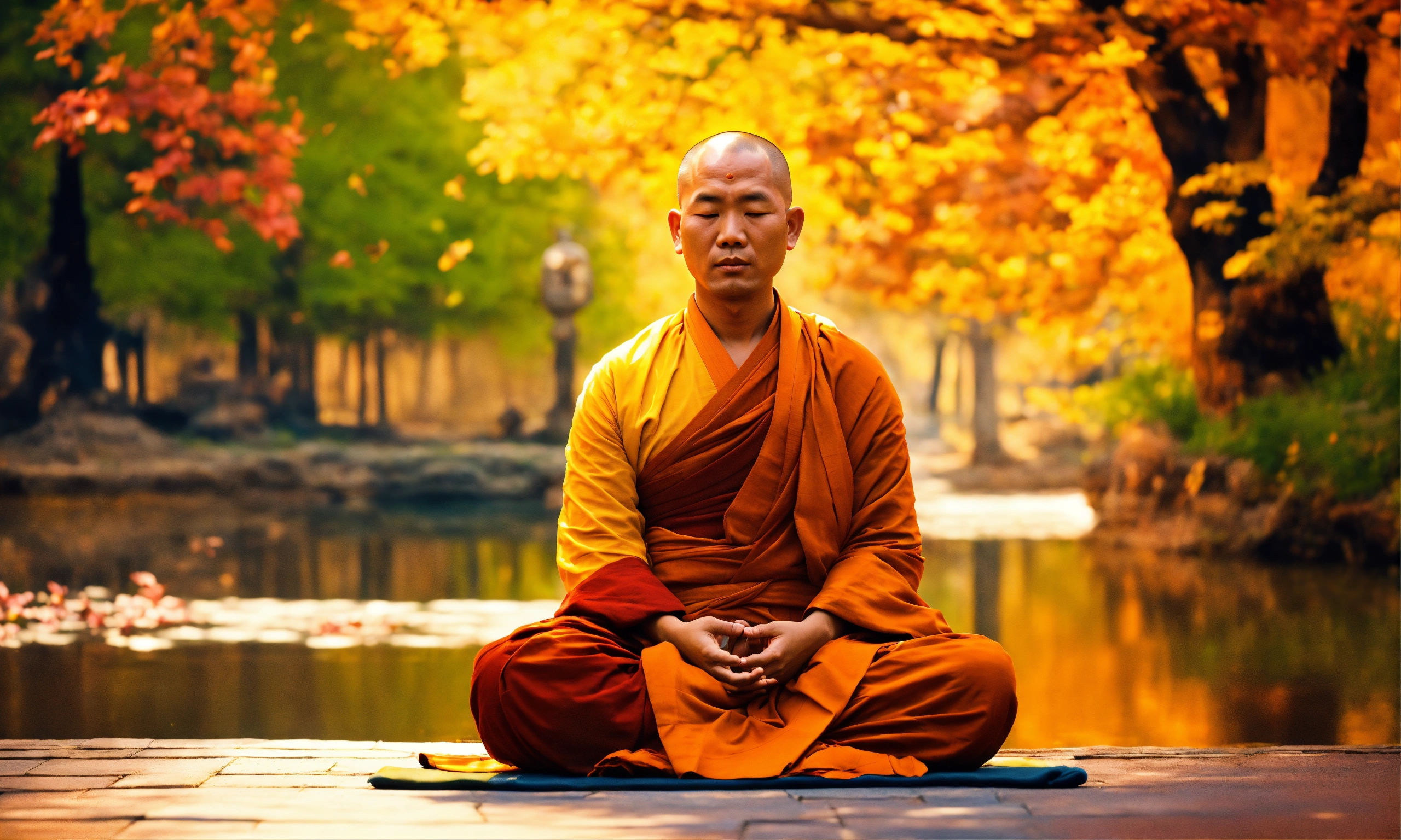 A peaceful buddhist monk doing meditation