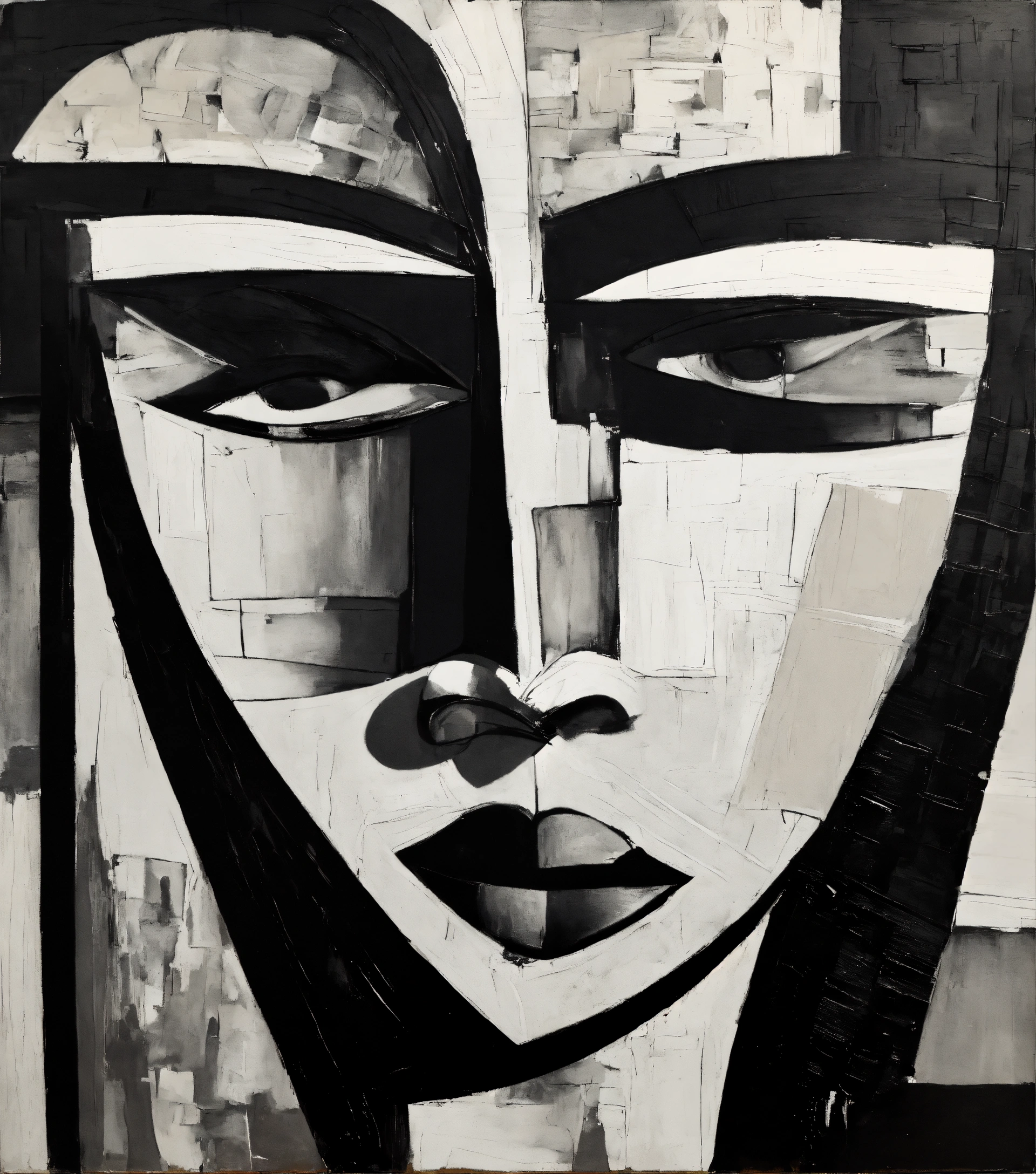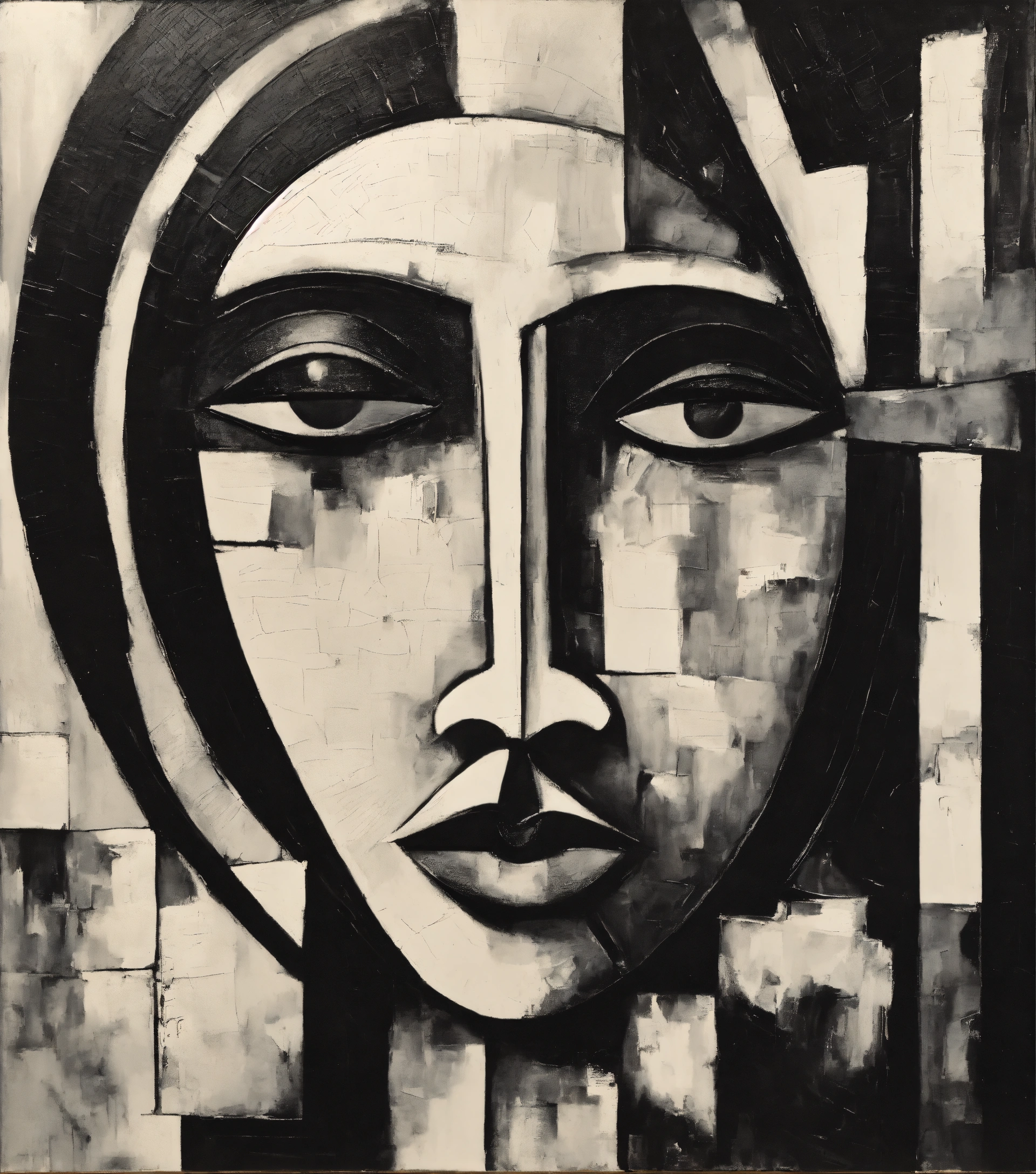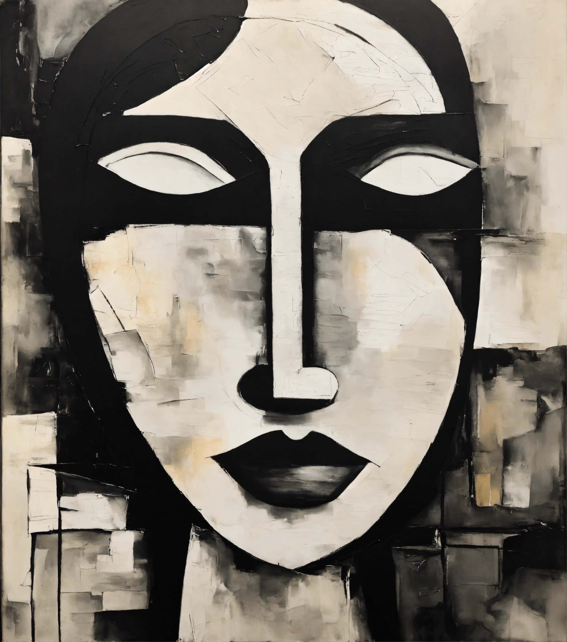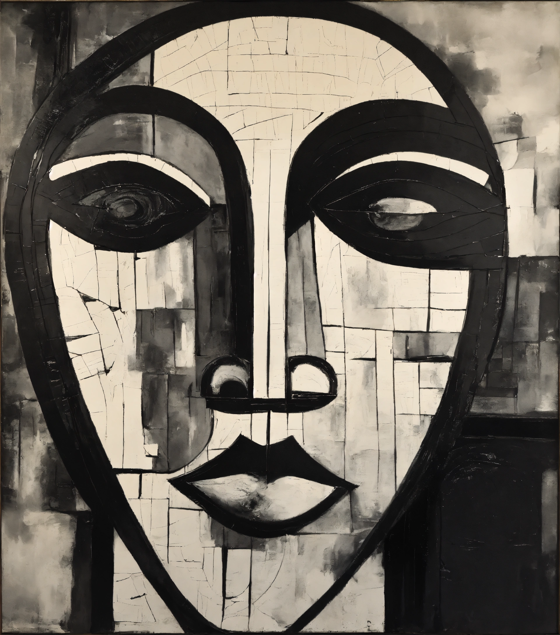 Abstract painting in black and white with texture of a face, cubism, morphie, tumblr, vintage 70s artist