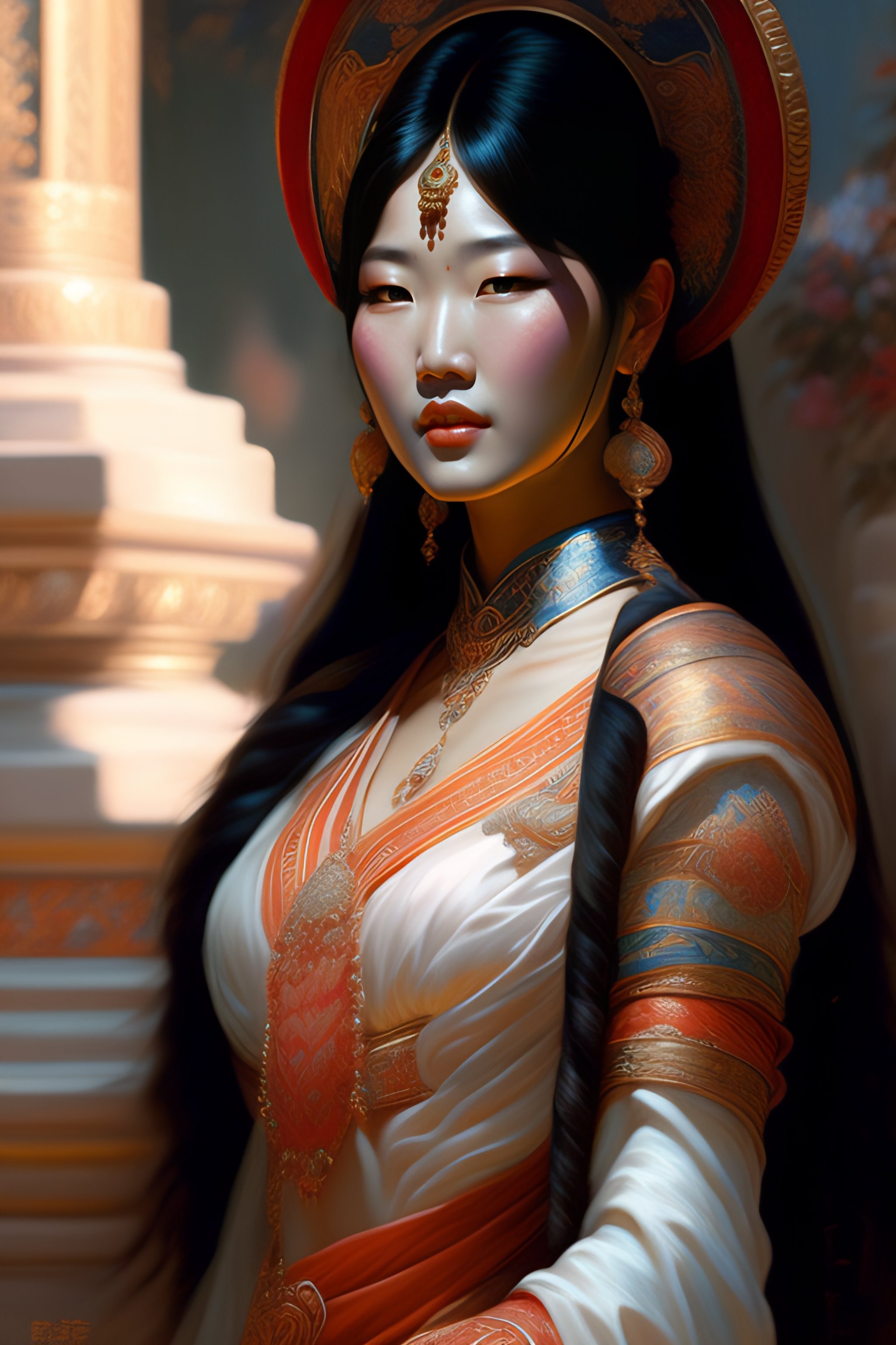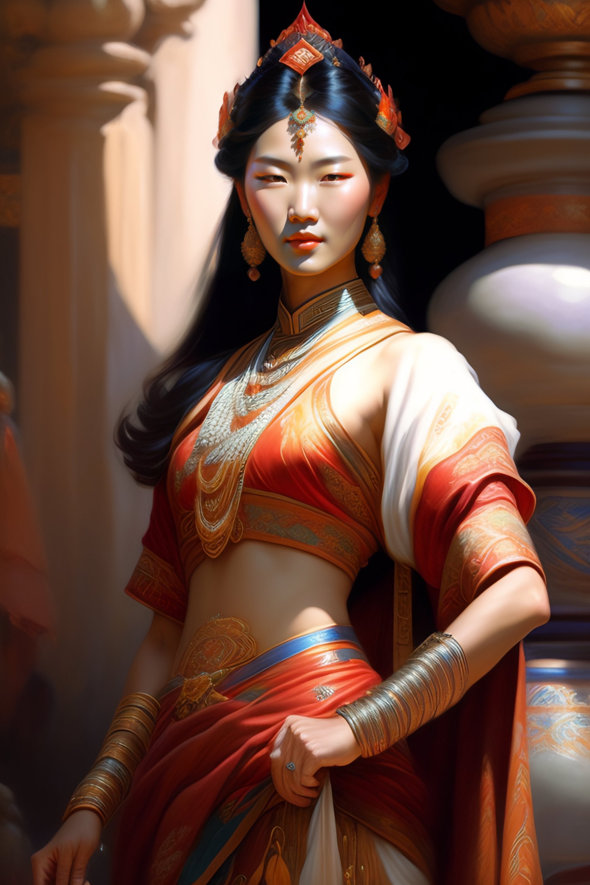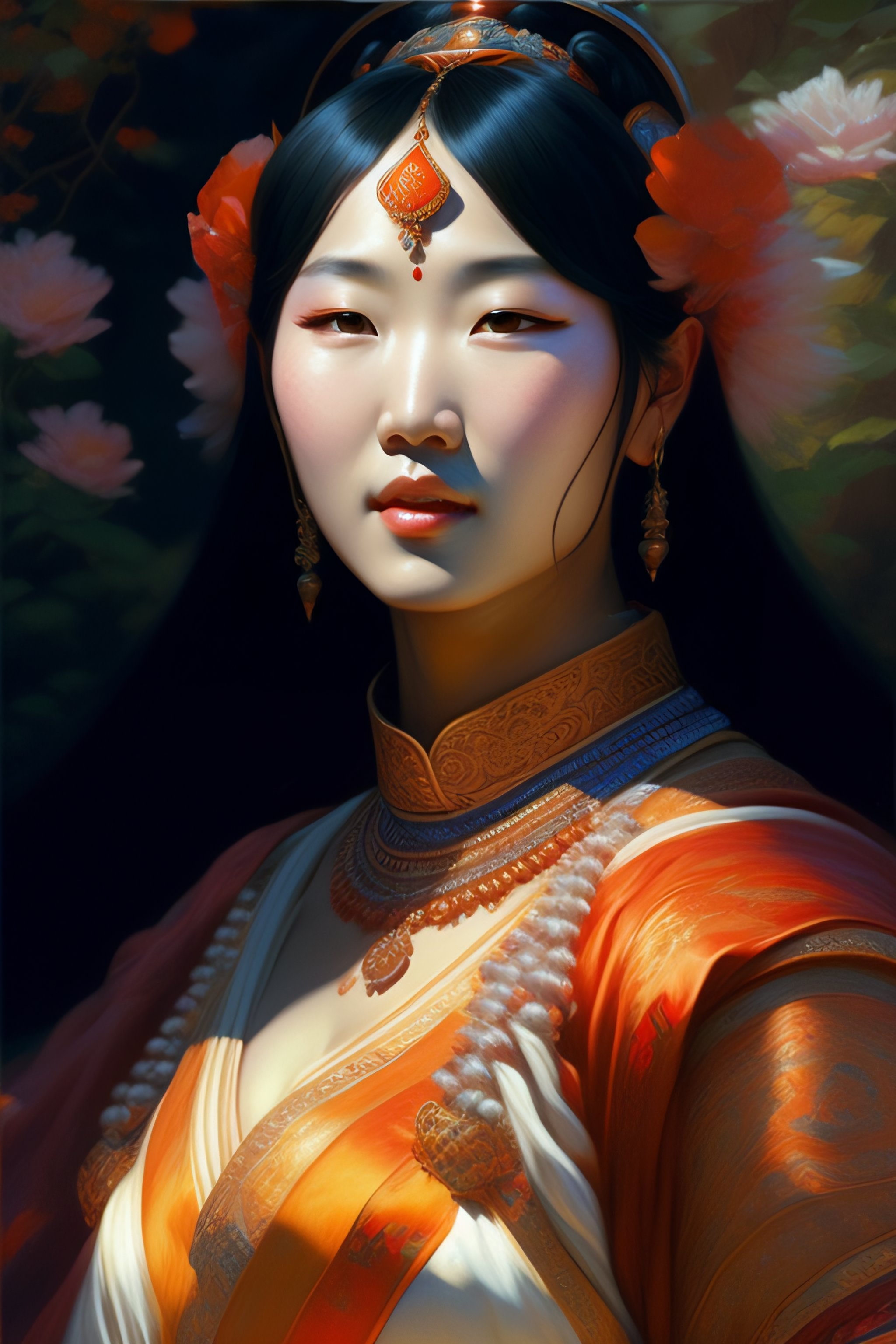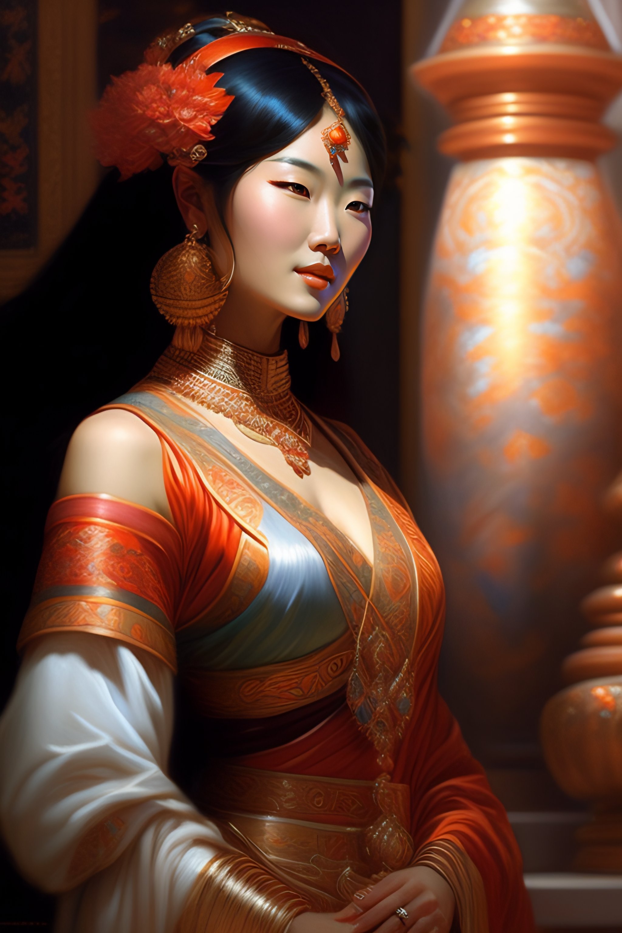 Detailed paint of korean goddess, highly detailed paiting by gaston bussiere, craig mullins, j.c. leyendecker, 8k, royal paiting, dynamic lighting