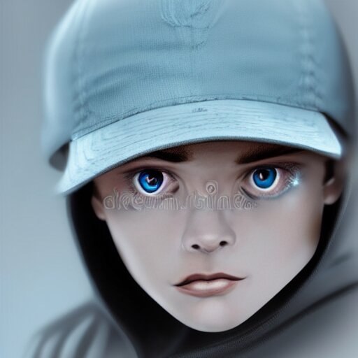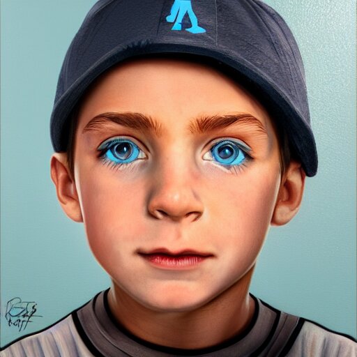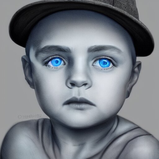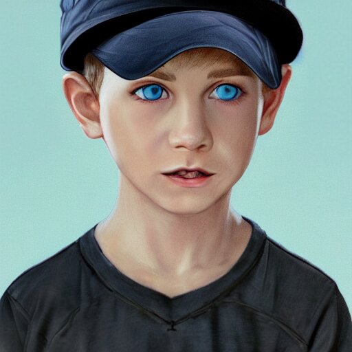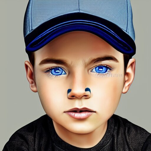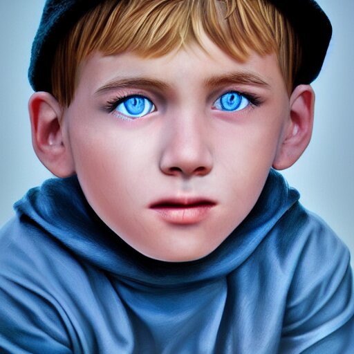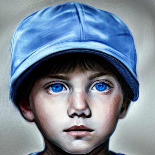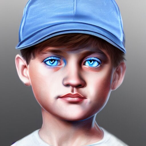 A detailed portrait of a boy with light blue eyes wearing a black cap, realistic and detailed eyes, art illustration, incredibly highly detailed and realistic, 8 k, sharp focus
