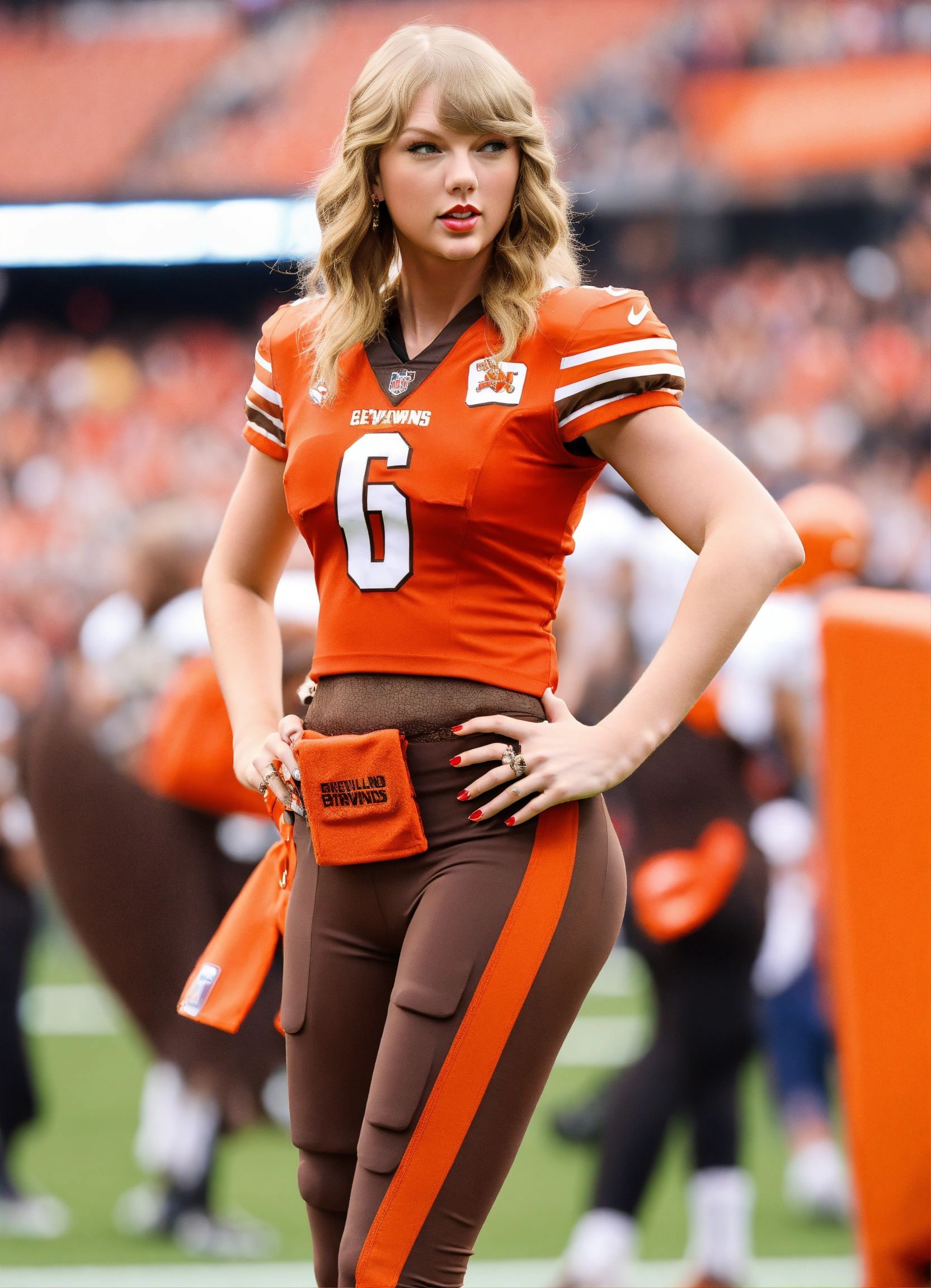Taylor swift in a cleveland browns uniform
