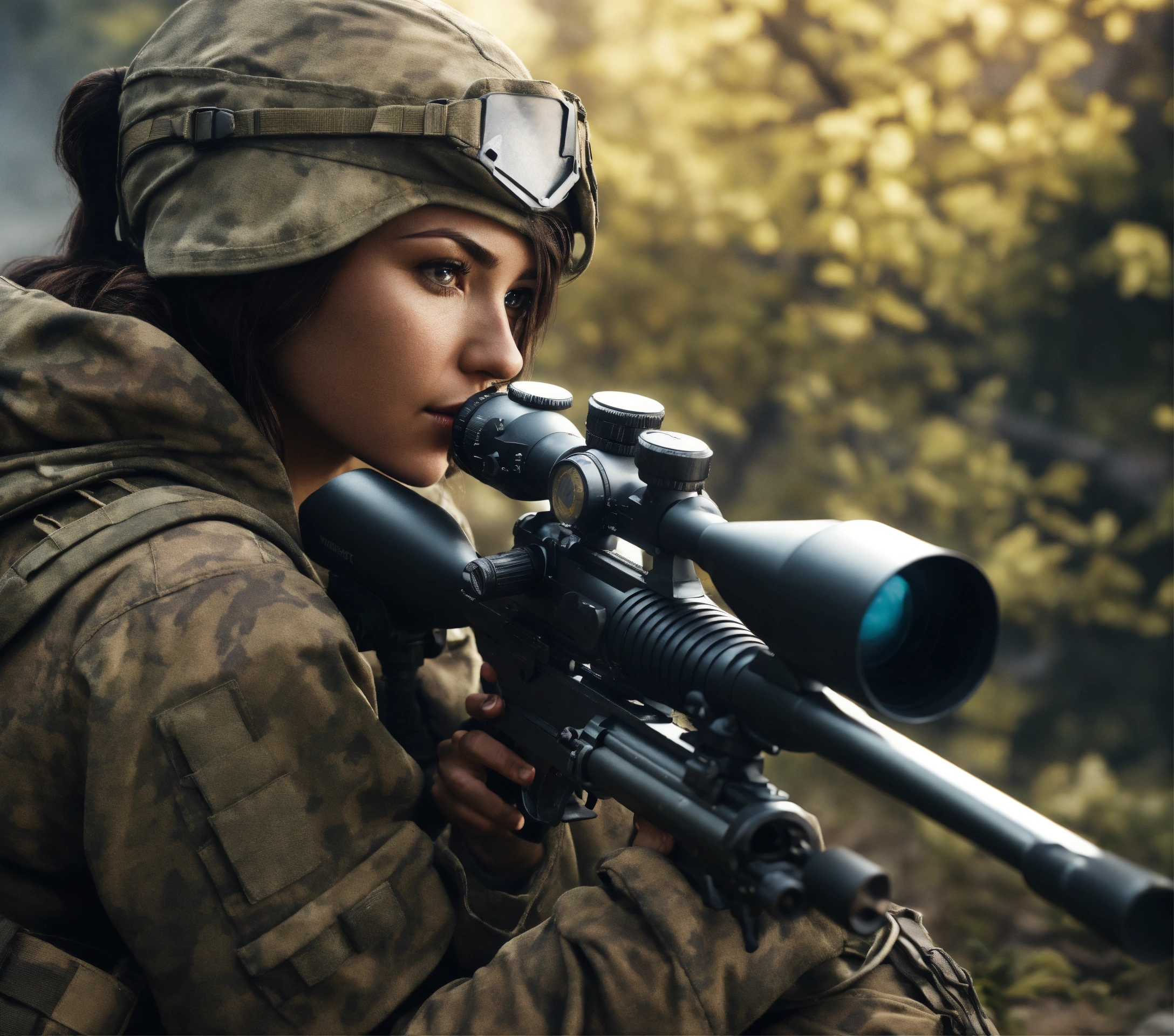 Female sniper hiding in worrest