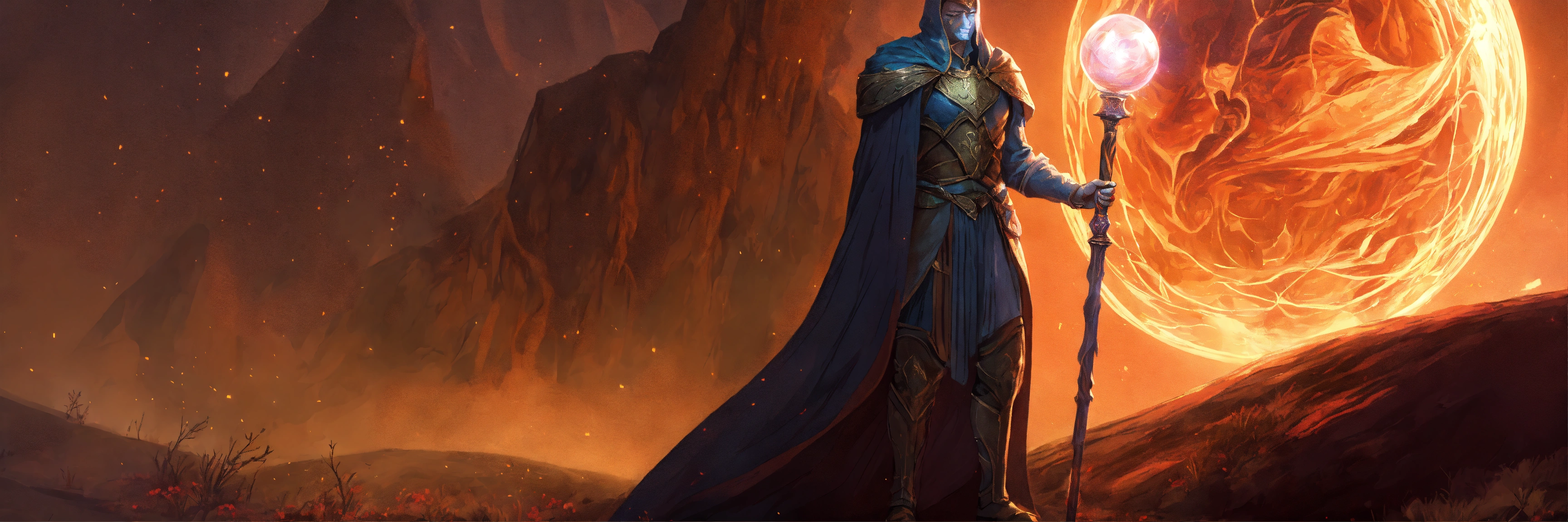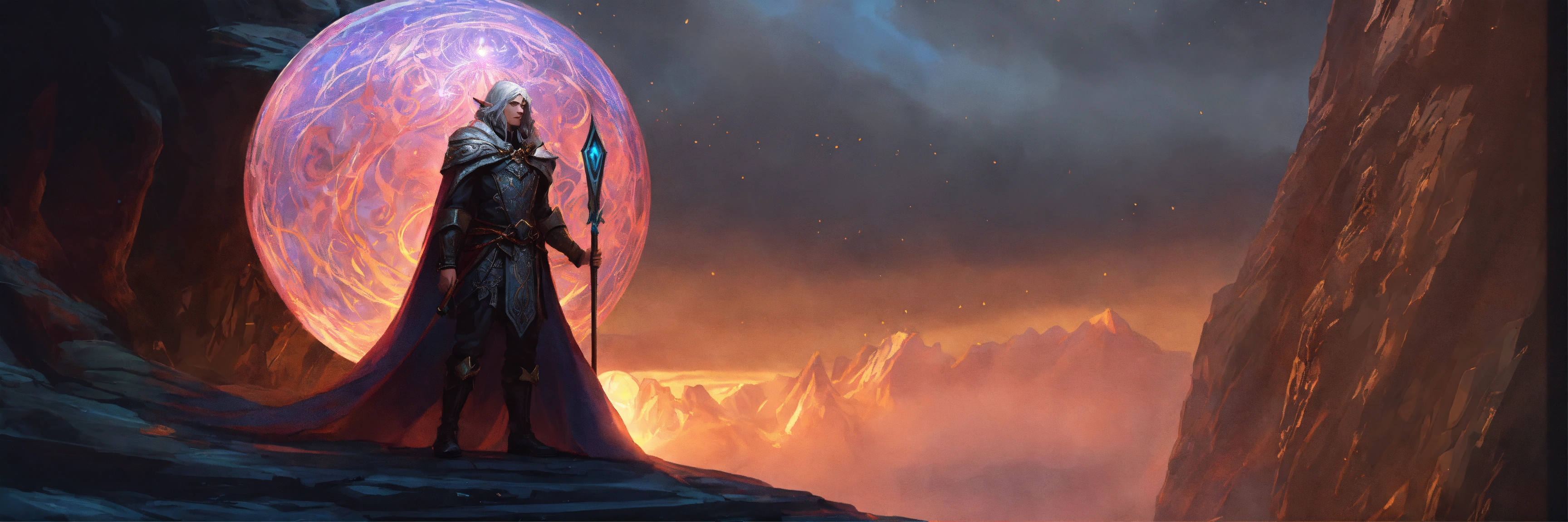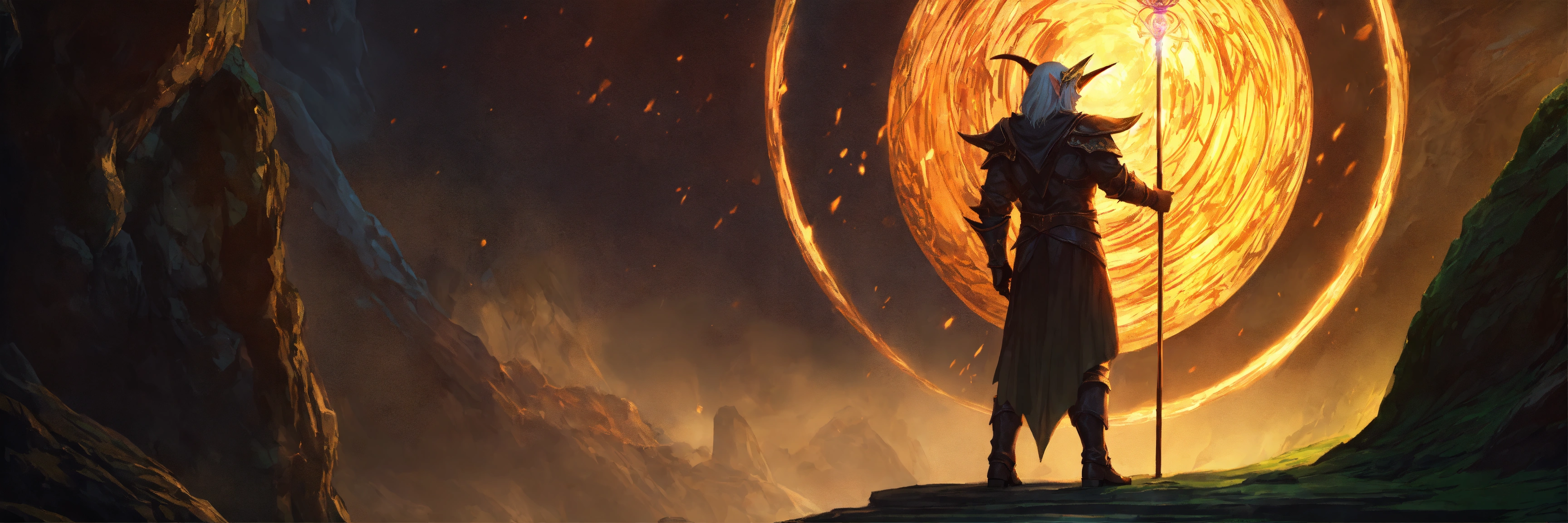 Create a elder elf god in a heroic pose, holding a staff, back-facing, standing in front of a giant dark magical orb, resonating power, underground background, in the style of graphic novel art, 8k, corrected