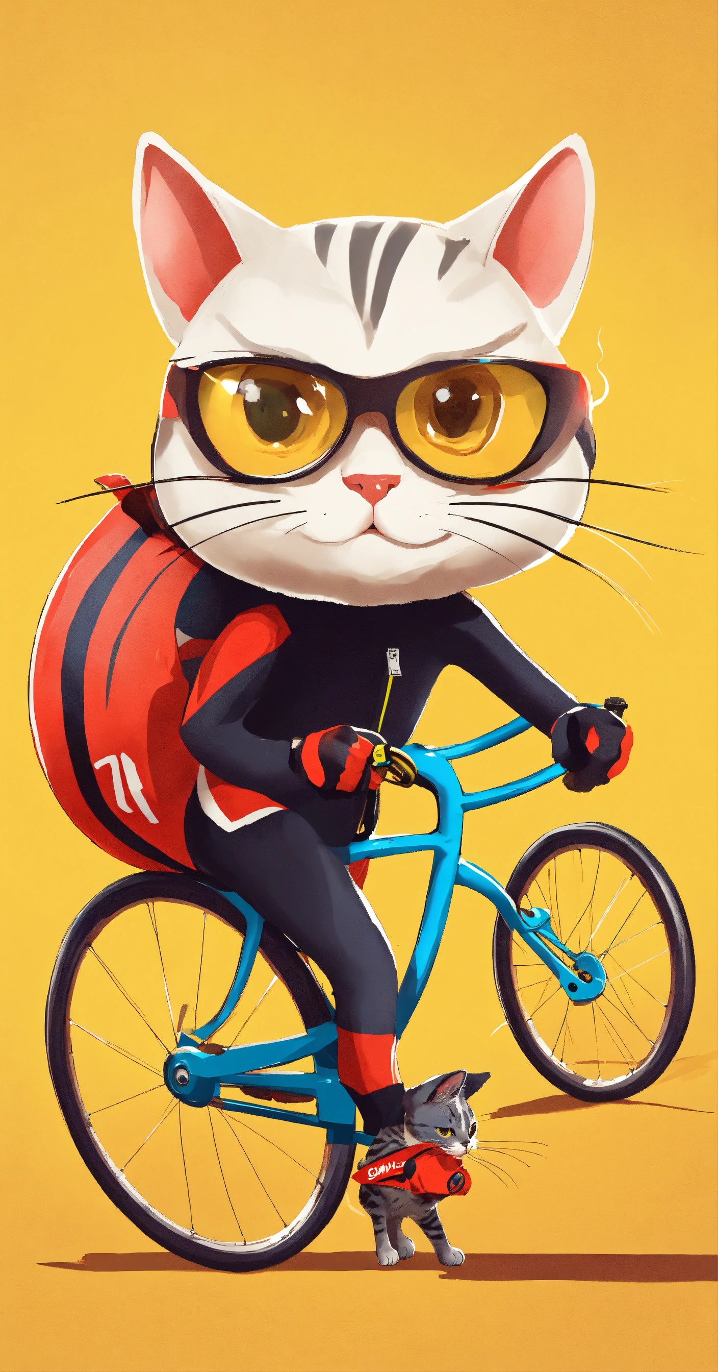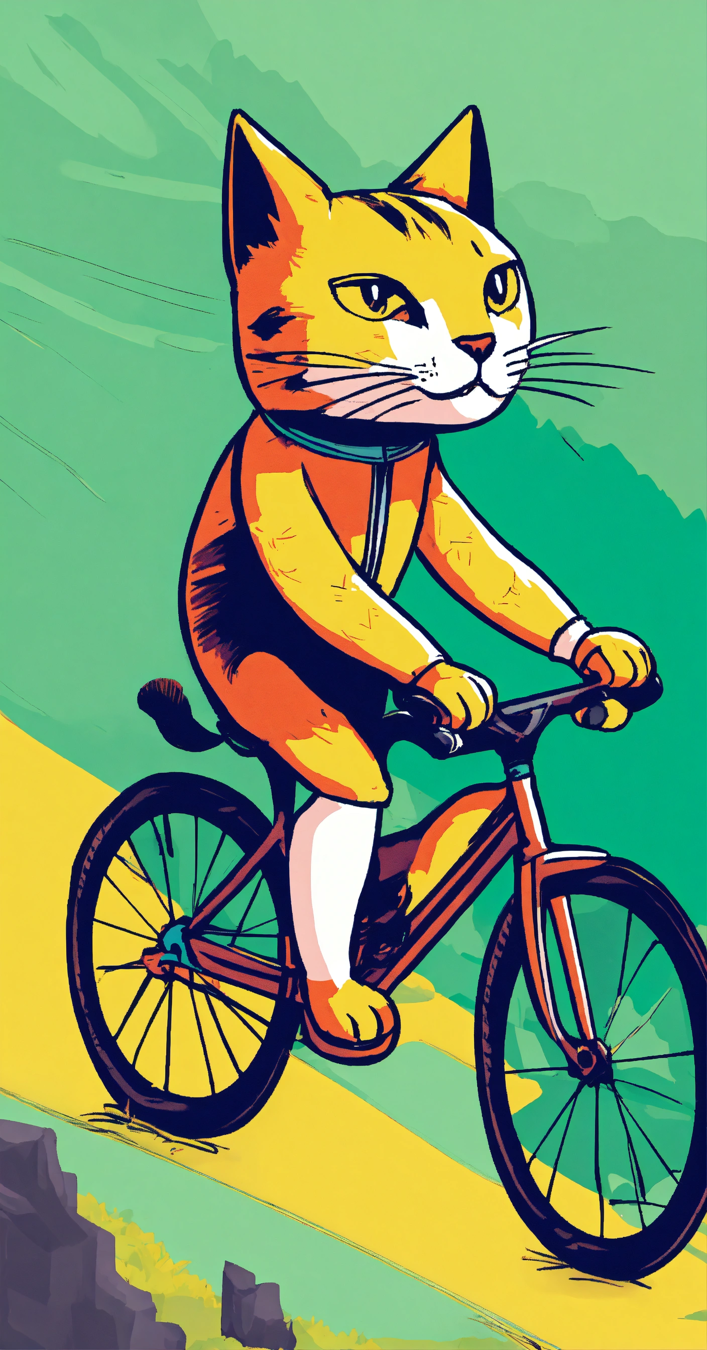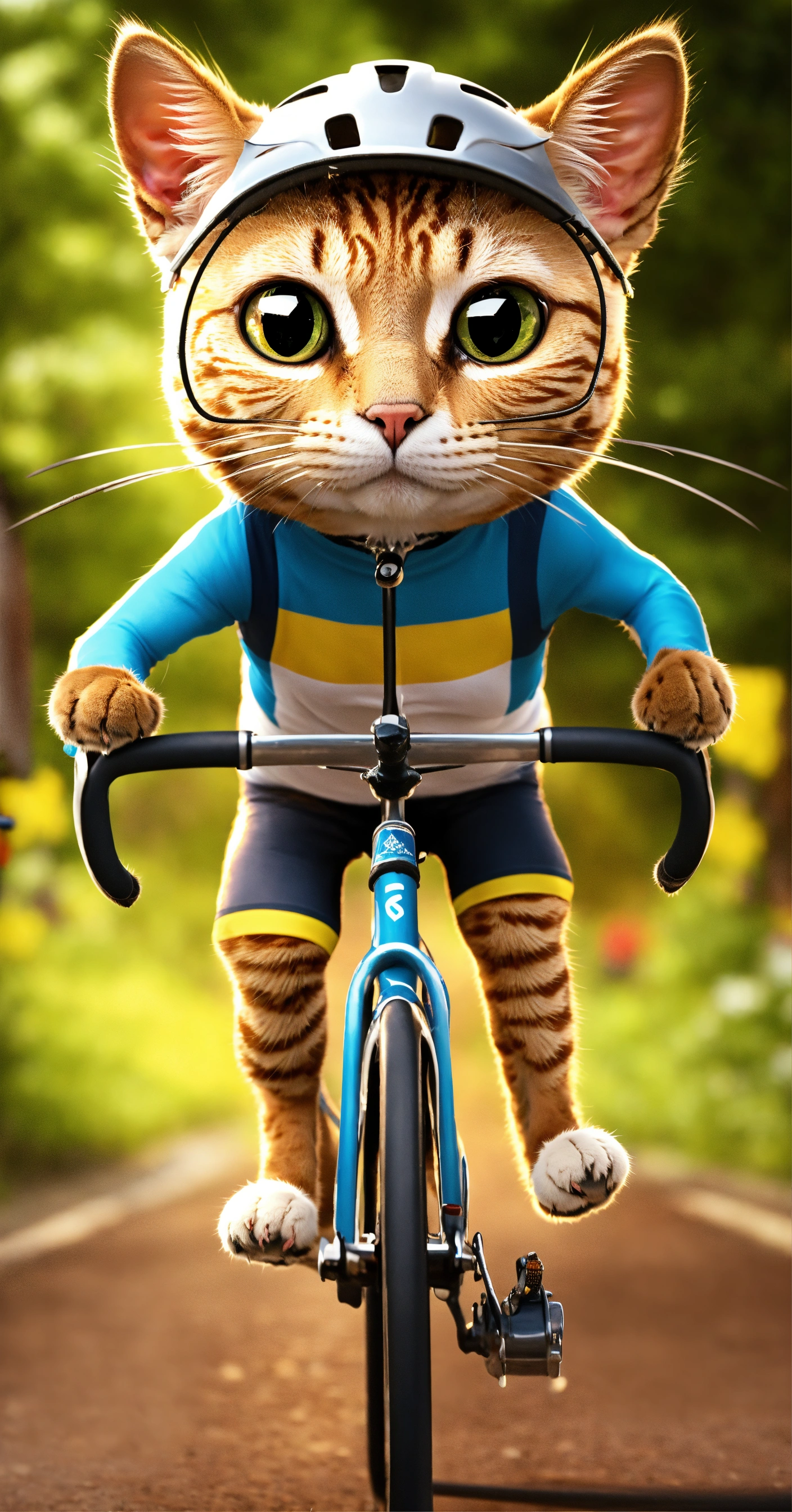 Create an image of a cat riding a bicycle as if participating in the tour de france, complete with cycling attire and a race number.