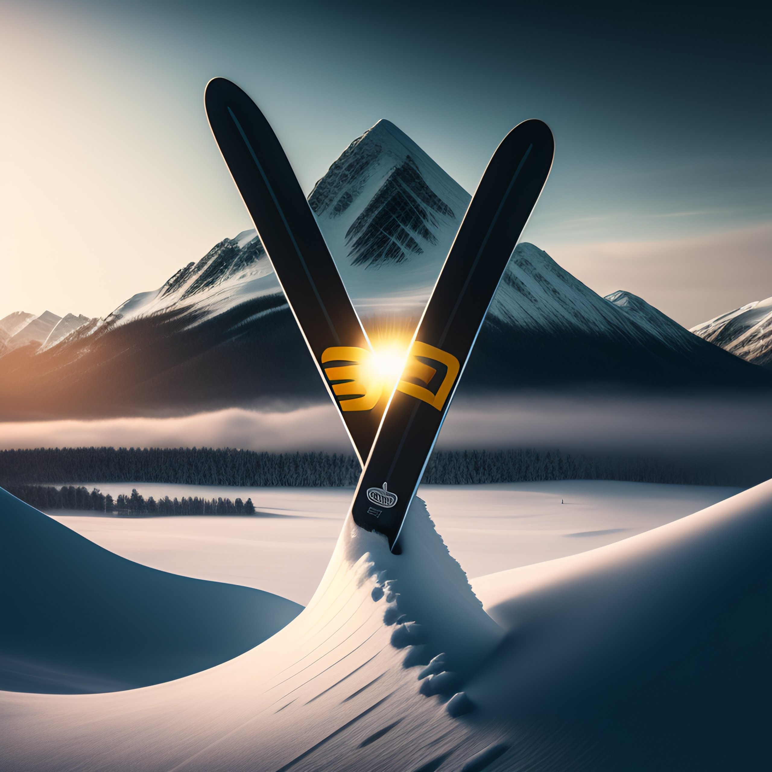 Logo with a pair of skis in white and black