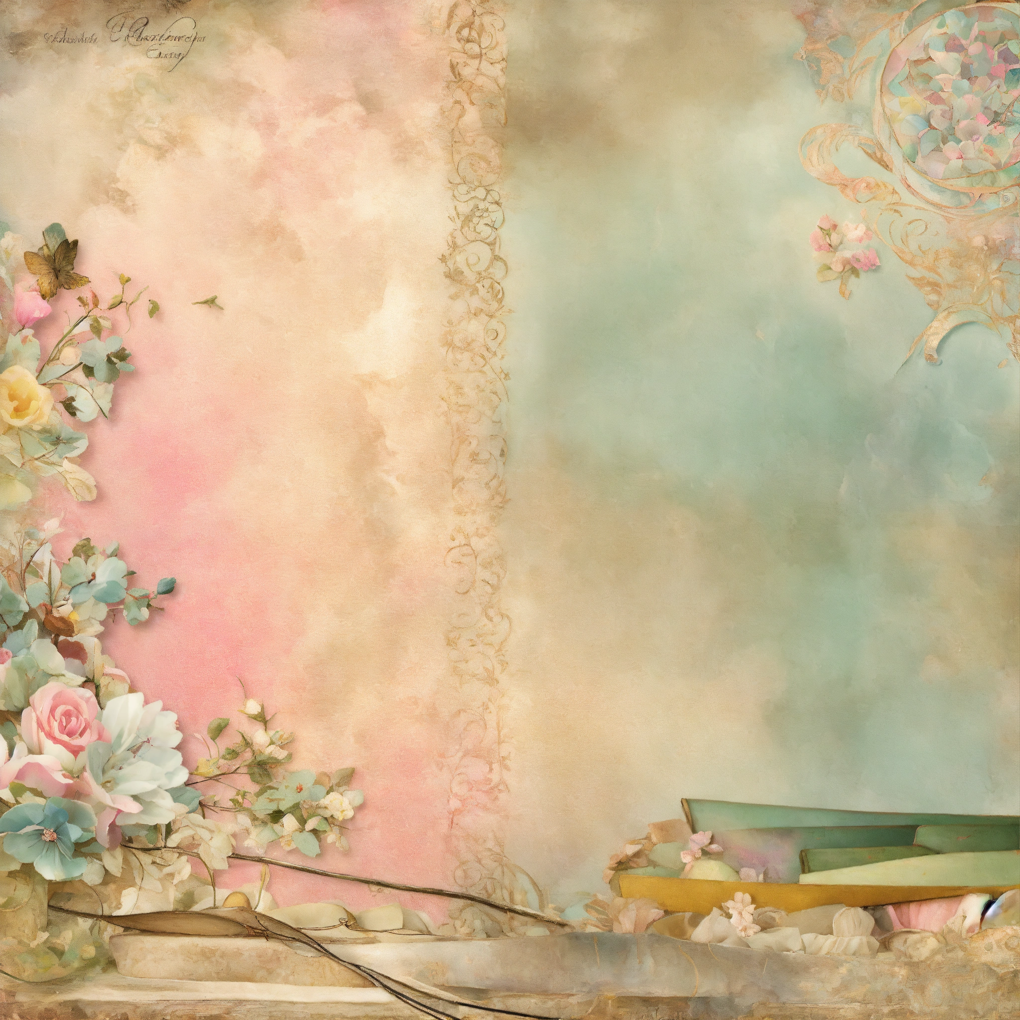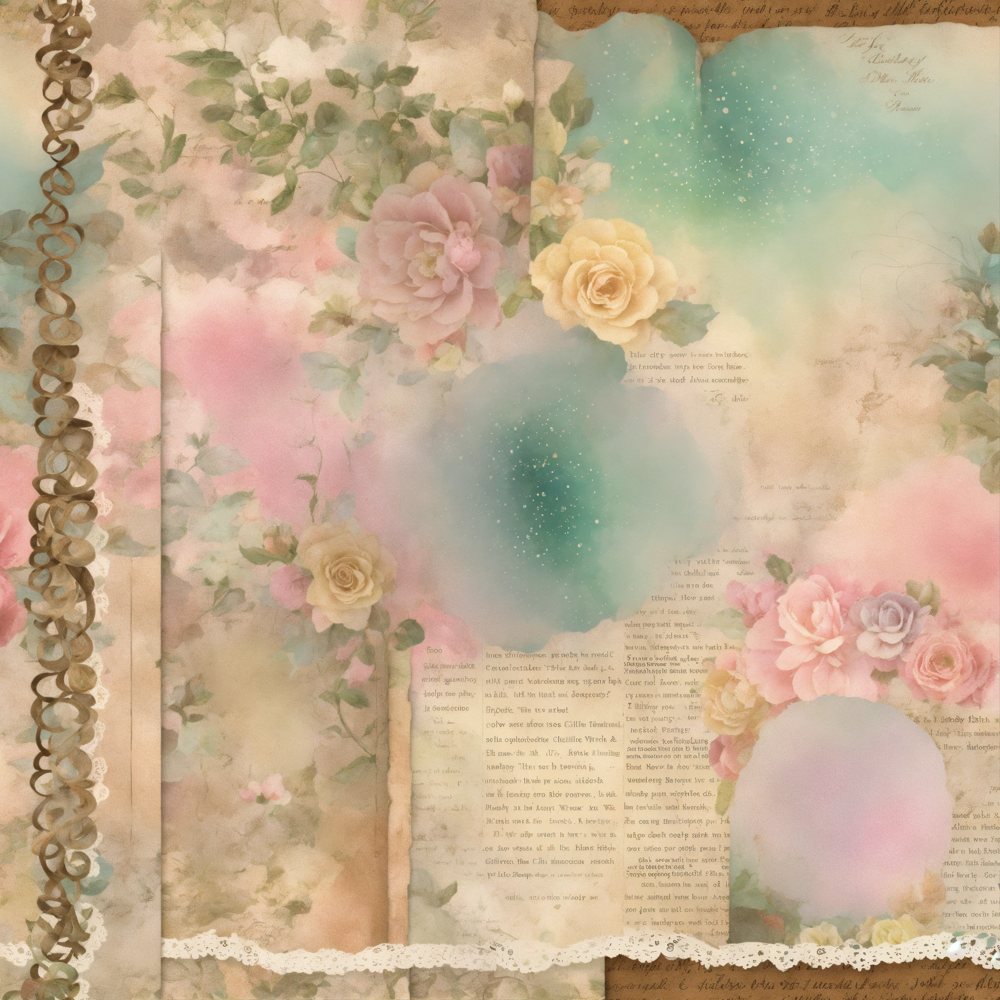 Shabby chic dreamy mist pastel junk journals vintage childrens toy seamless abstract patterns, fullpage full page, hollow laces, ephemera digital paper, textured digital paper, scrapbook, decoupage, papercraft, antique texture swirling magical fairytale abstract art style