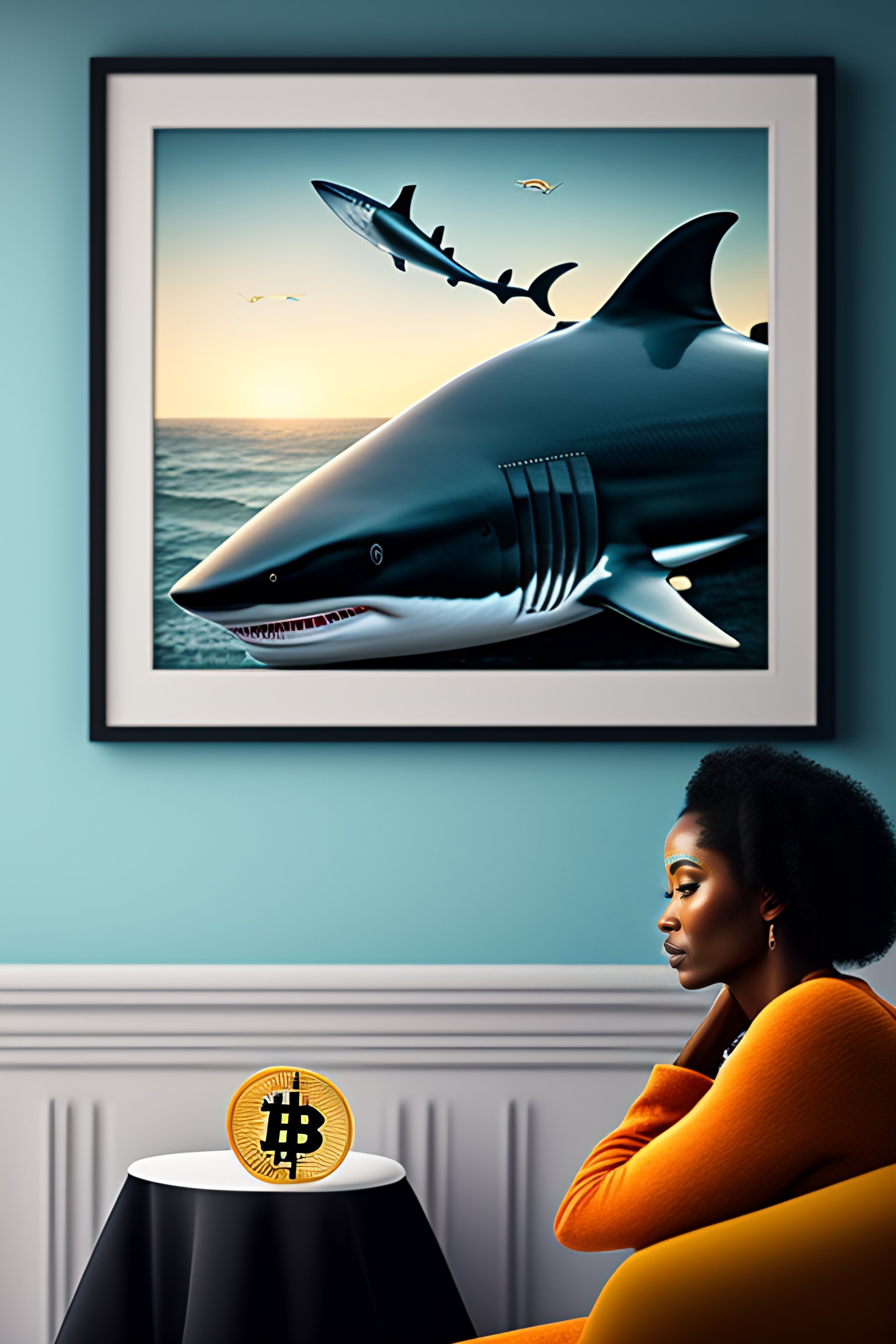 shark with the bitcoin logo