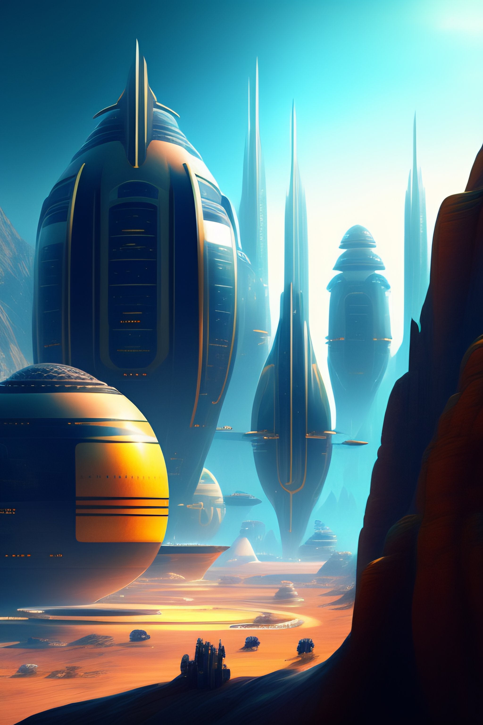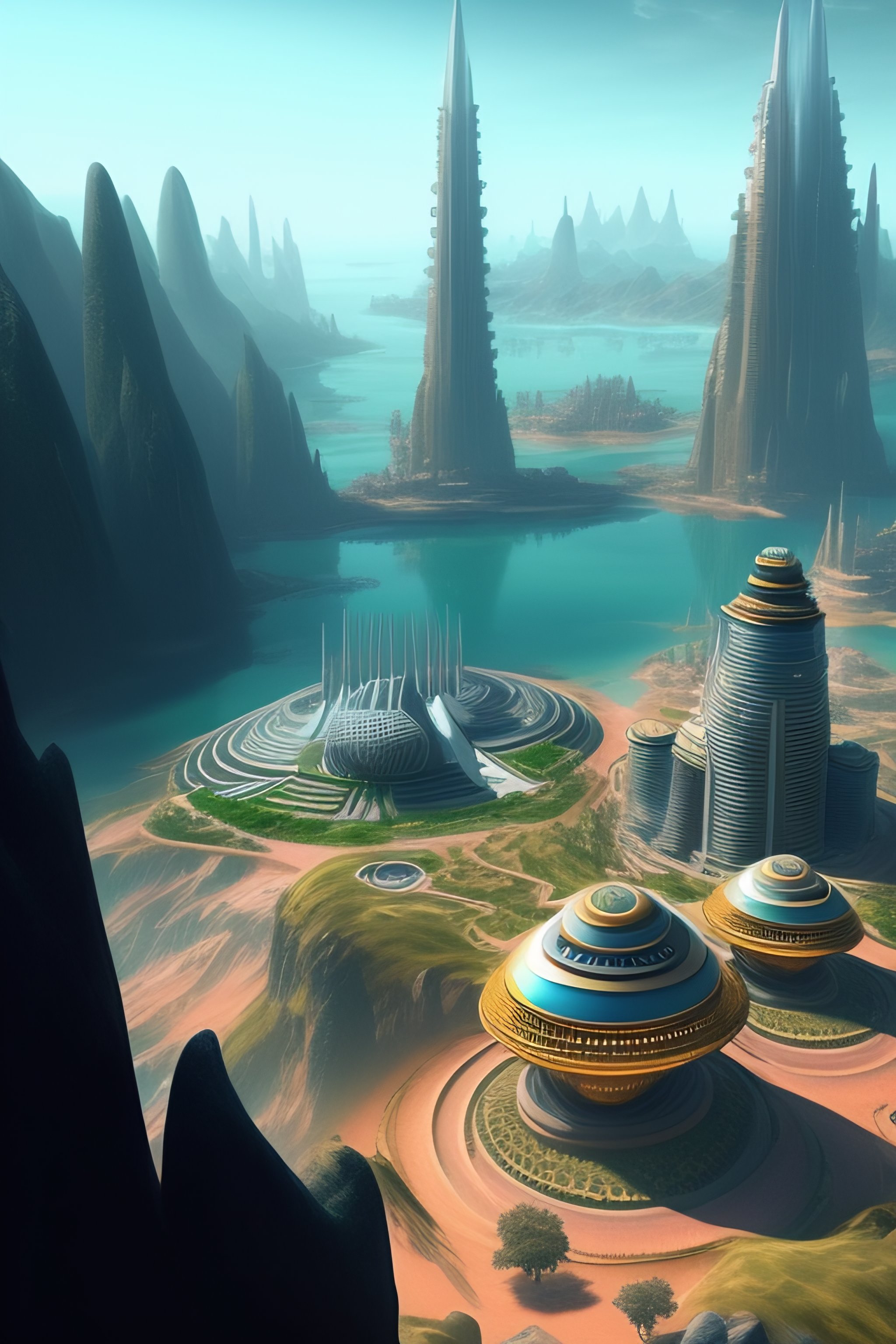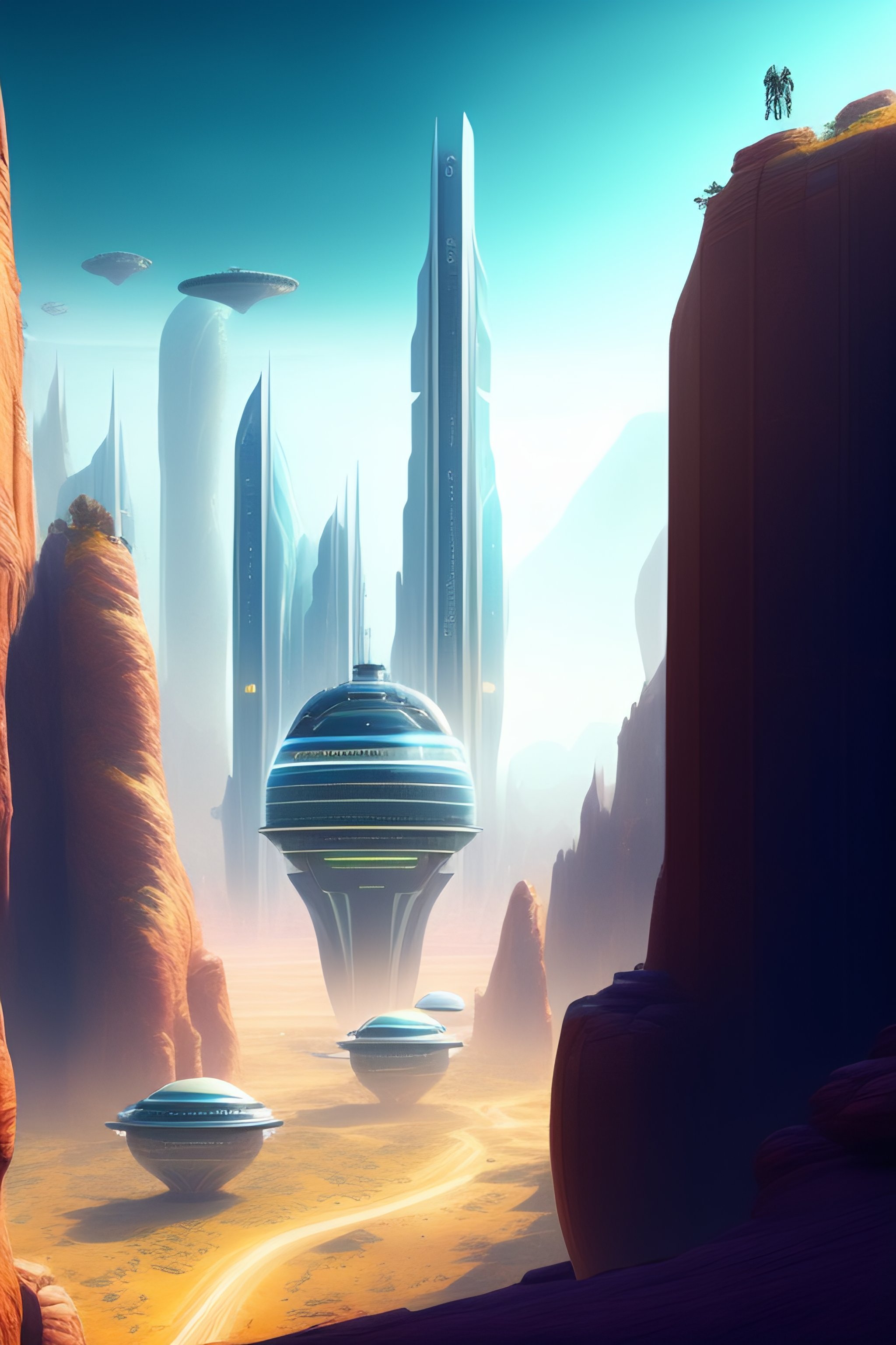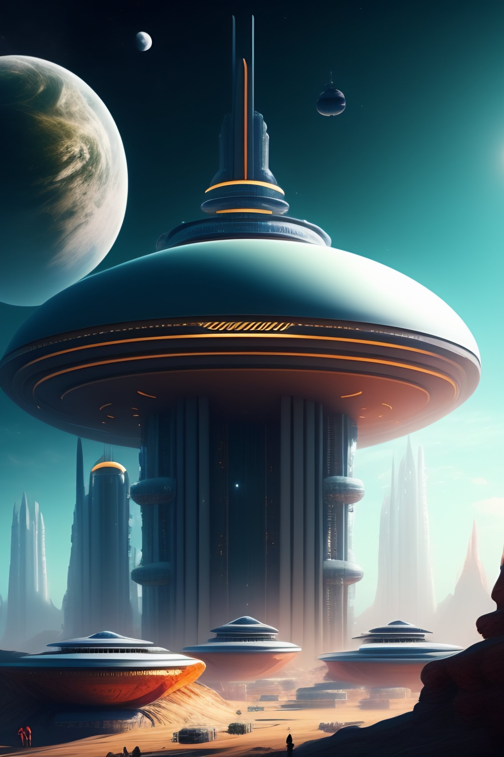 High-tech alien city with humans