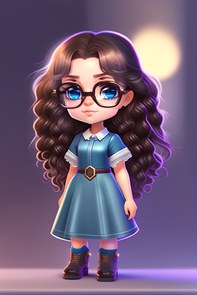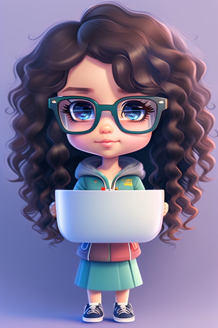 A chibi version of a girl with slightly dark skin, curly hair and wearing glasses, in the photo she must be on her side.
