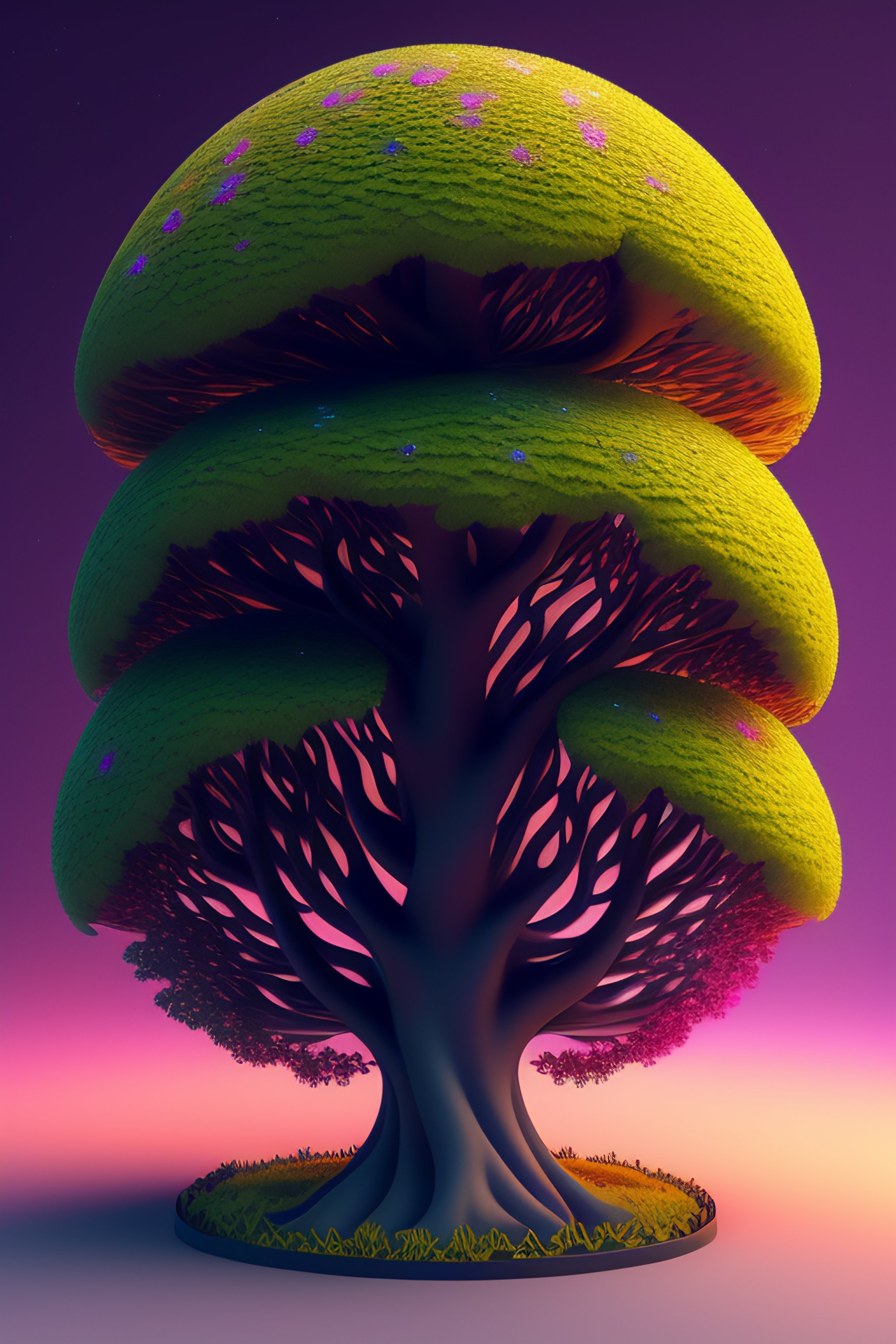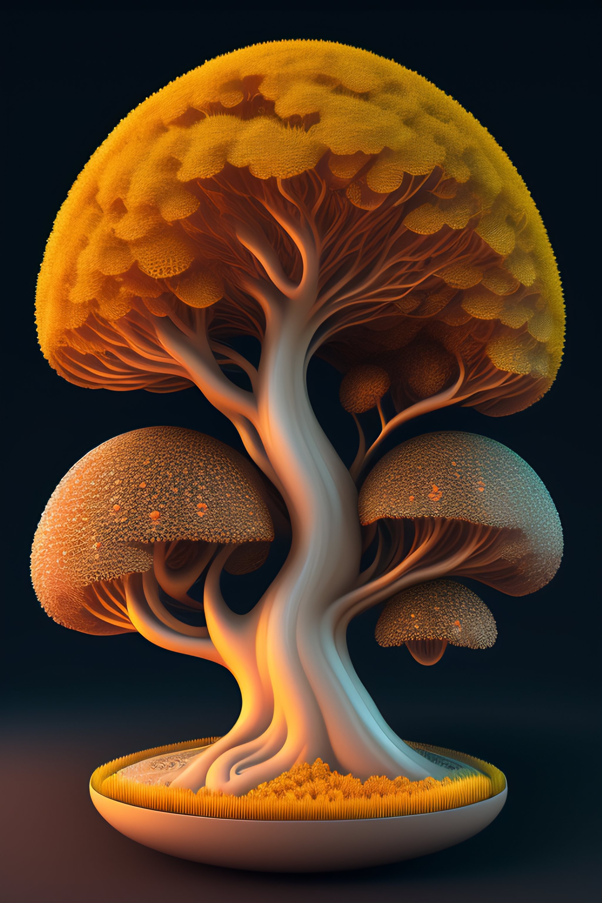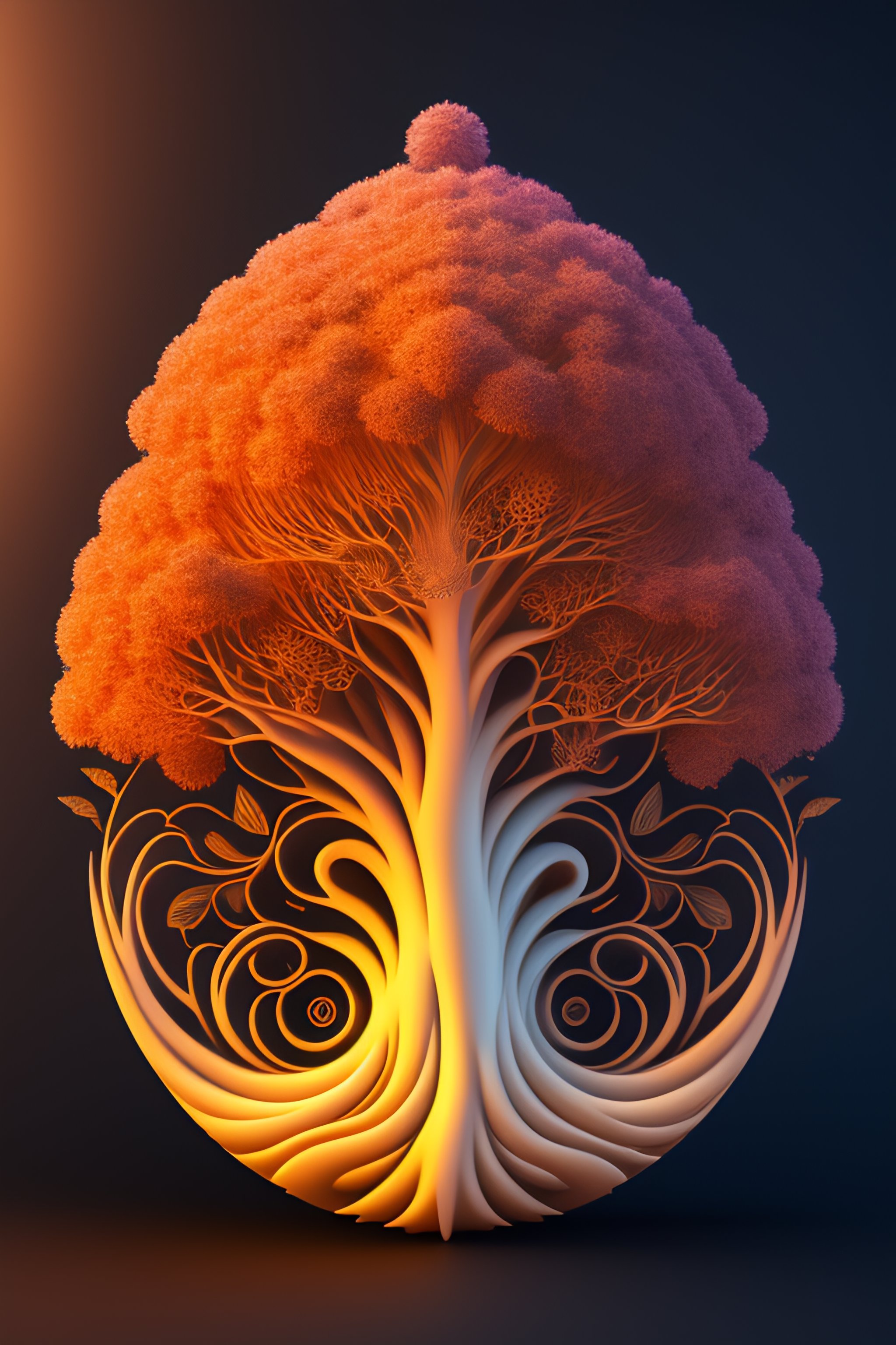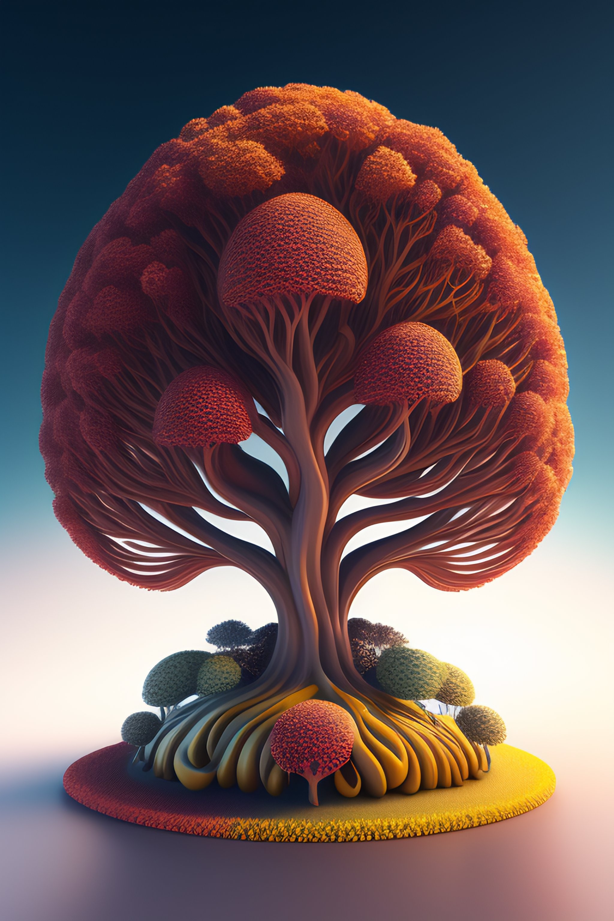 Ultra detailed tree in a generative 3d style on a disk, grotesk font, graphic design, uppercase letter, fungal, mycelium, intricate concept art, triadic color scheme, by alphonse mucha and mandelbrot, octane render, 4k, behance, dribbble, alphabet challenge