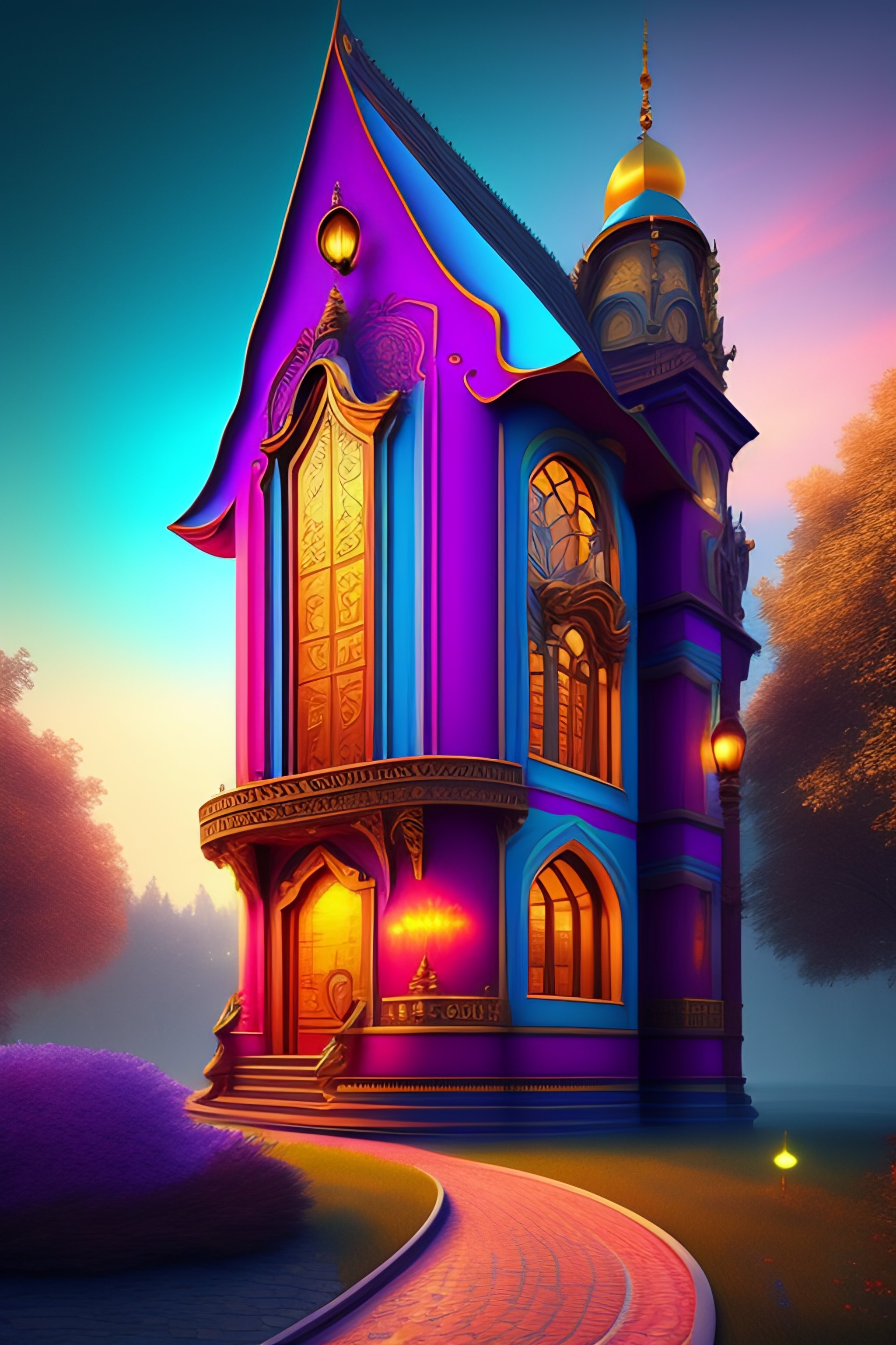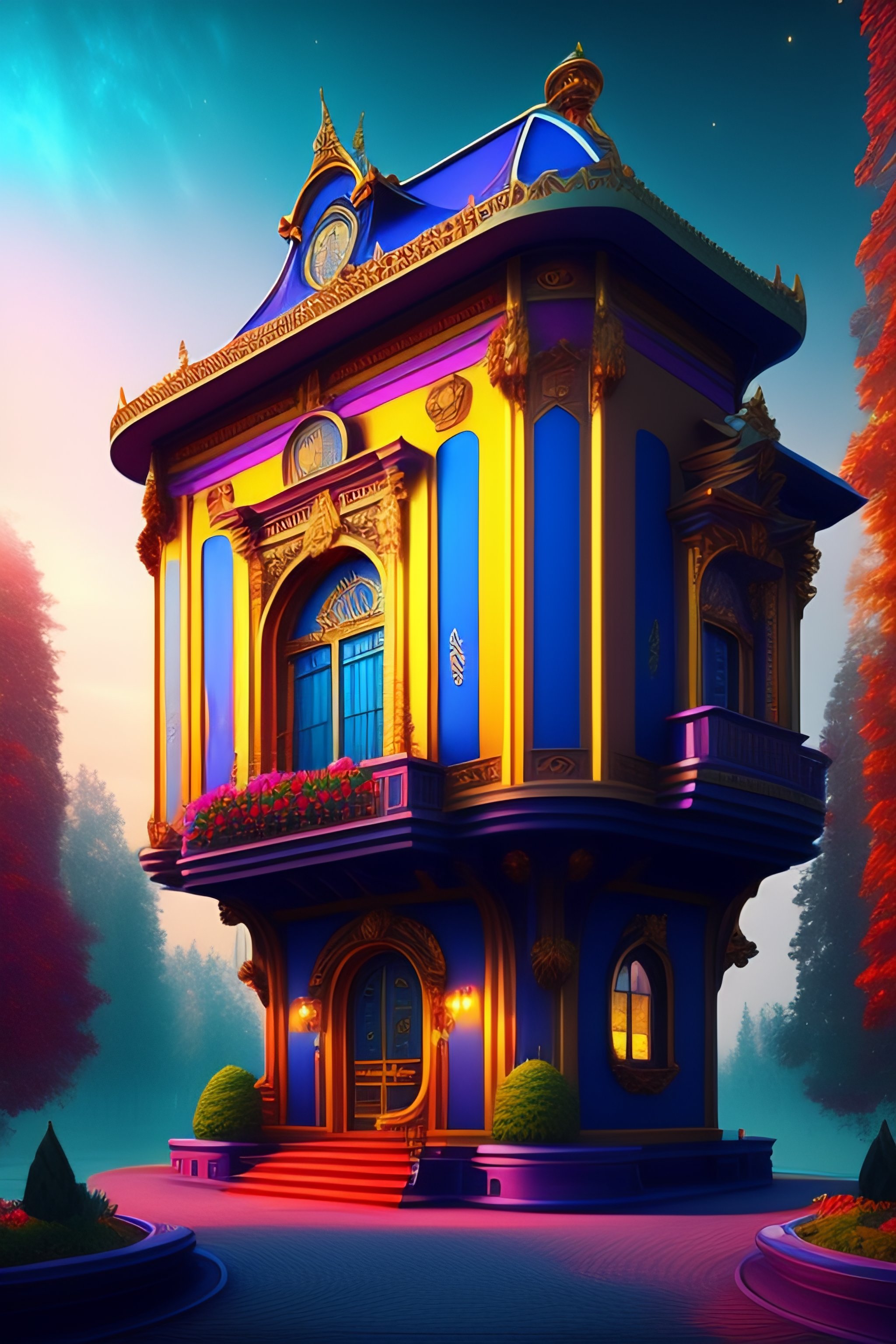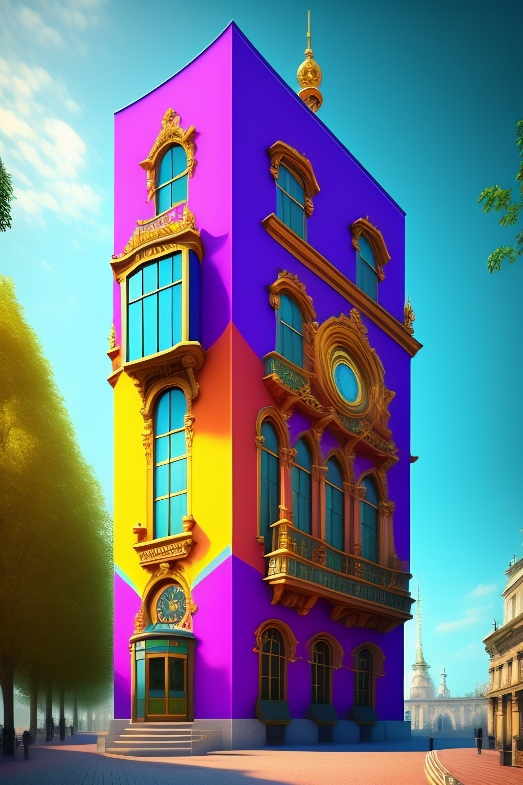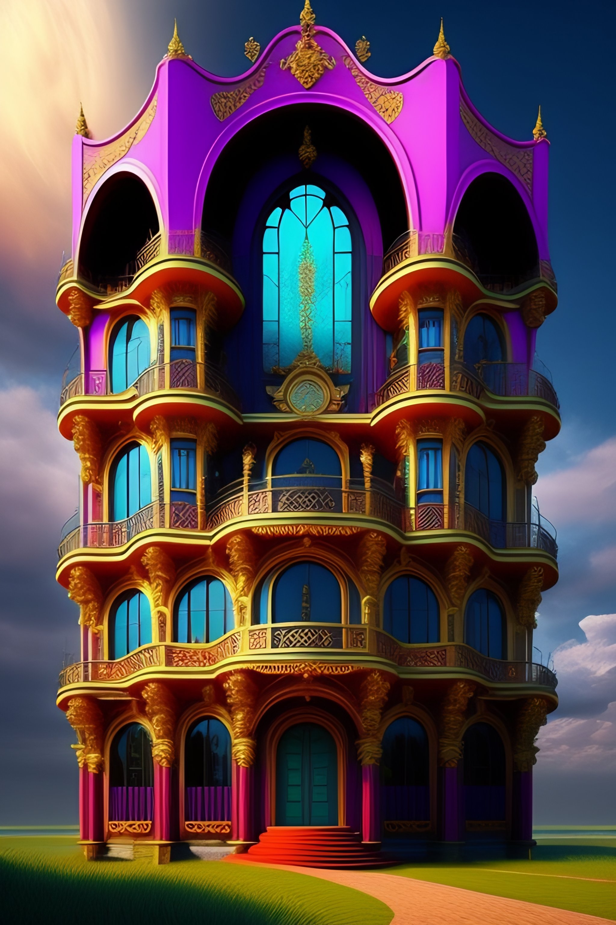 Art nuveau exterior fantasy colorful building office space futuristic rococco baroques victorian