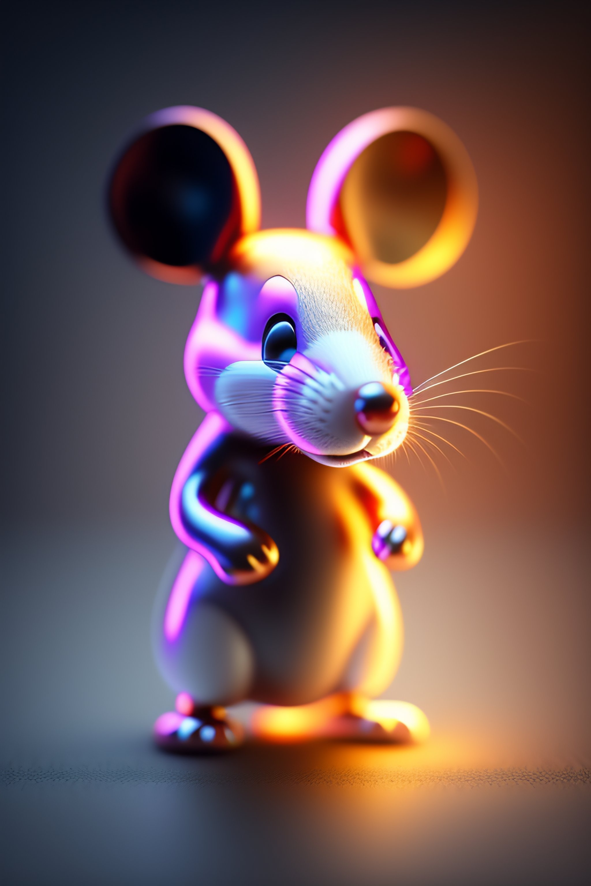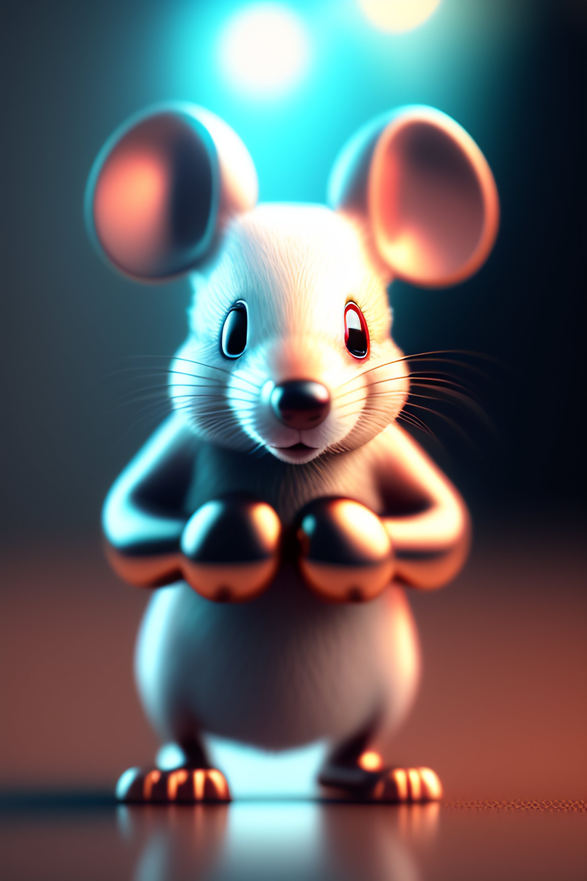 A 3d render of a standing realistic rat, it has two mickey mouse ears, it has mickey mouse clothes drawn on its skin in a white lab coat mixing test tubes of chemicals in a chemistry lab, bokeh, canon 50mm, cinematic lighting, volumetric light, octane, octane render, redshift render