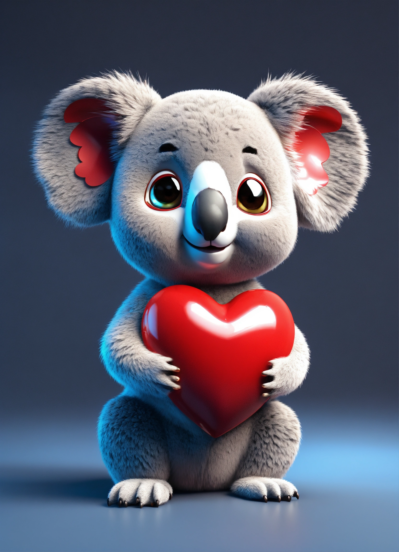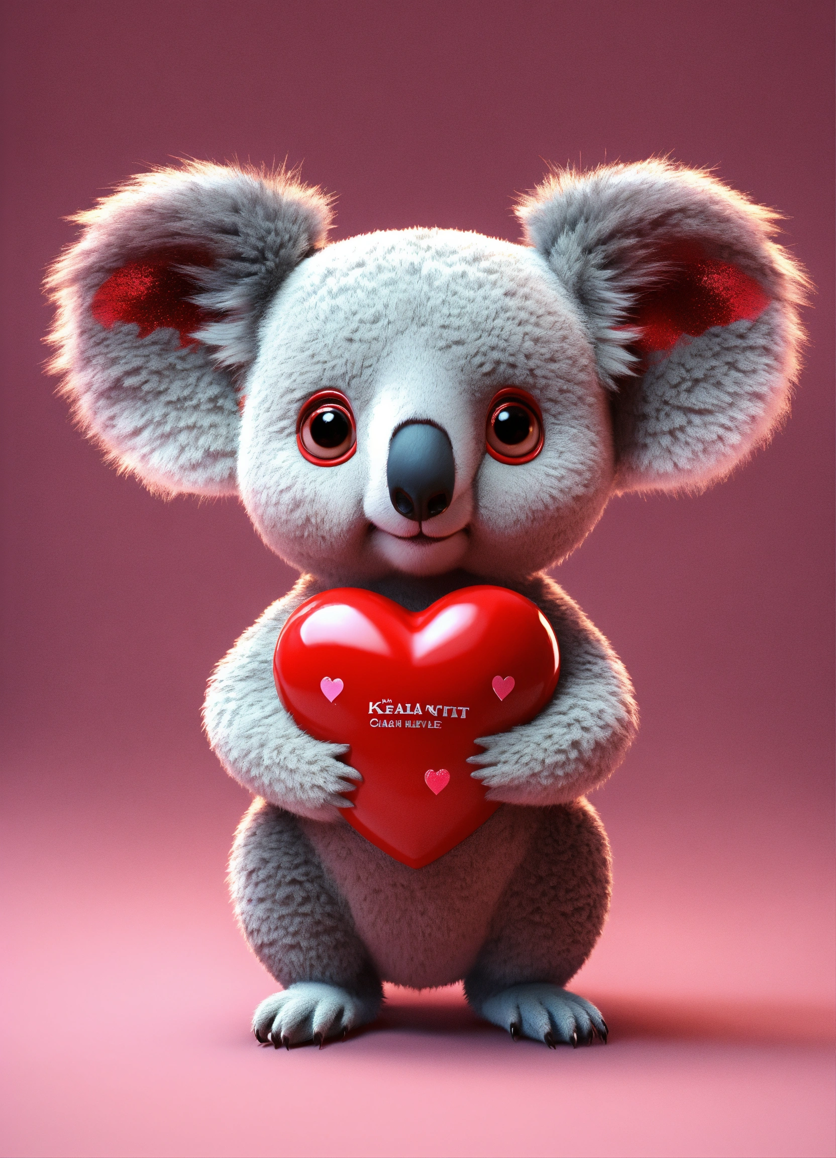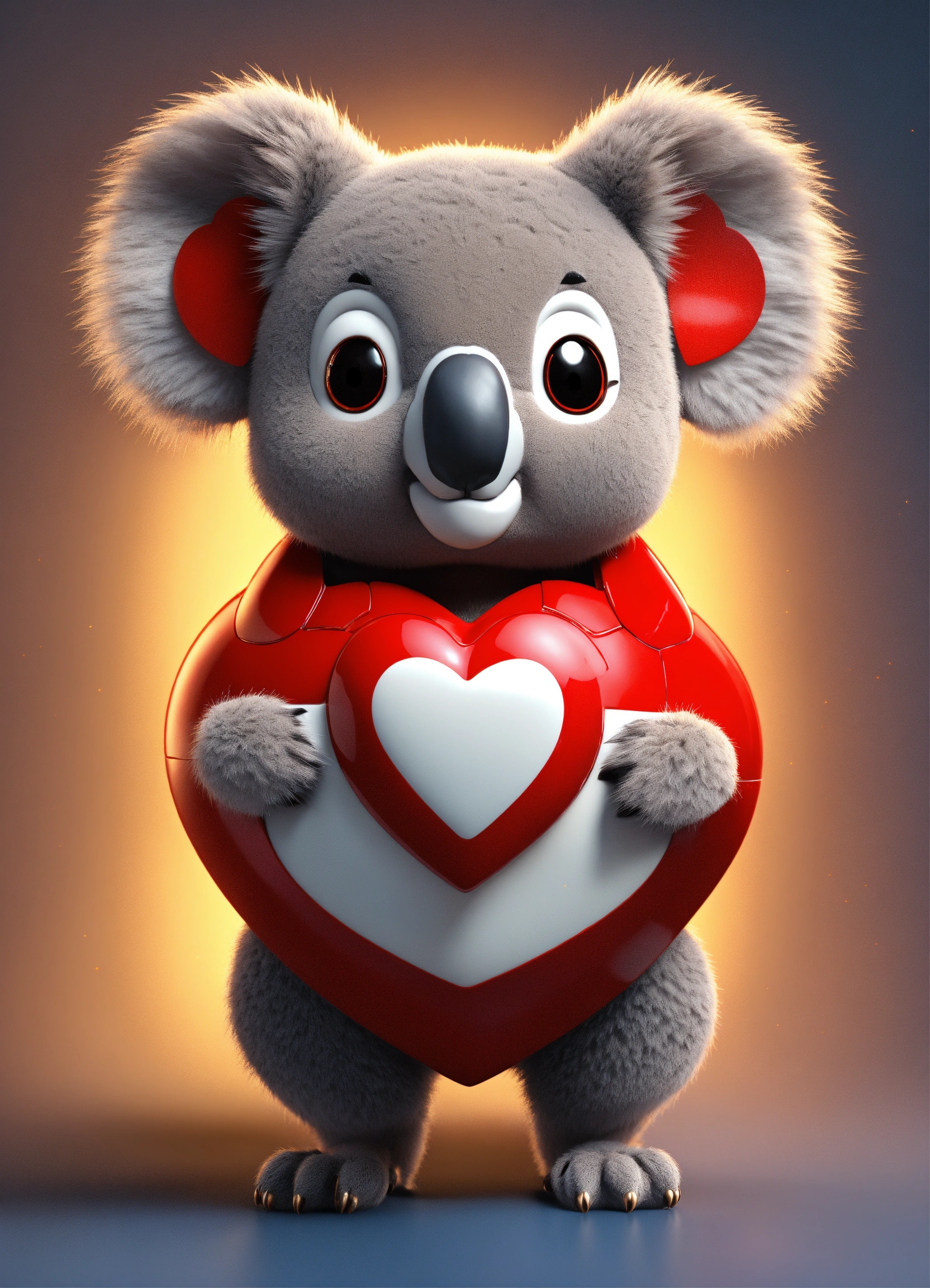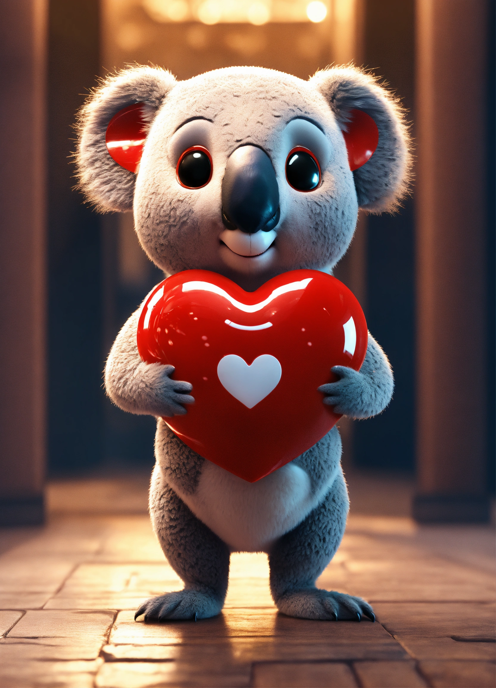 A cute 3d model koala character in a matrix, big eyes, charming, attractive, adorable, luxurious, red heart on his chest, high resolution