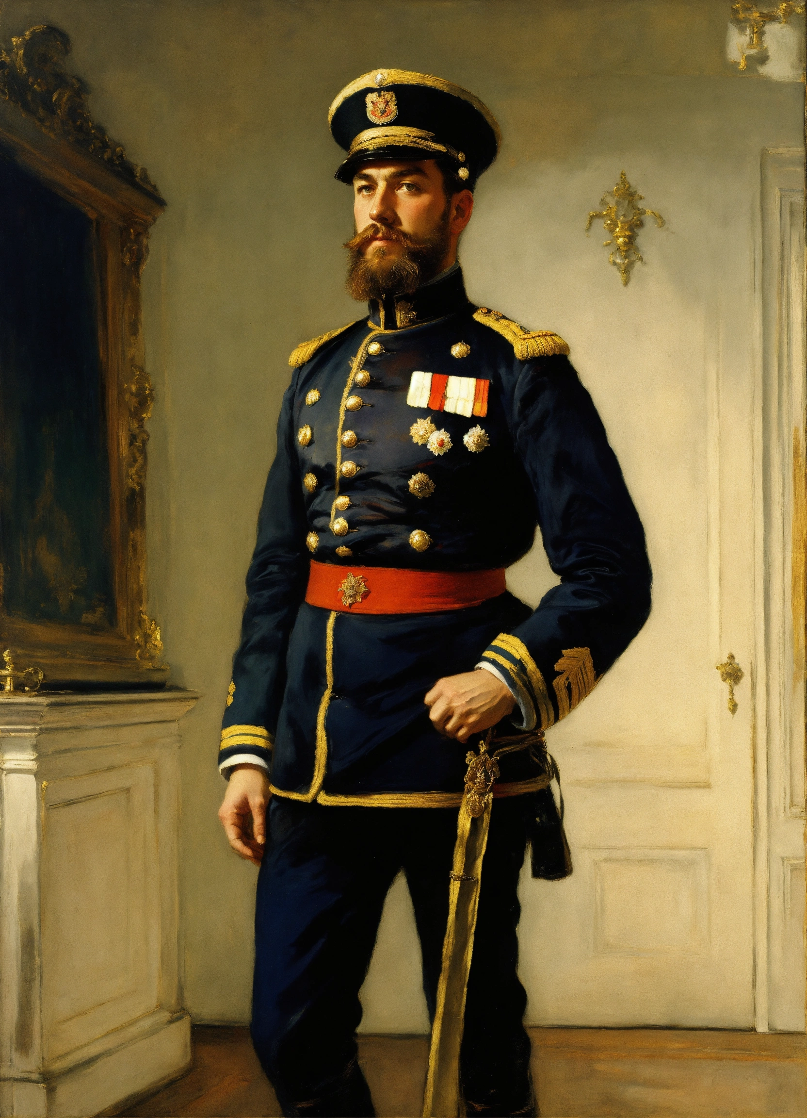 Artwork by ilya repin german man tall and stocky wearing a military uniform