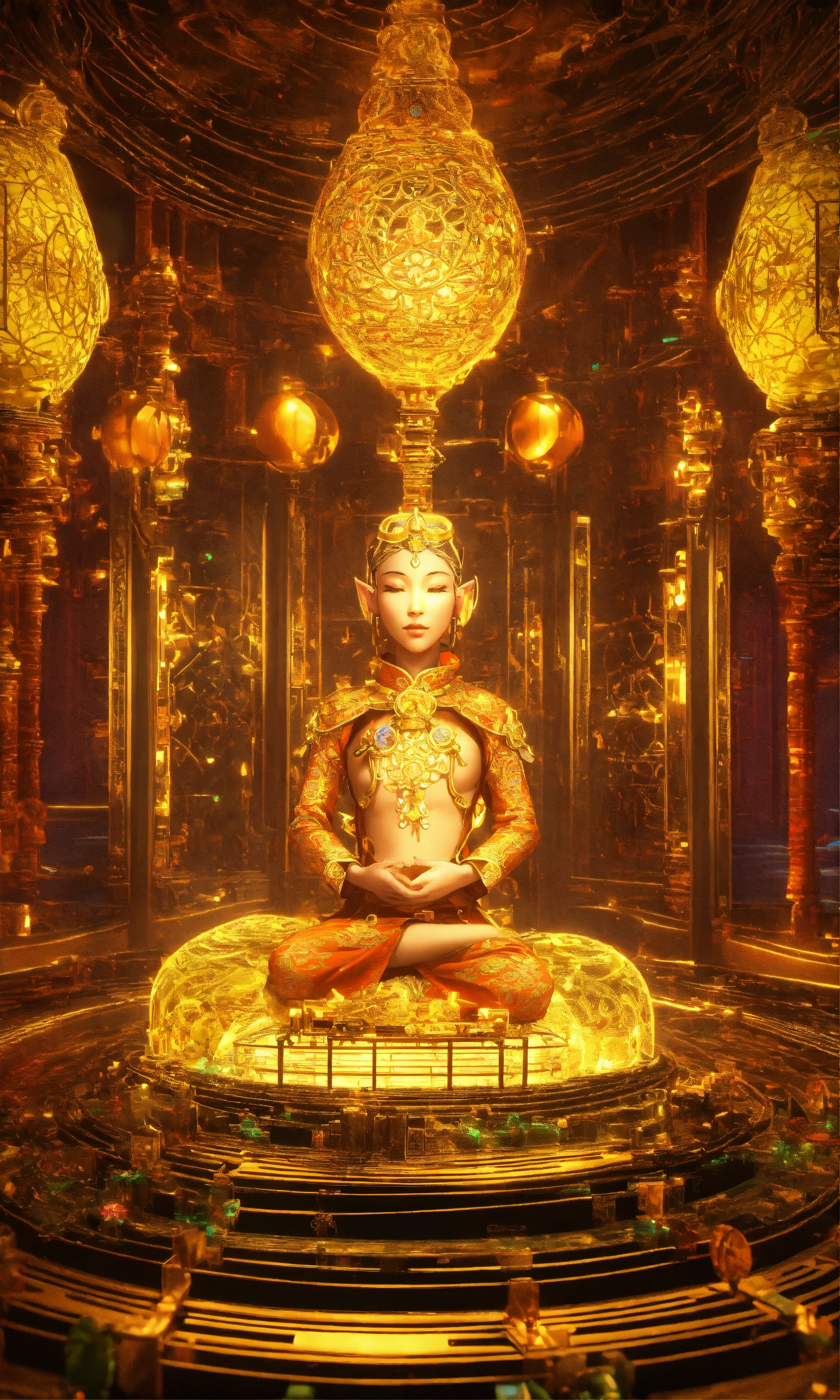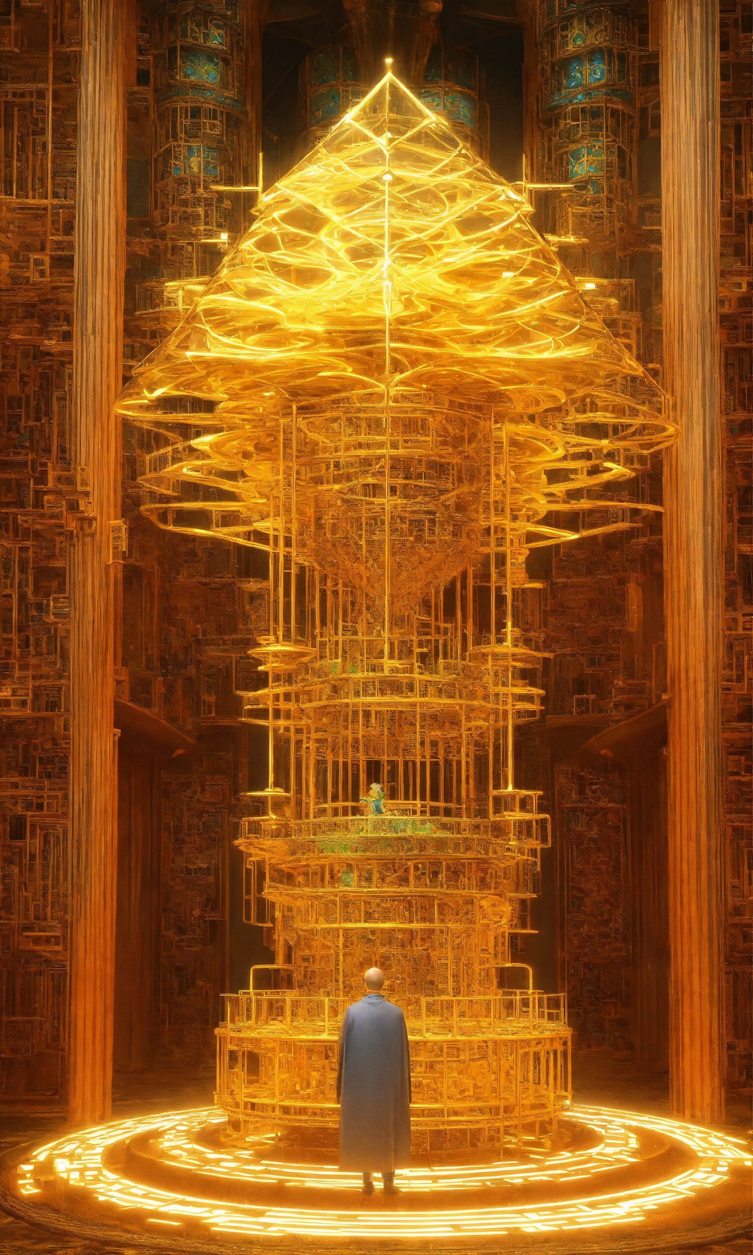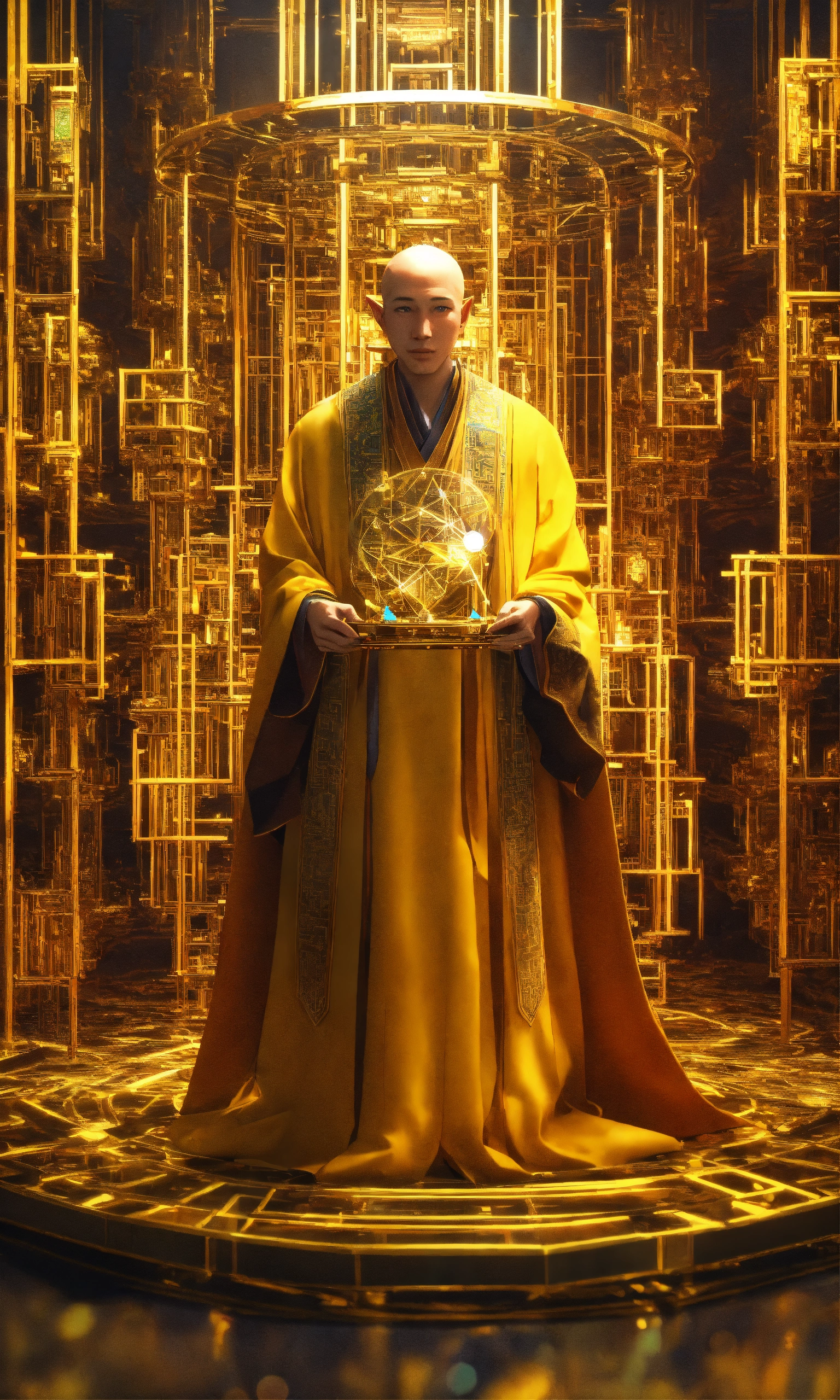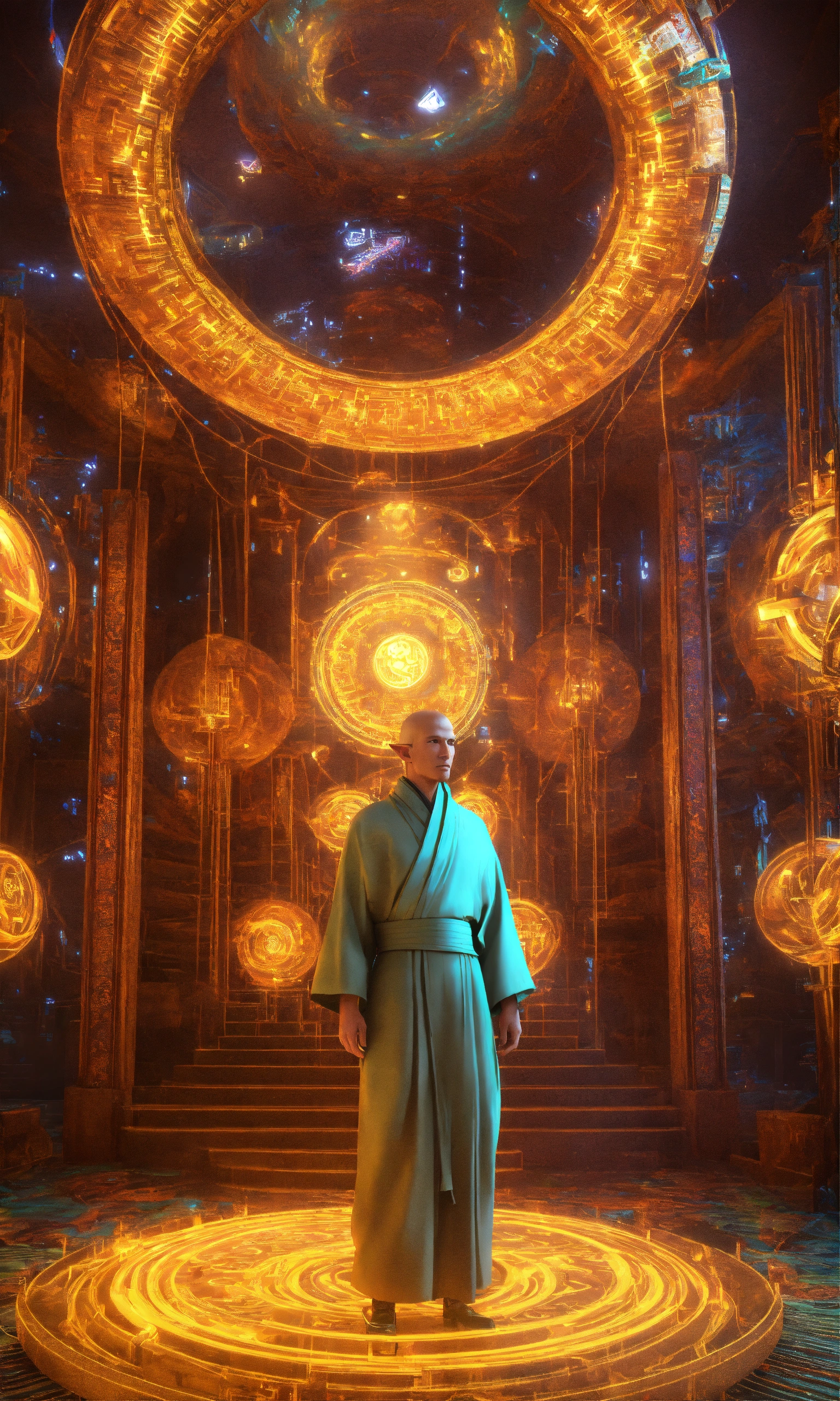 4th dimension complex fractal geometry tesseracts life daoist monk self-transforming elf machines 3d render