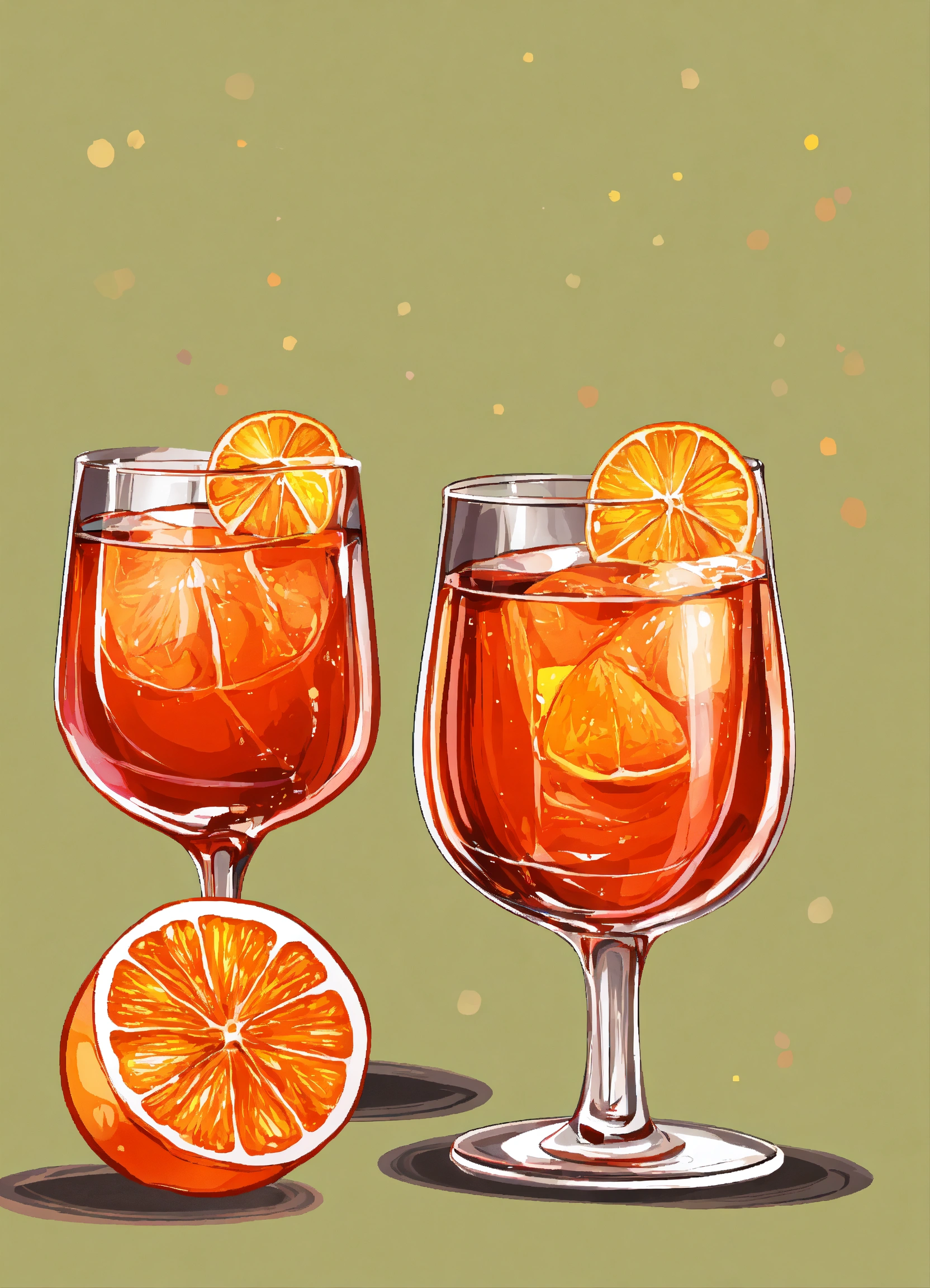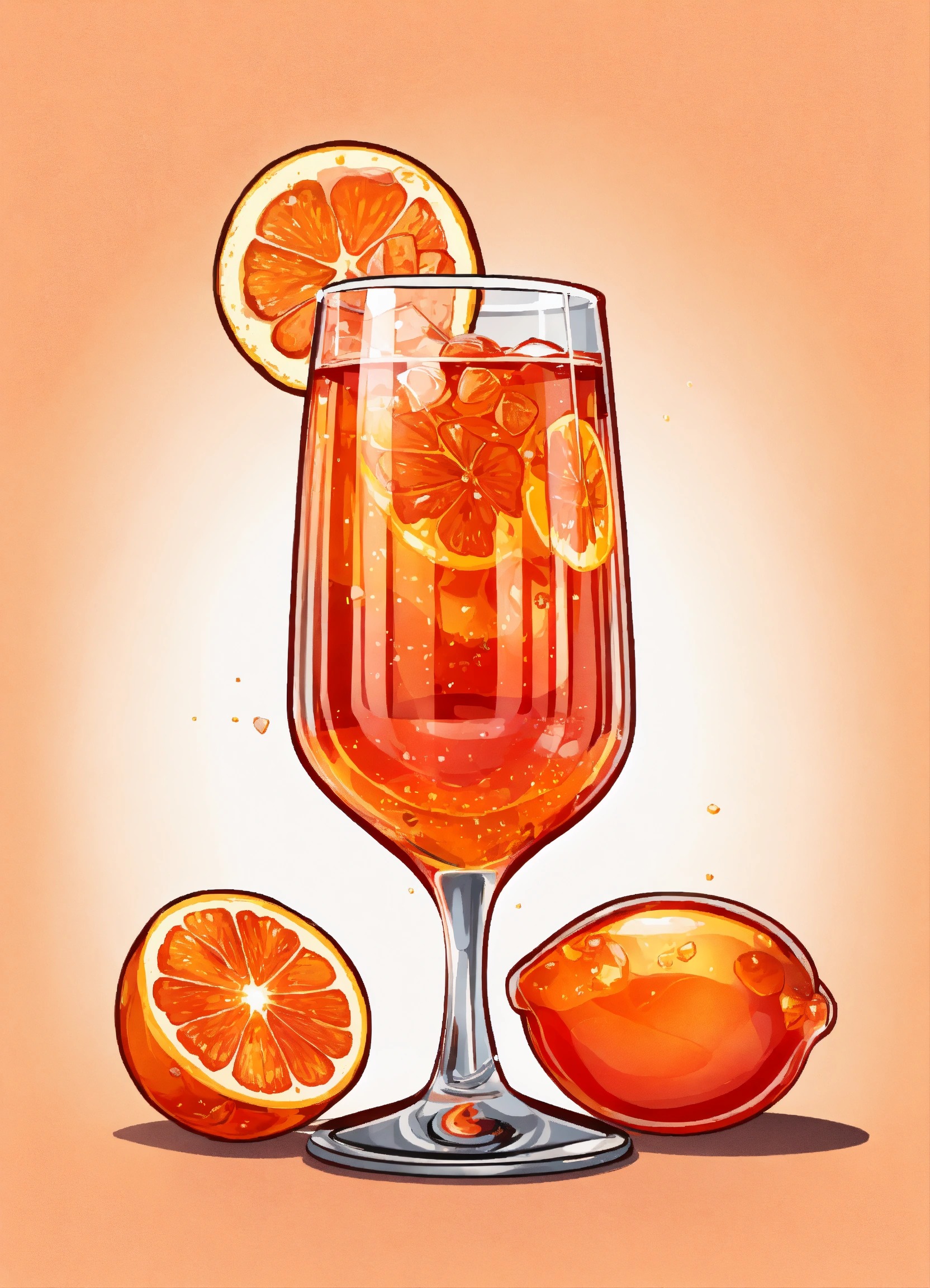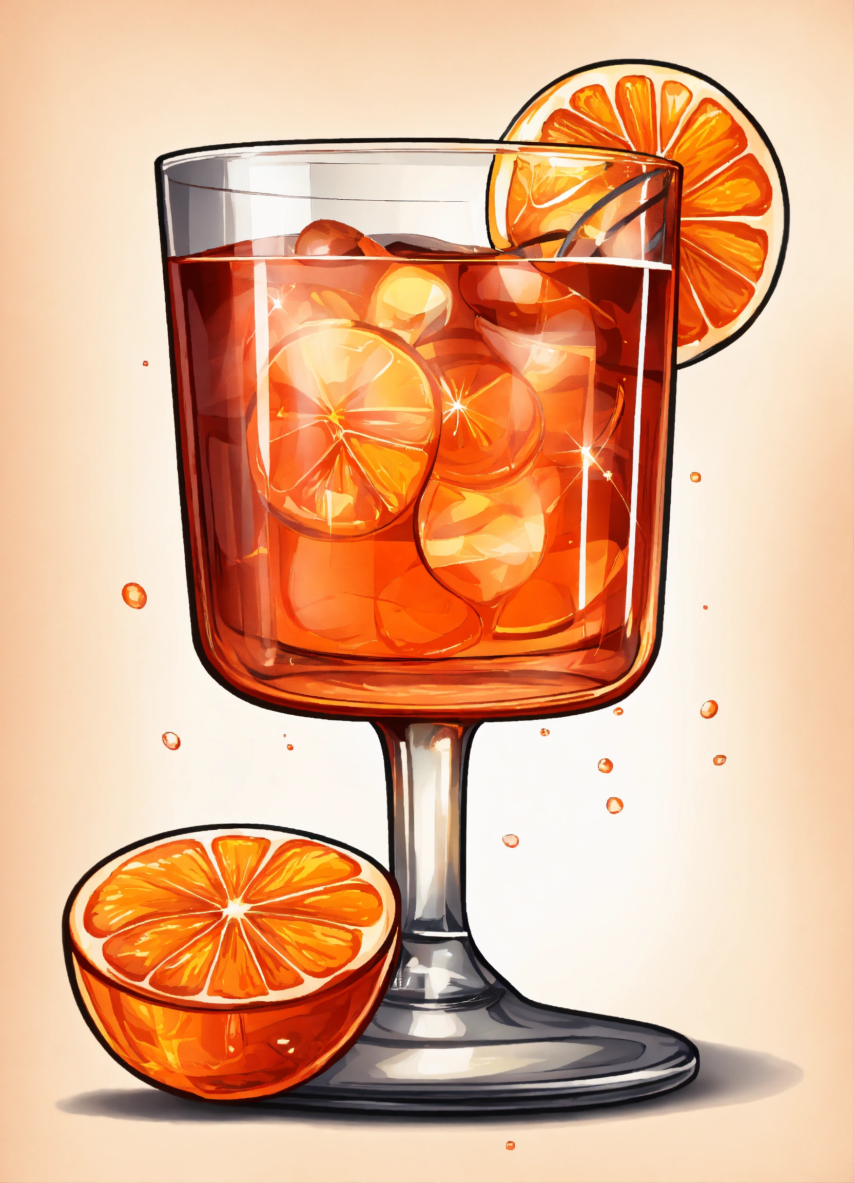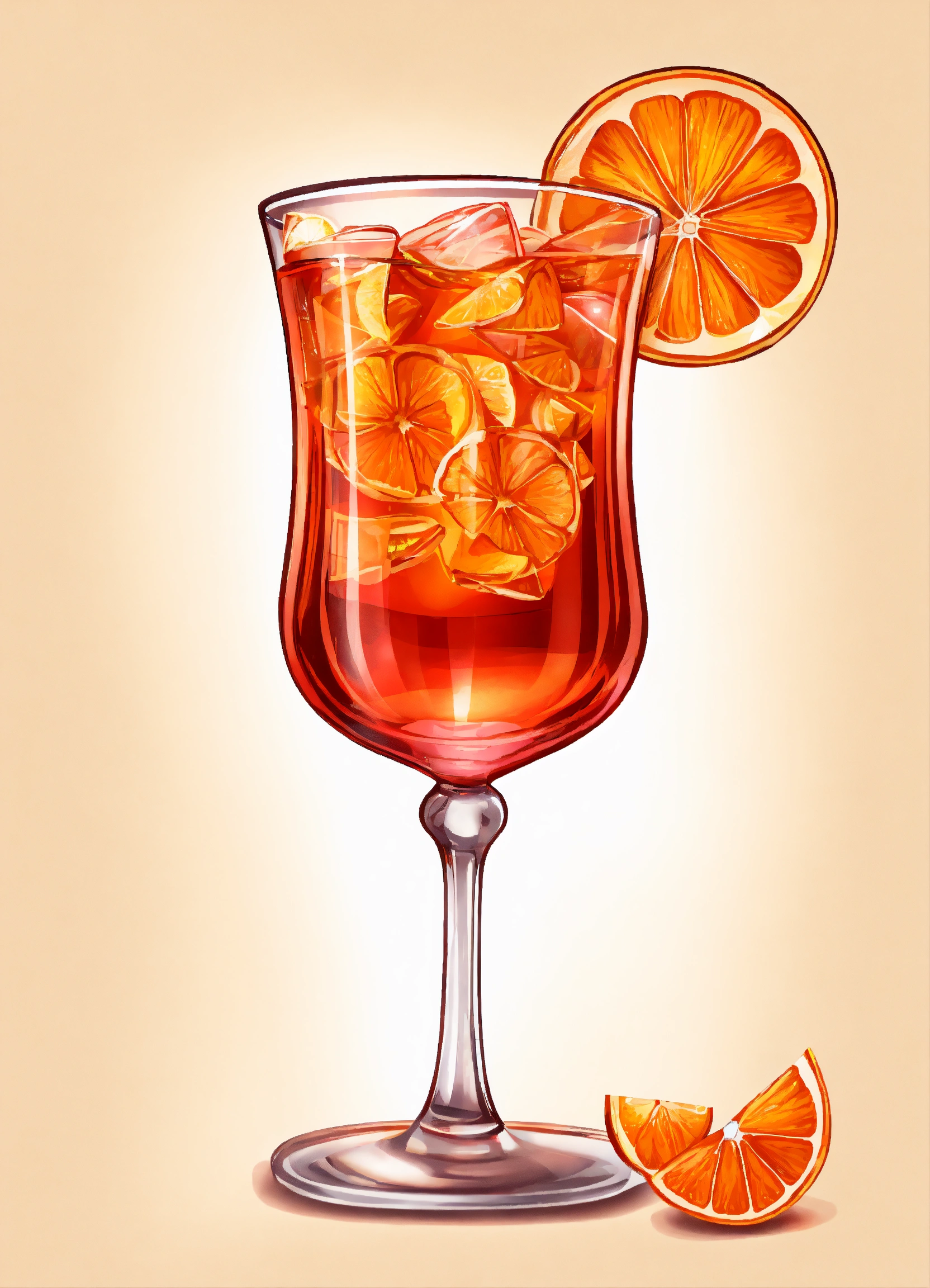 Cartoon vectorized realistic aperol spritz in wine glass edges are clean white background
