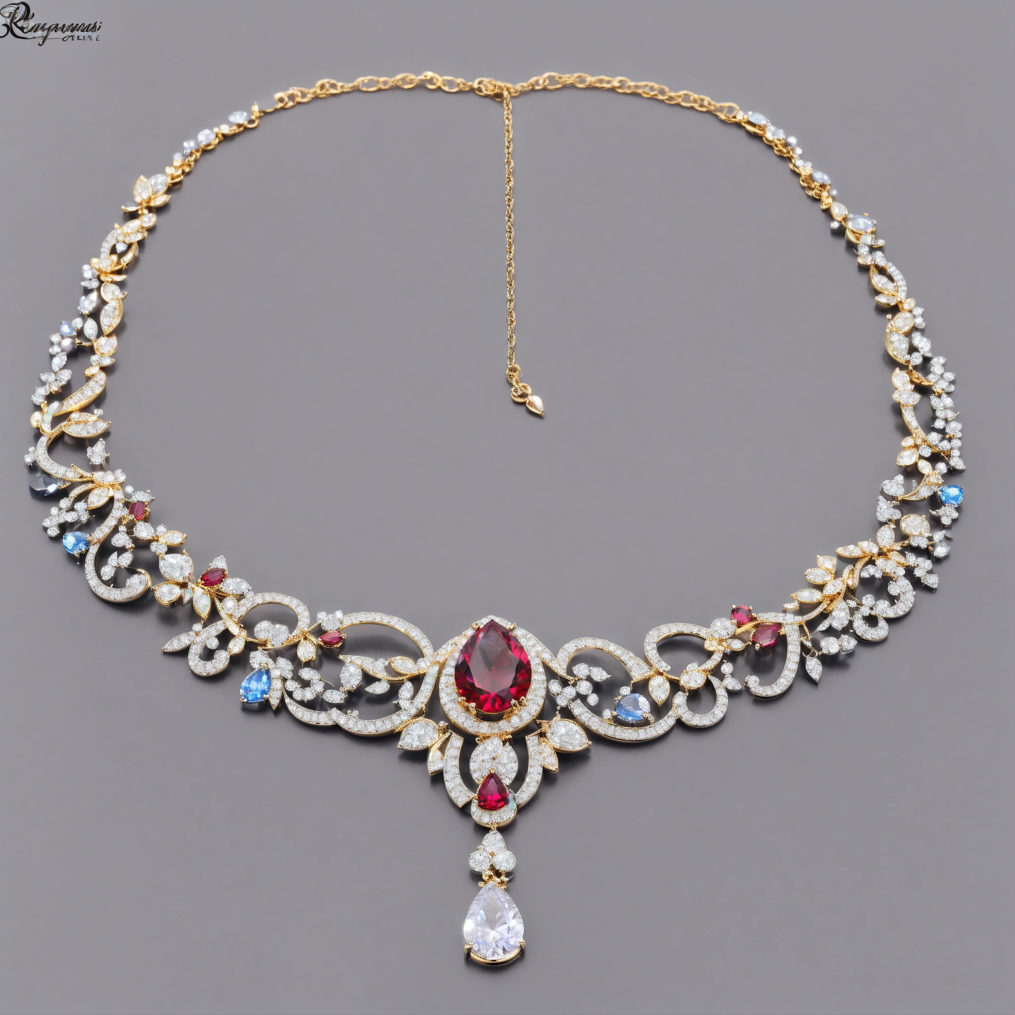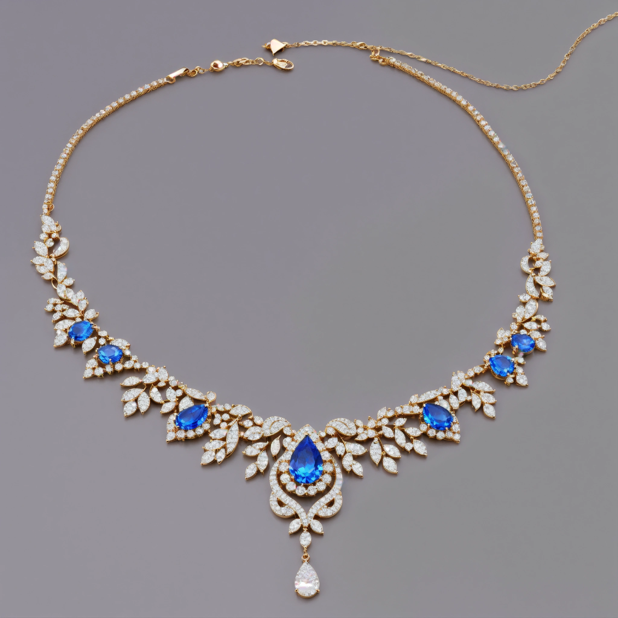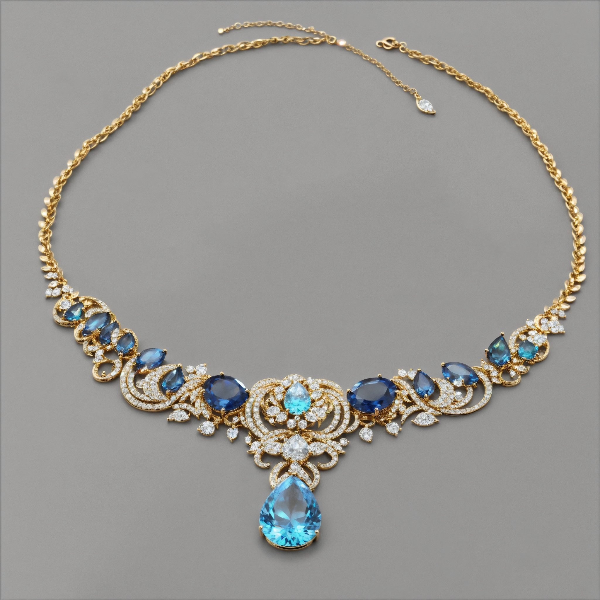 Drawing necklace, curve style, luxurious style, pear gemstone at the center, royal style, high end jewelry