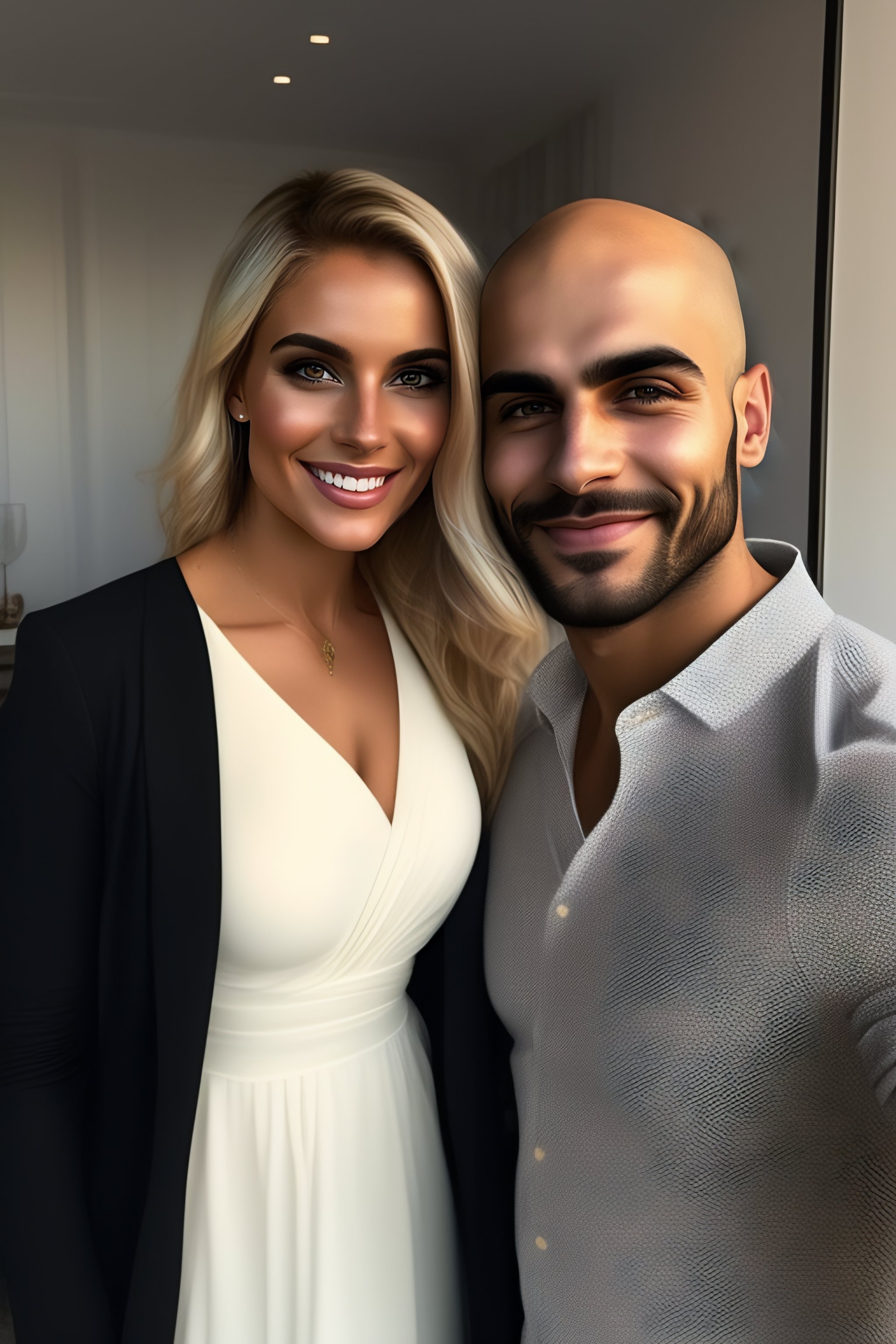 Bald young iranian and a typical young blonde swedish woman with no make up
