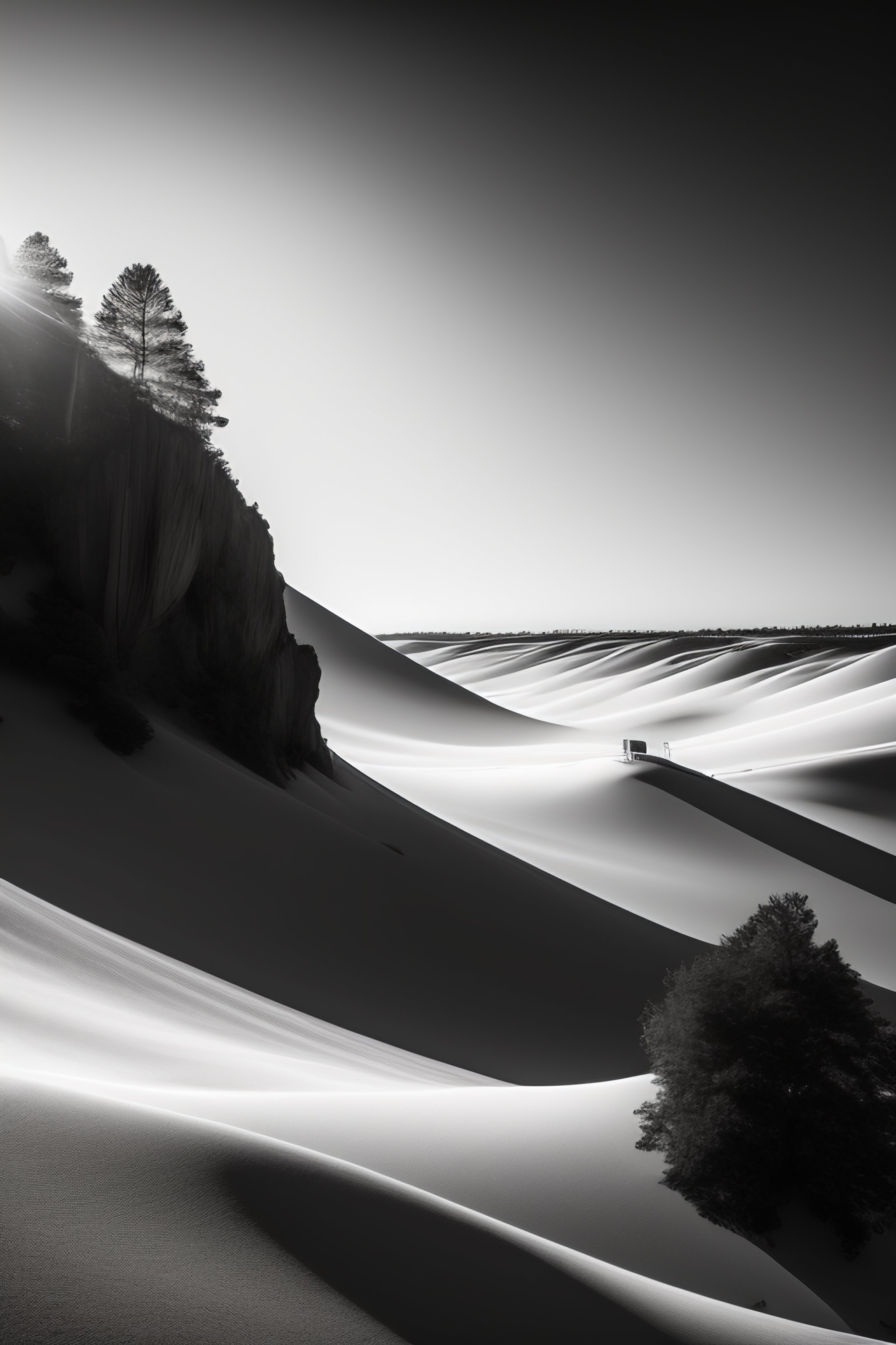 High quality minimal wallpaper with transparent elegant caustic 3d effects, black & white, black background, art directed, 8 k, filmic